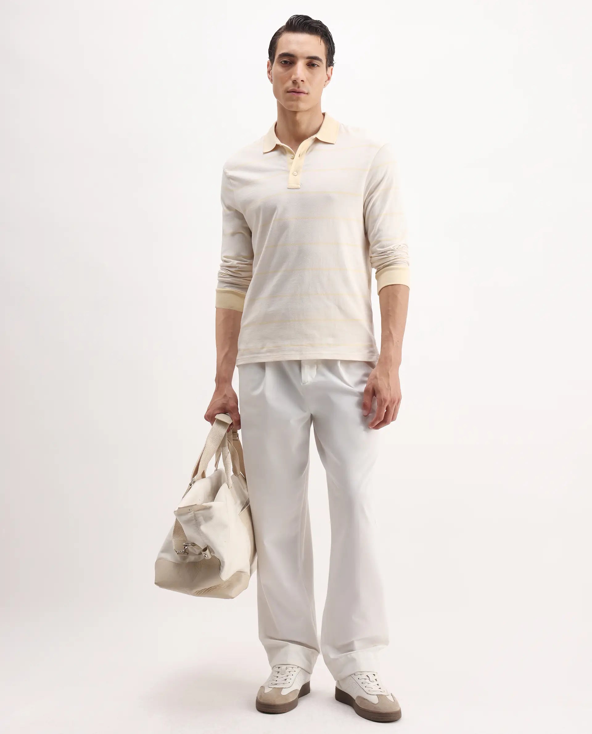 Discover the perfect blend of style and comfort with our striped full-sleeve polo shirt. Crafted from premium cotton, this casual polo features a button closure and a spread collar, ensuring a classic look for any occasion. The regular fit design offers a relaxed yet tailored appearance, making it an ideal choice for everyday wear. The woven fabric enhances durability, while the elegant stripes add a touch of sophistication. Whether you're heading to a casual outing or a laid-back office day, this polo shirt is your go-to option. Elevate your wardrobe with this versatile piece that combines timeless design with modern flair. Shop now for a stylish addition to your collection.