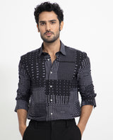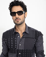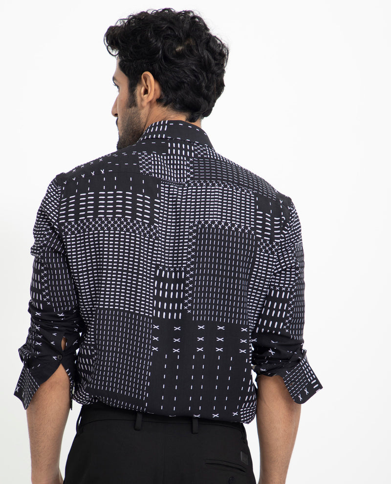 Rare Rabbit Men's Comica Black Geometric Printed Full Sleeves Shirt