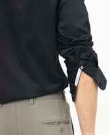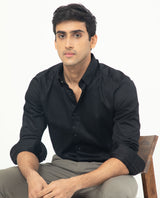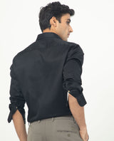 Rare Rabbit Men's Comor Black Satin Fabric Full Sleeves Solid Shirt