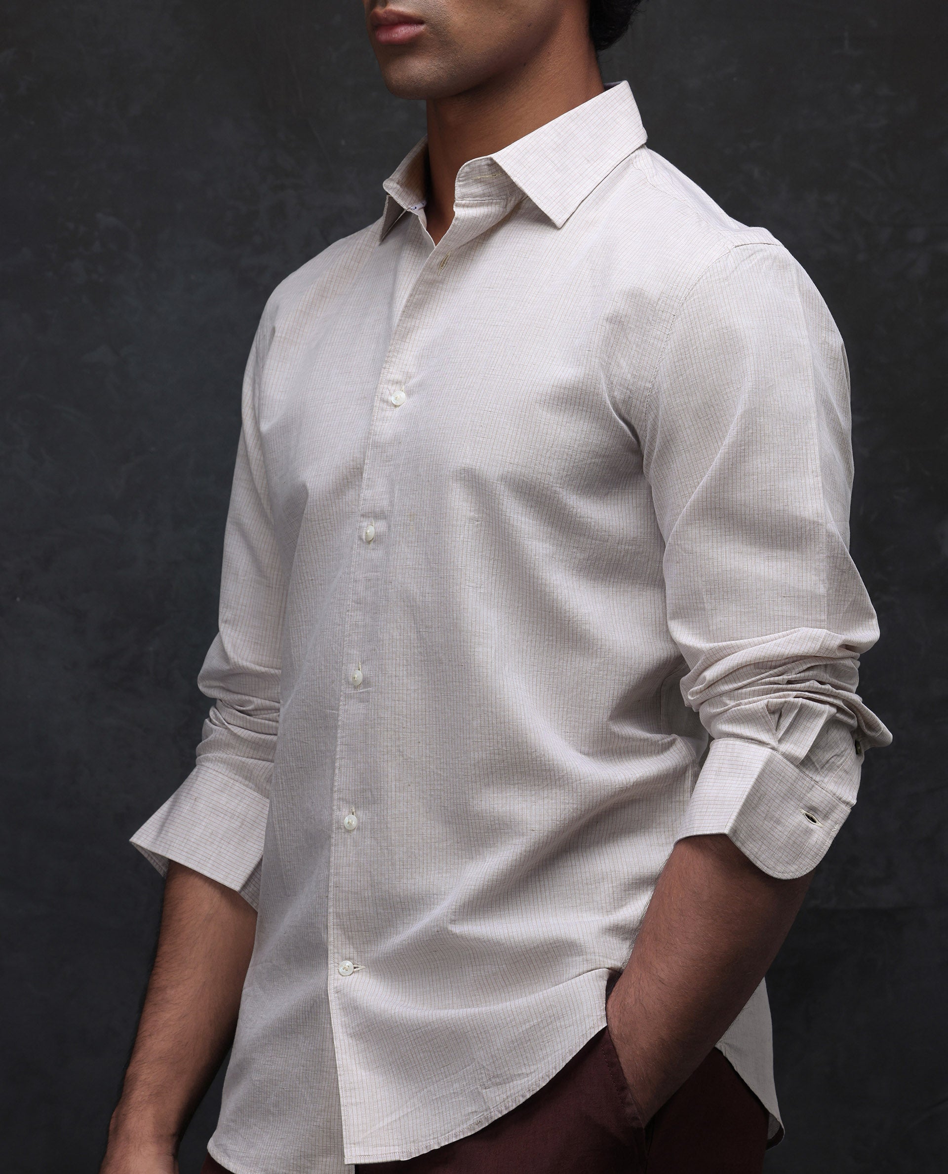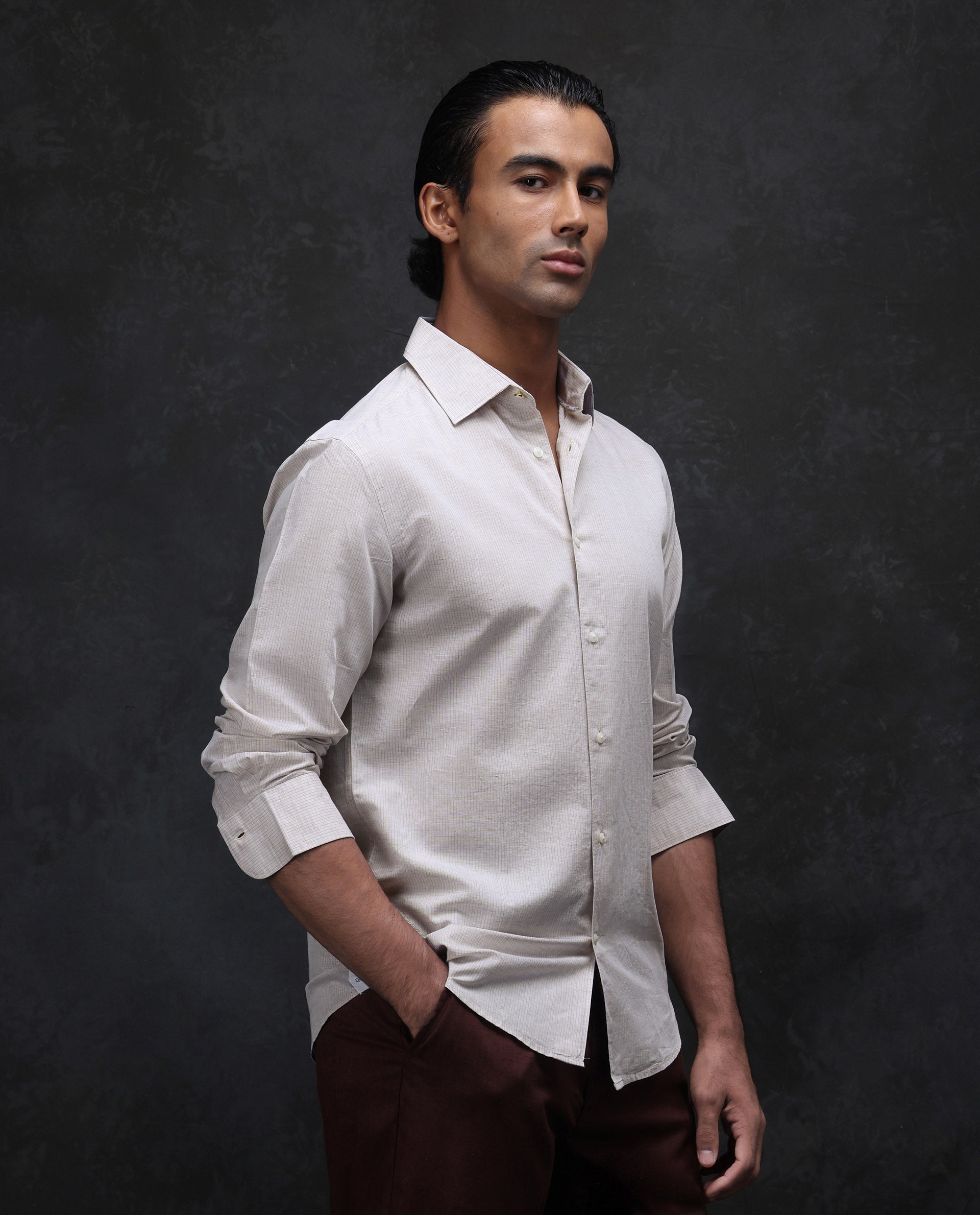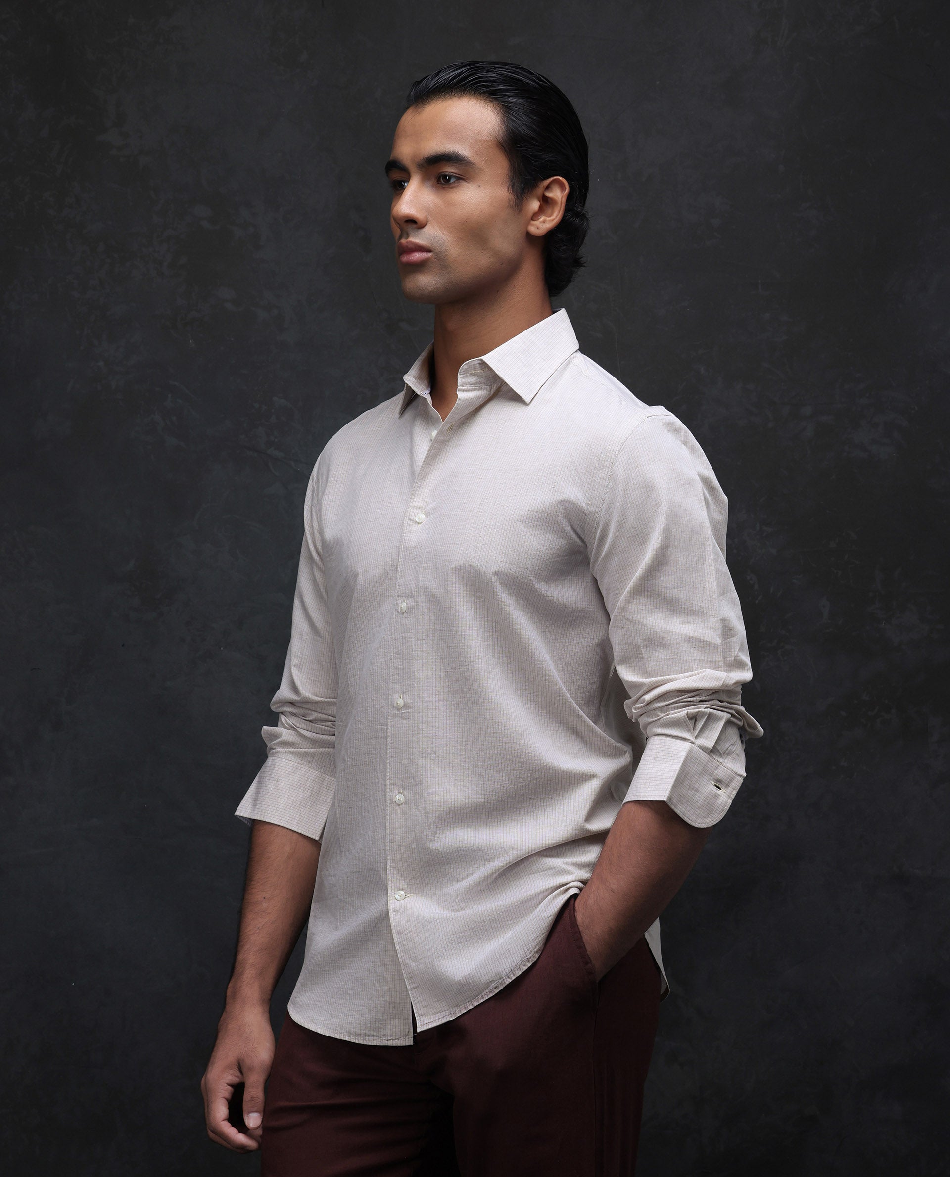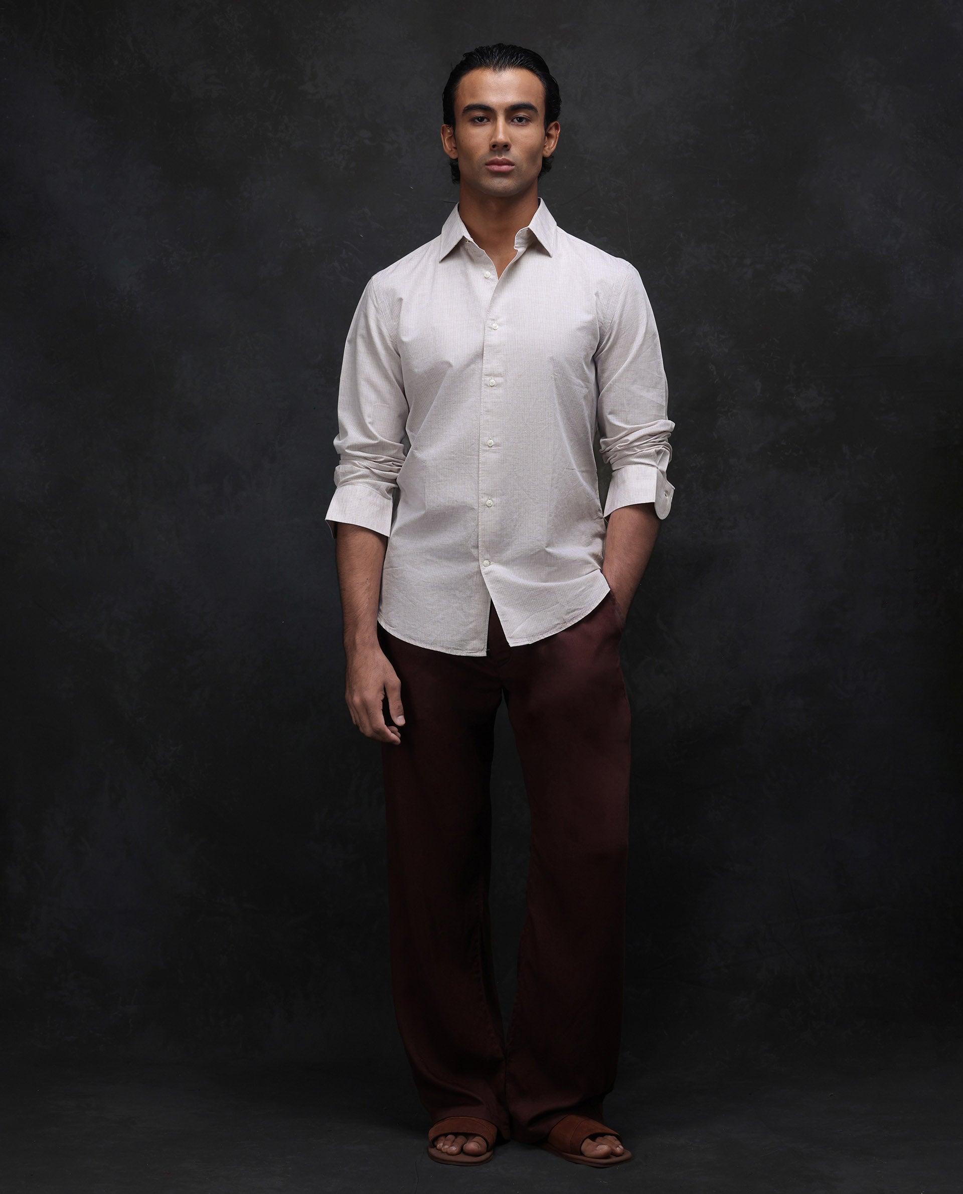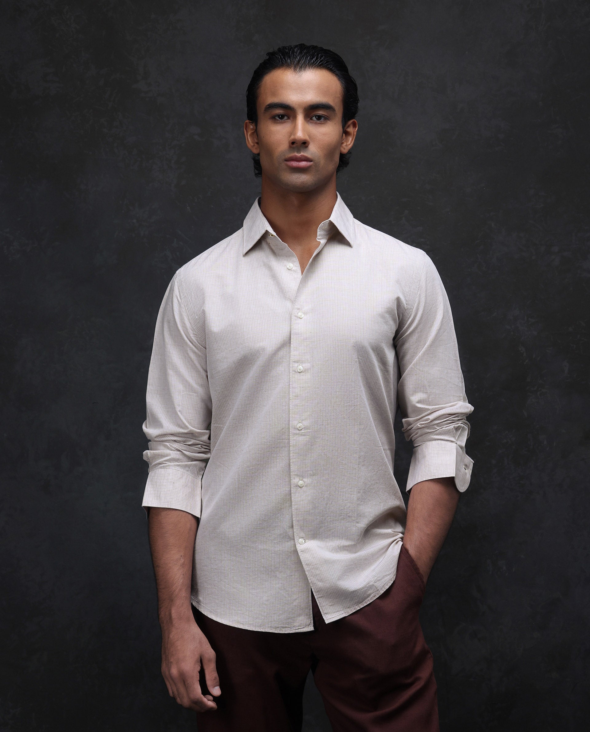 This mens shirt from RARE RABBIT carries a contemporary and minimal charm. Its neat styling keeps the outfit looking fresh and composed. A reliable pick for someone who prefers a soft, modern aesthetic.