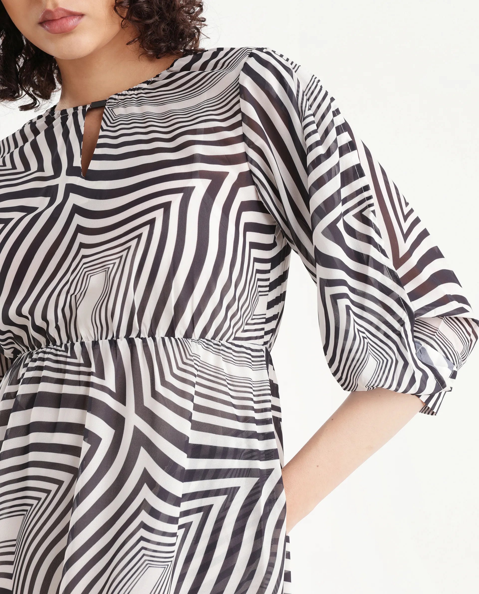 3. The abstract print adds a bold statement to the design, making it a standout piece.