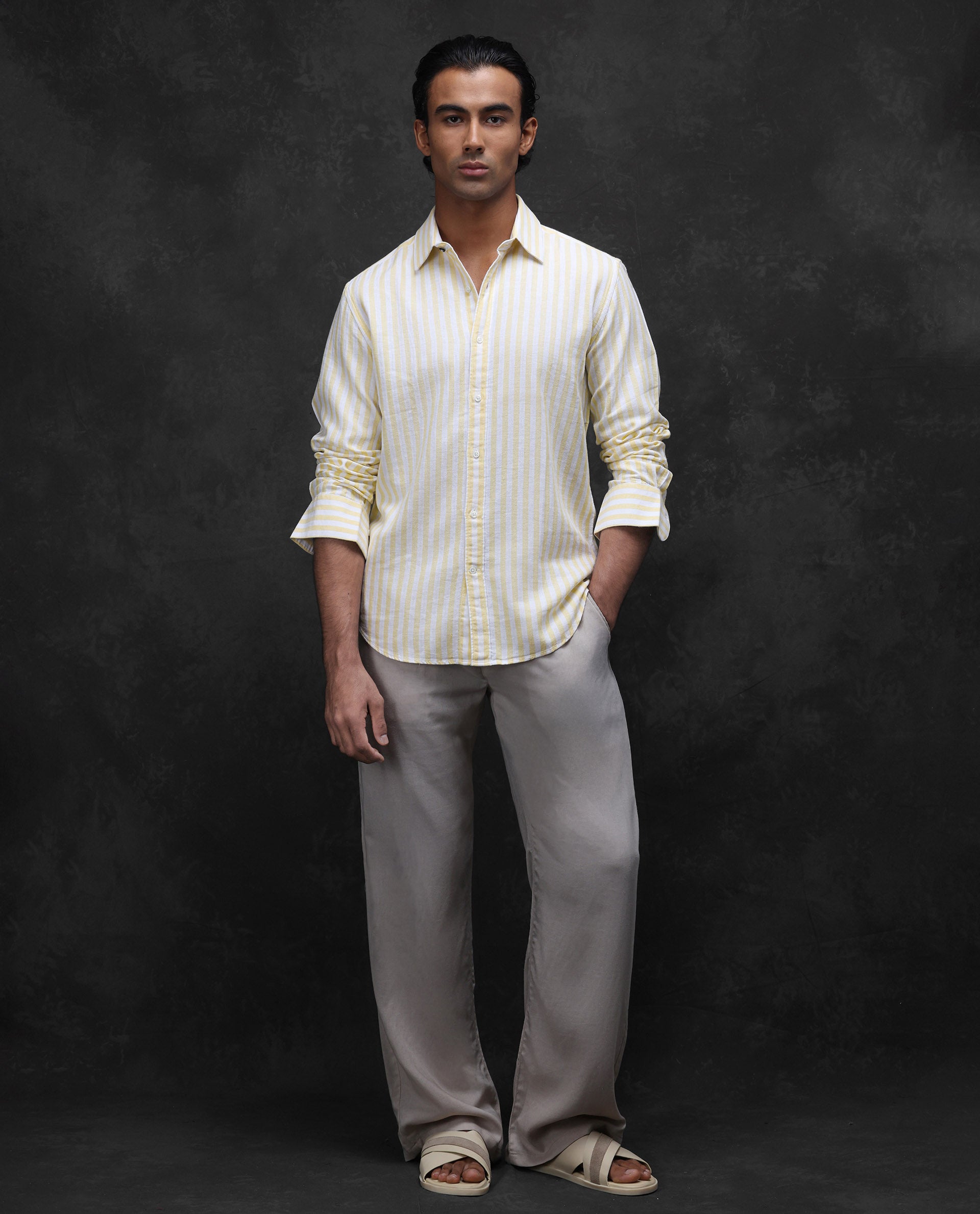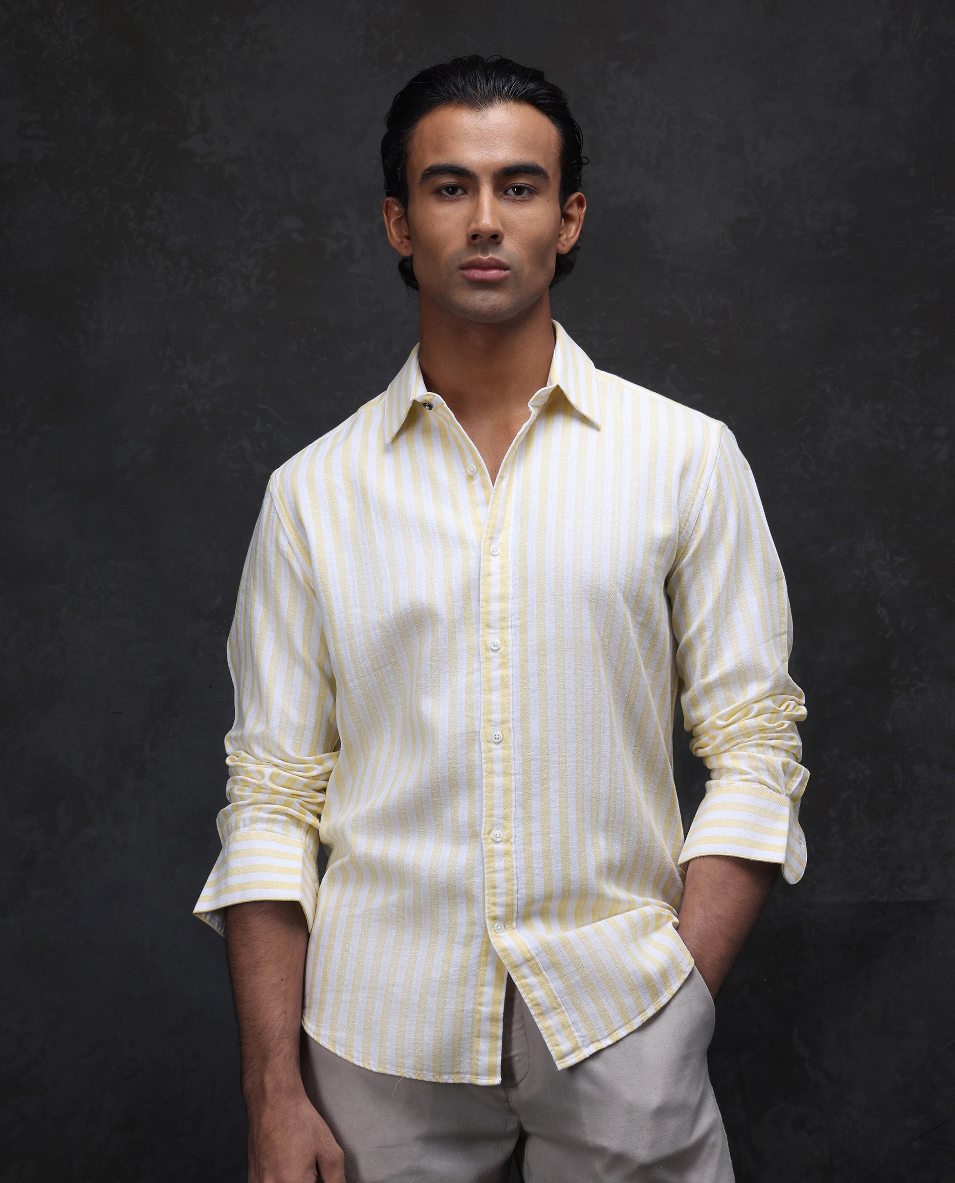 This mens shirt from RARE RABBIT carries a contemporary and minimal charm. Its neat styling keeps the outfit looking fresh and composed. A reliable pick for someone who prefers a soft, modern aesthetic.