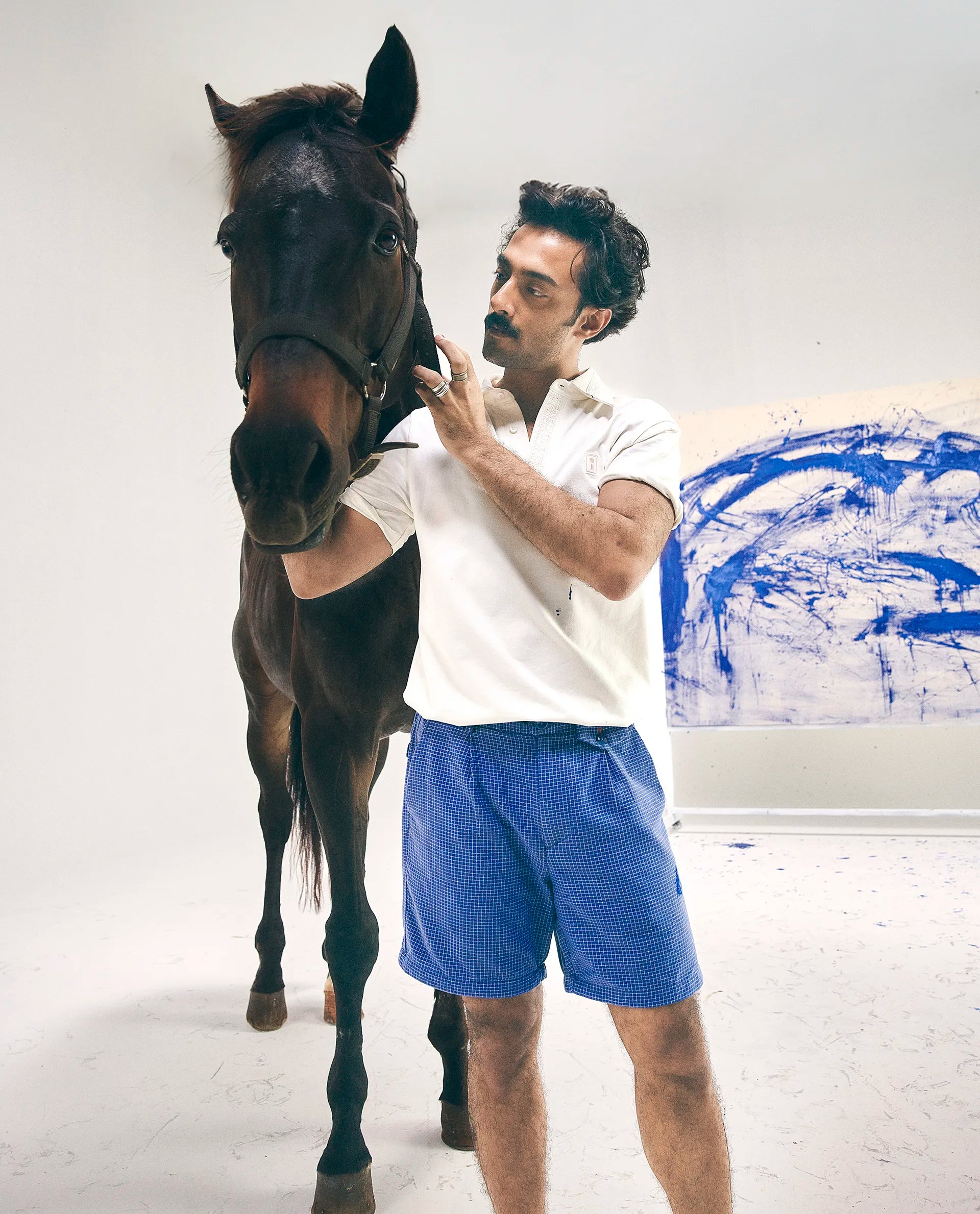 Rare Rabbit Men Dorn Blue Cotton Elastane Fabric Relaxed Fit Pleated Checked Shorts