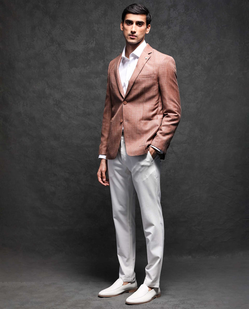 This mens blazer from RARE RABBIT carries a contemporary and minimal charm. Its neat styling keeps the outfit looking fresh and composed. A reliable pick for someone who prefers a soft, modern aesthetic.