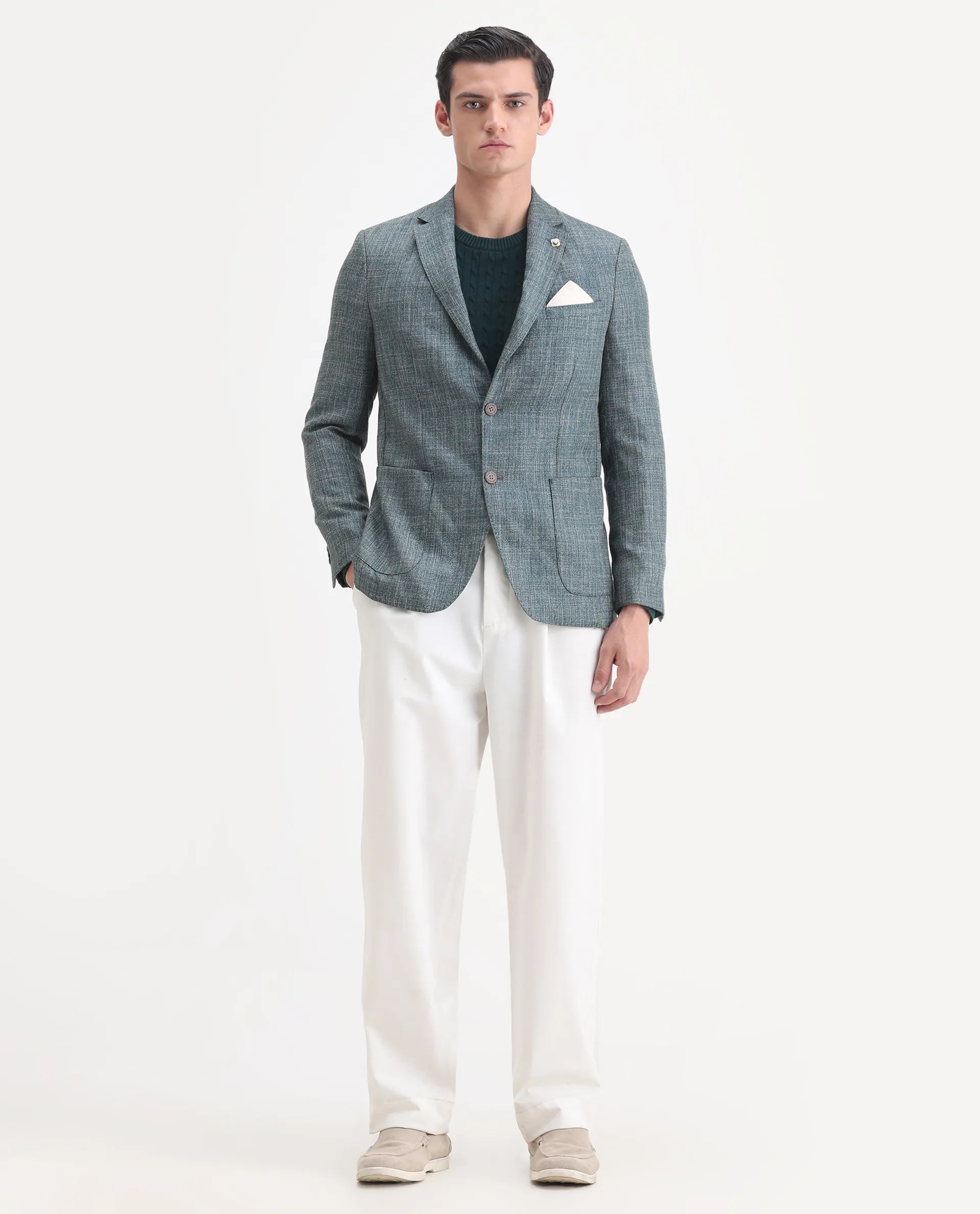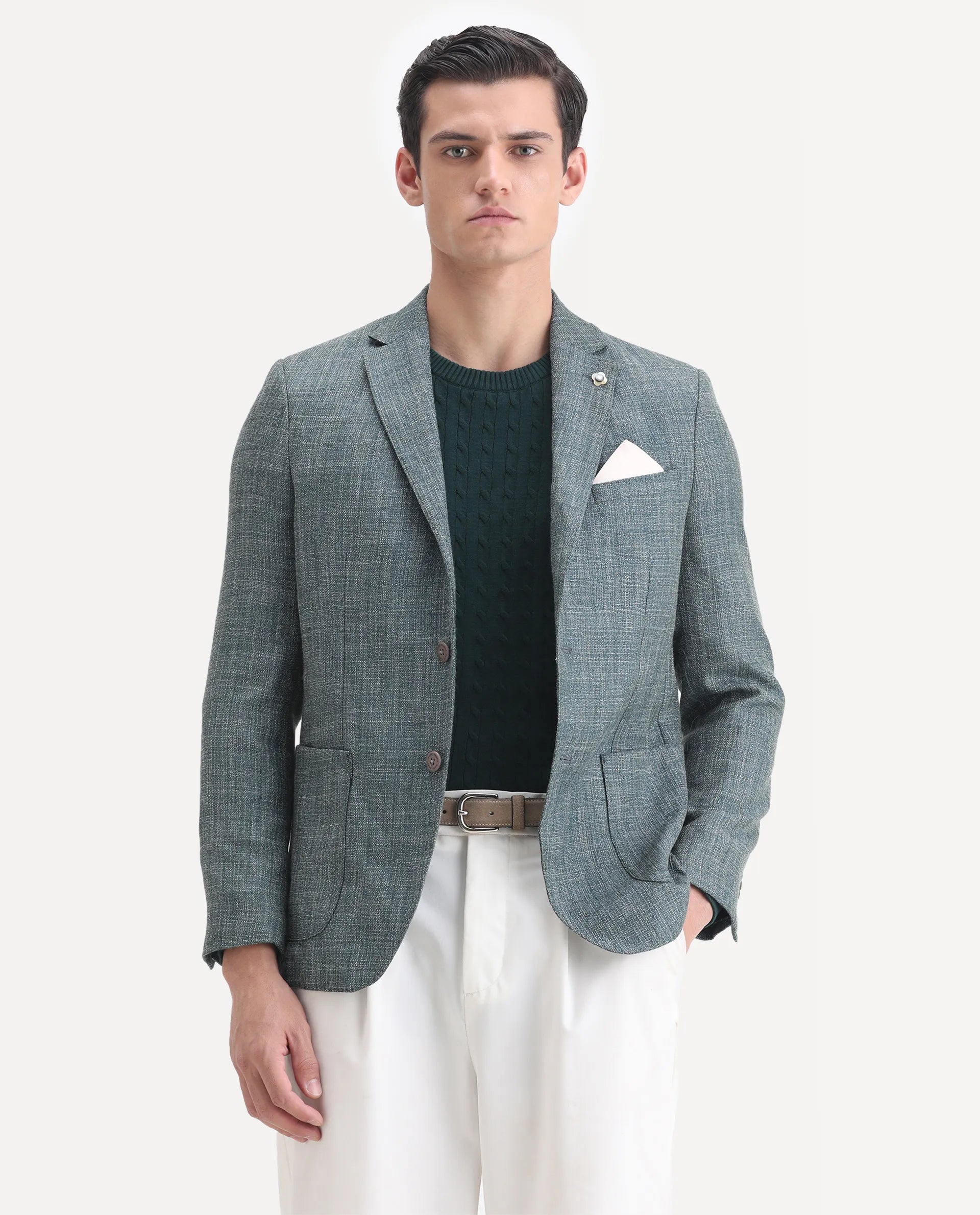 This mens blazer from RARE RABBIT carries a contemporary and minimal charm. Its neat styling keeps the outfit looking fresh and composed. A reliable pick for someone who prefers a soft, modern aesthetic.