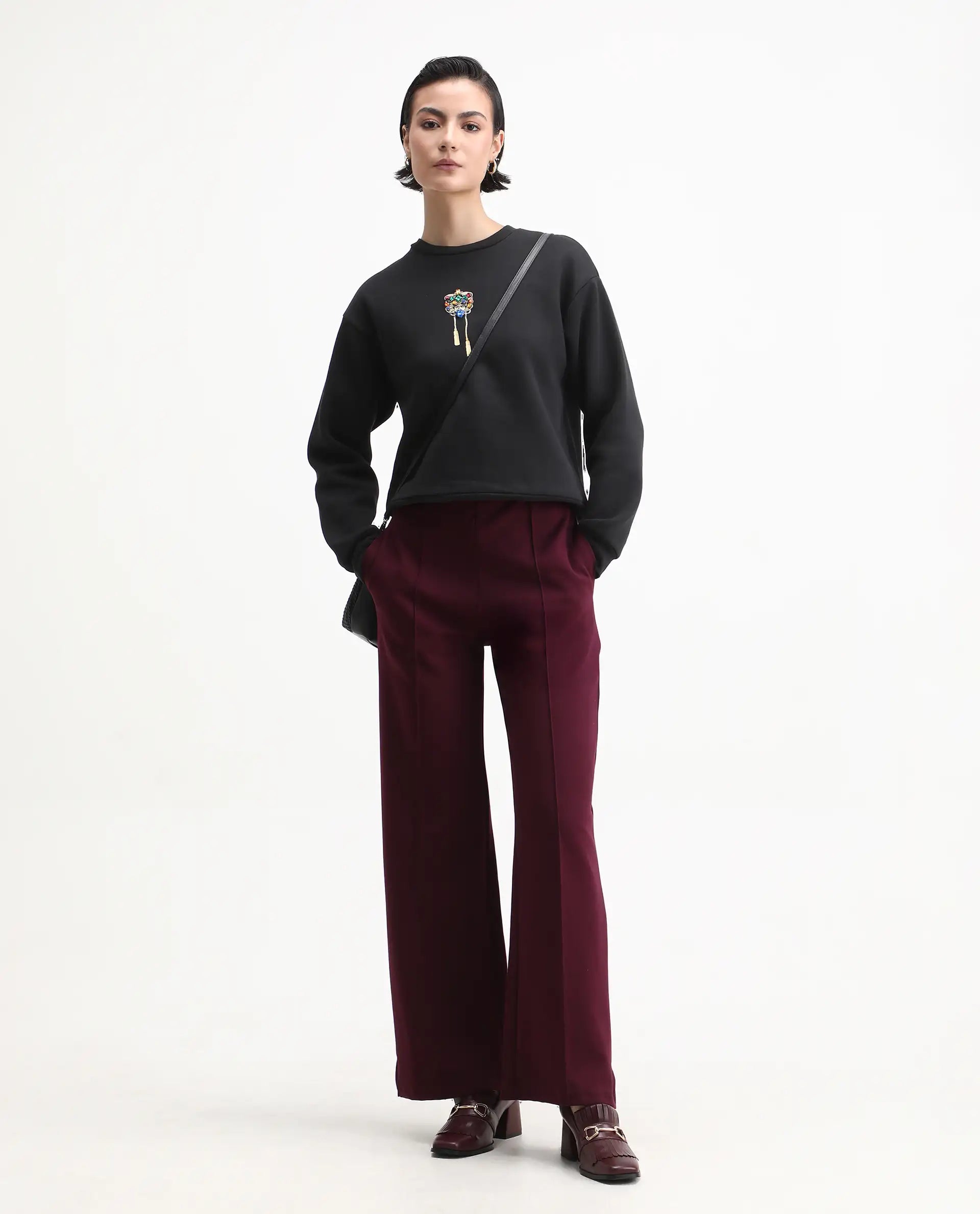 This Rareism women's sweatshirt features a black cotton blend fabric designed for comfort and durability. Its crew neck and regular fit provide a classic silhouette, while the printed design adds a distinctive style element. Ideal for casual wear, this sweatshirt combines quality materials with expert tailoring to ensure both comfort and a refined look.