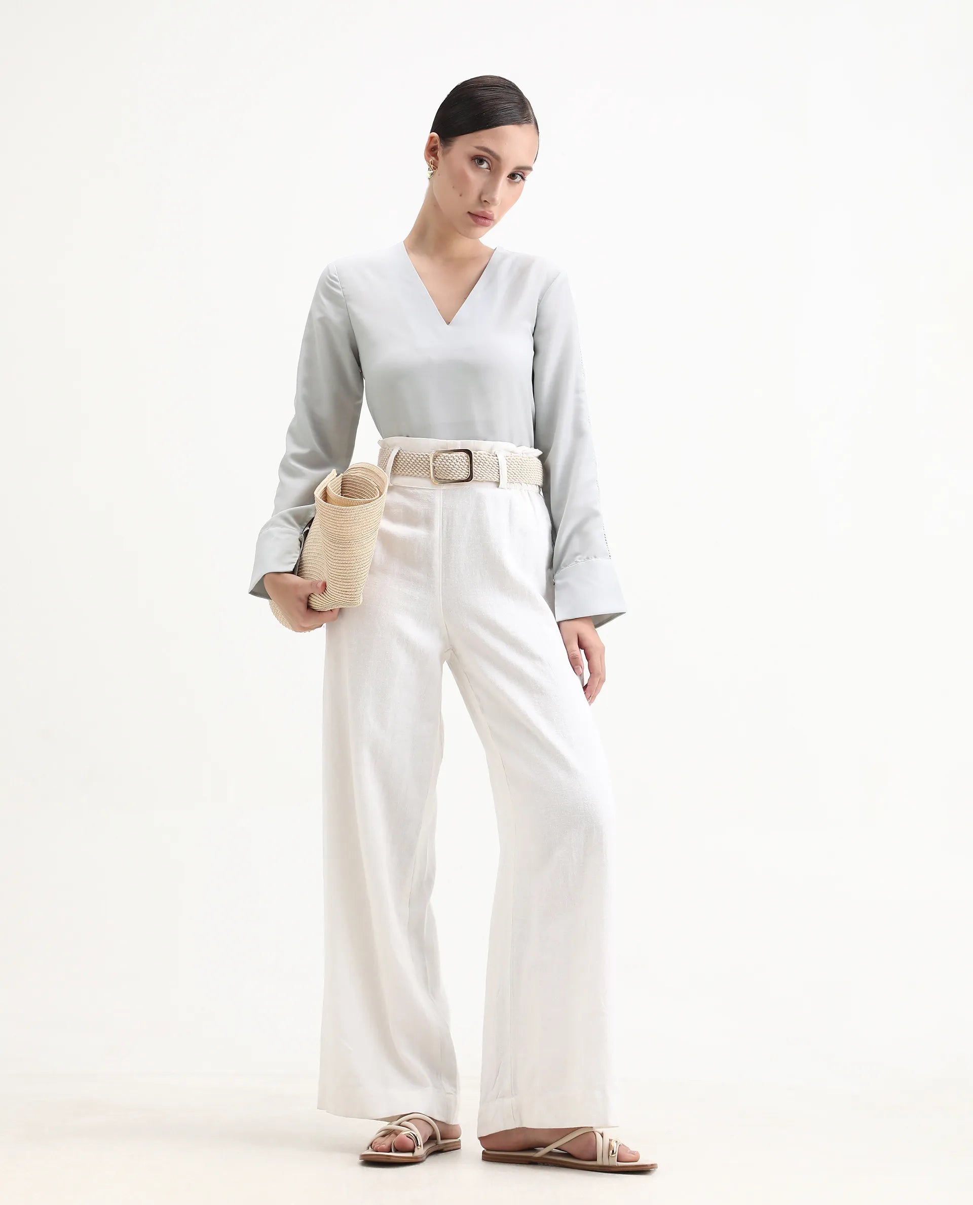 This Rareism Women Elapo Grey top features a refined V-neck design and cuffed sleeves crafted from durable polyester. Its plain, versatile style offers a polished look suitable for both casual and professional settings, ensuring comfort and ease of movement throughout your day.
