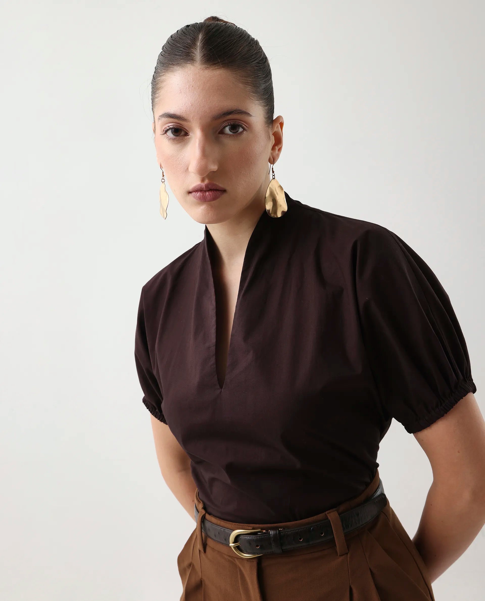 The Rareism Women Eldee Brown Extended Sleeves V-Neck Plain Top combines understated elegance with practical design. Crafted for a comfortable fit, its extended sleeves offer added coverage and a sleek silhouette, while the V-neckline enhances versatility for both casual and professional settings. The plain brown fabric provides a timeless, adaptable base that pairs effortlessly with various outfits, making it a refined choice for those seeking both style and functionality in their wardrobe.