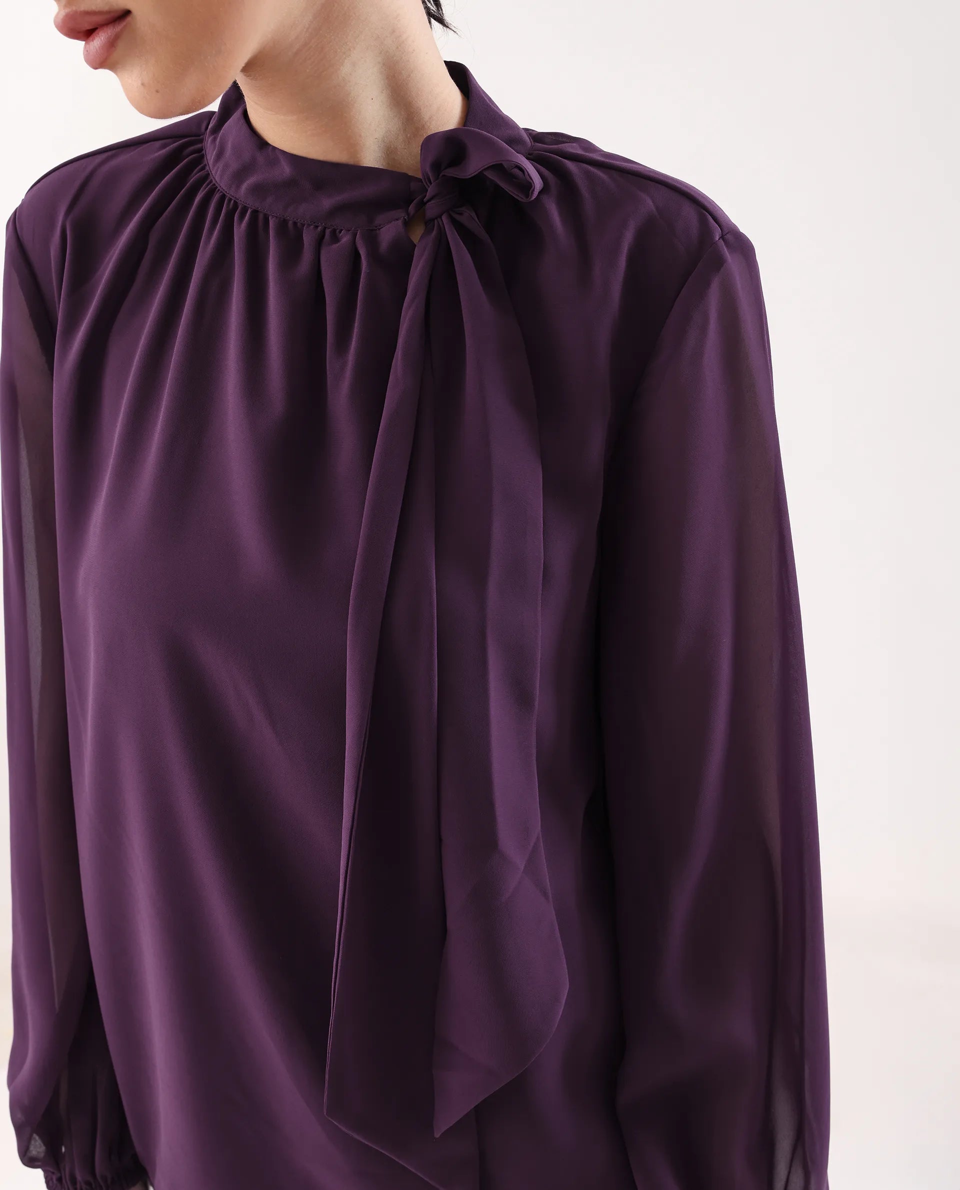 Elevate your wardrobe with this sophisticated Elden Maroon top featuring a distinctive tie-up neck and practical button closure. The clean, plain design offers versatile styling options while the rich maroon hue adds a touch of elegance. Crafted for the modern woman who appreciates refined simplicity and thoughtful details in her everyday attire.