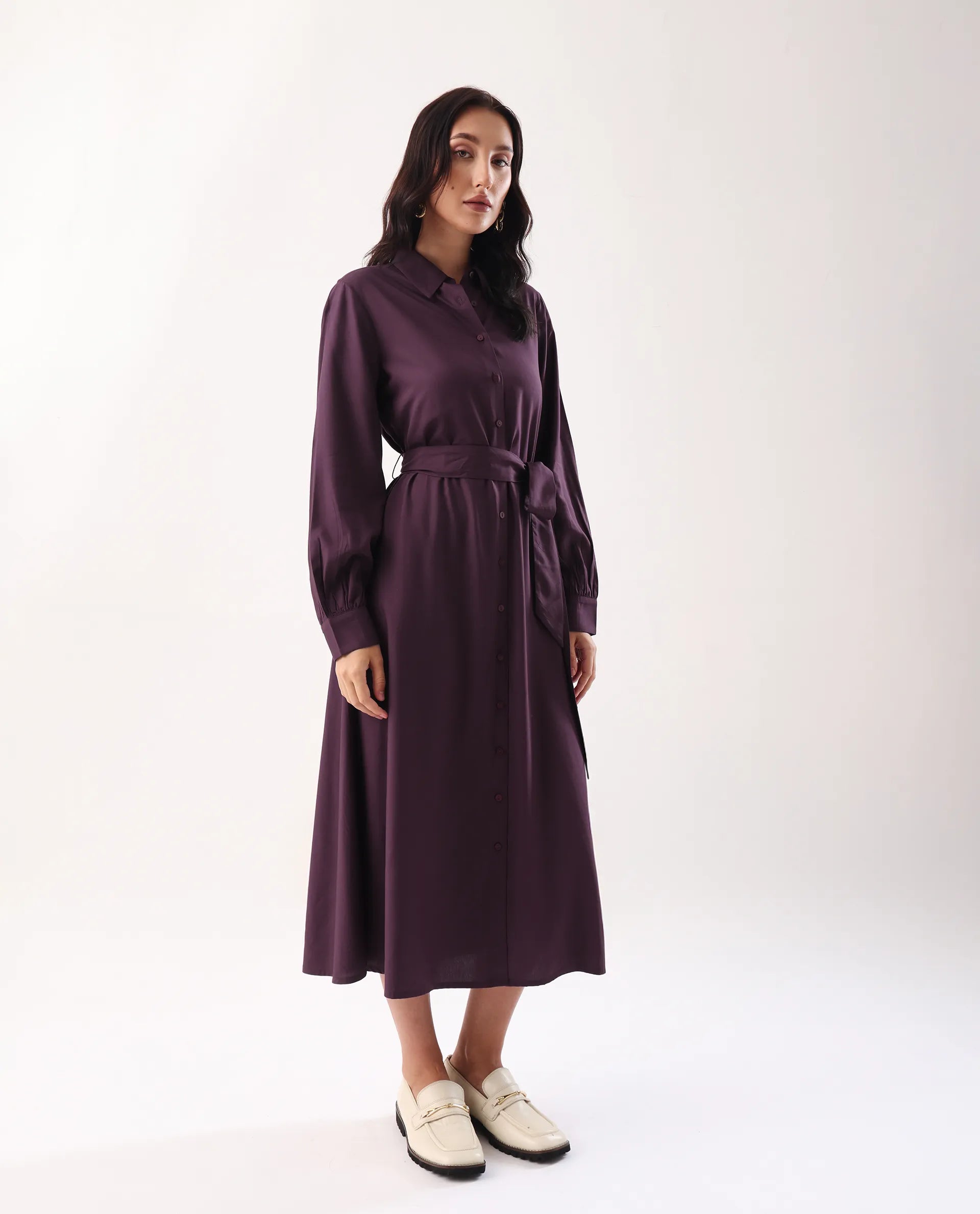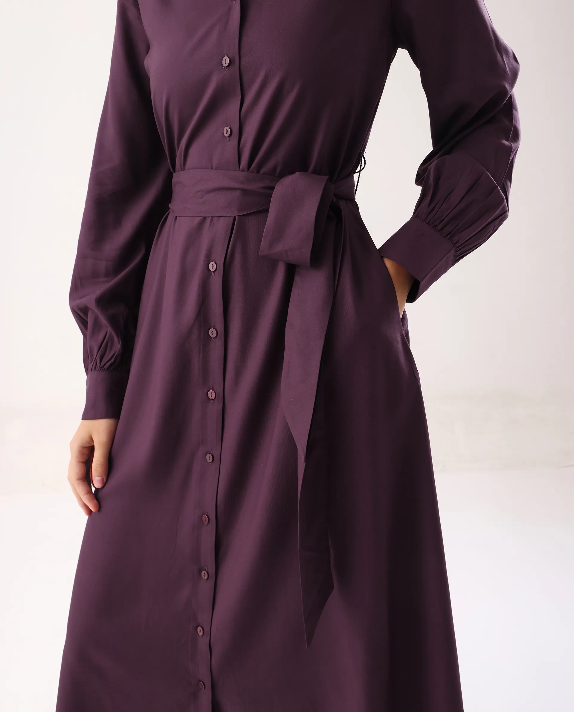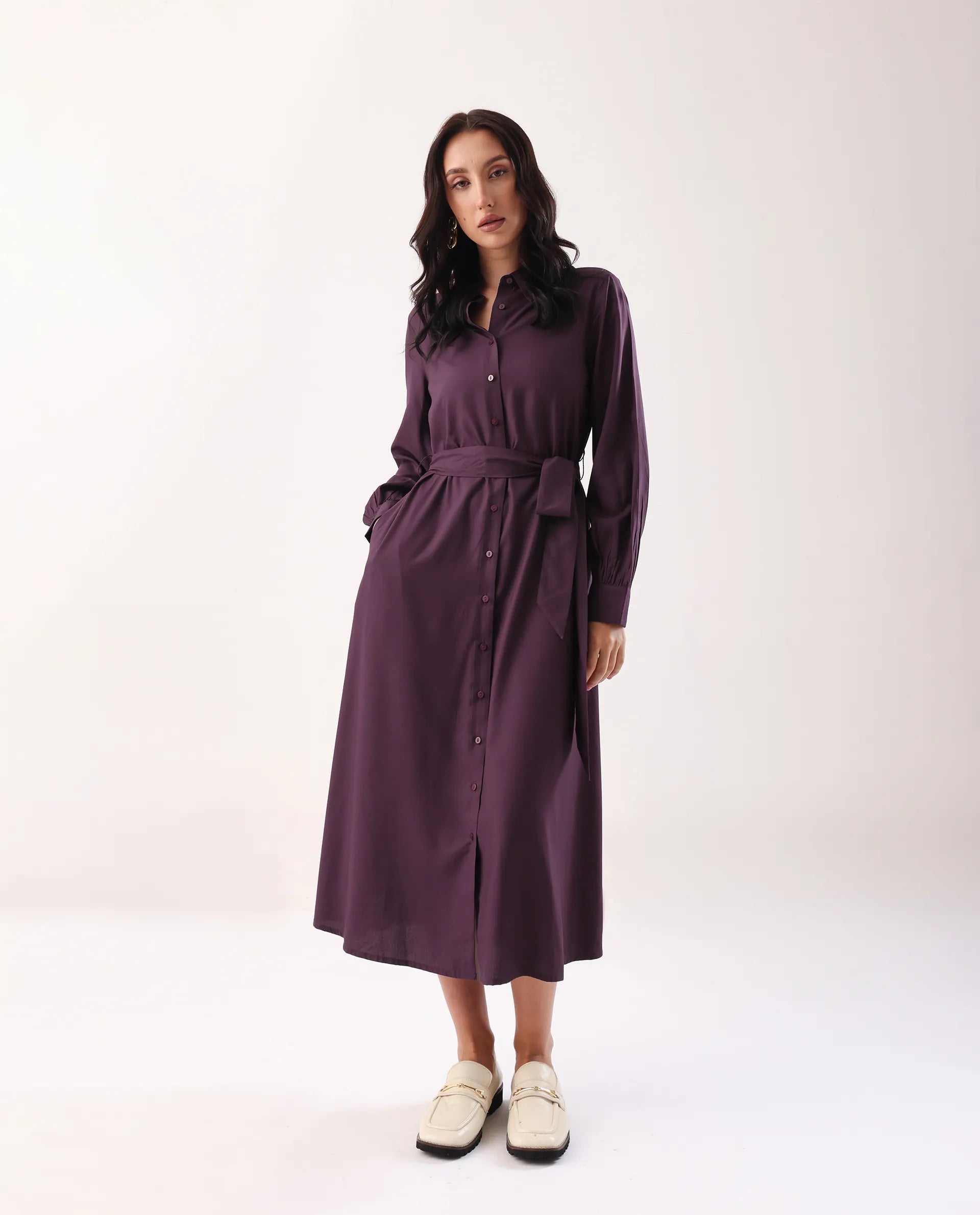 Elevate your wardrobe with this sophisticated maroon A-line midi dress. Featuring a classic collared neck and convenient button closure, this versatile plain dress offers a flattering silhouette that transitions effortlessly from office to evening events. The timeless design ensures enduring style while the midi length provides both elegance and practicality.
