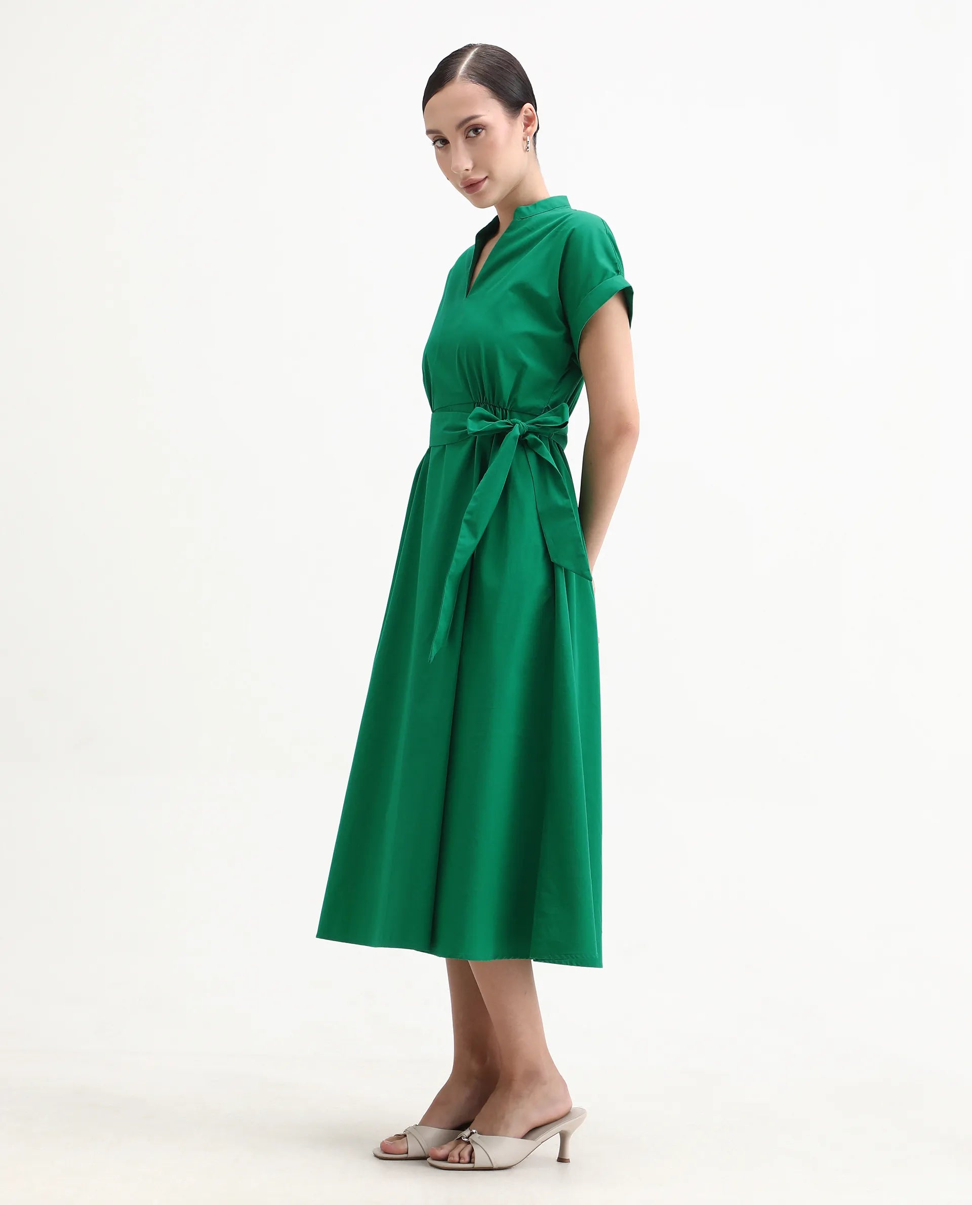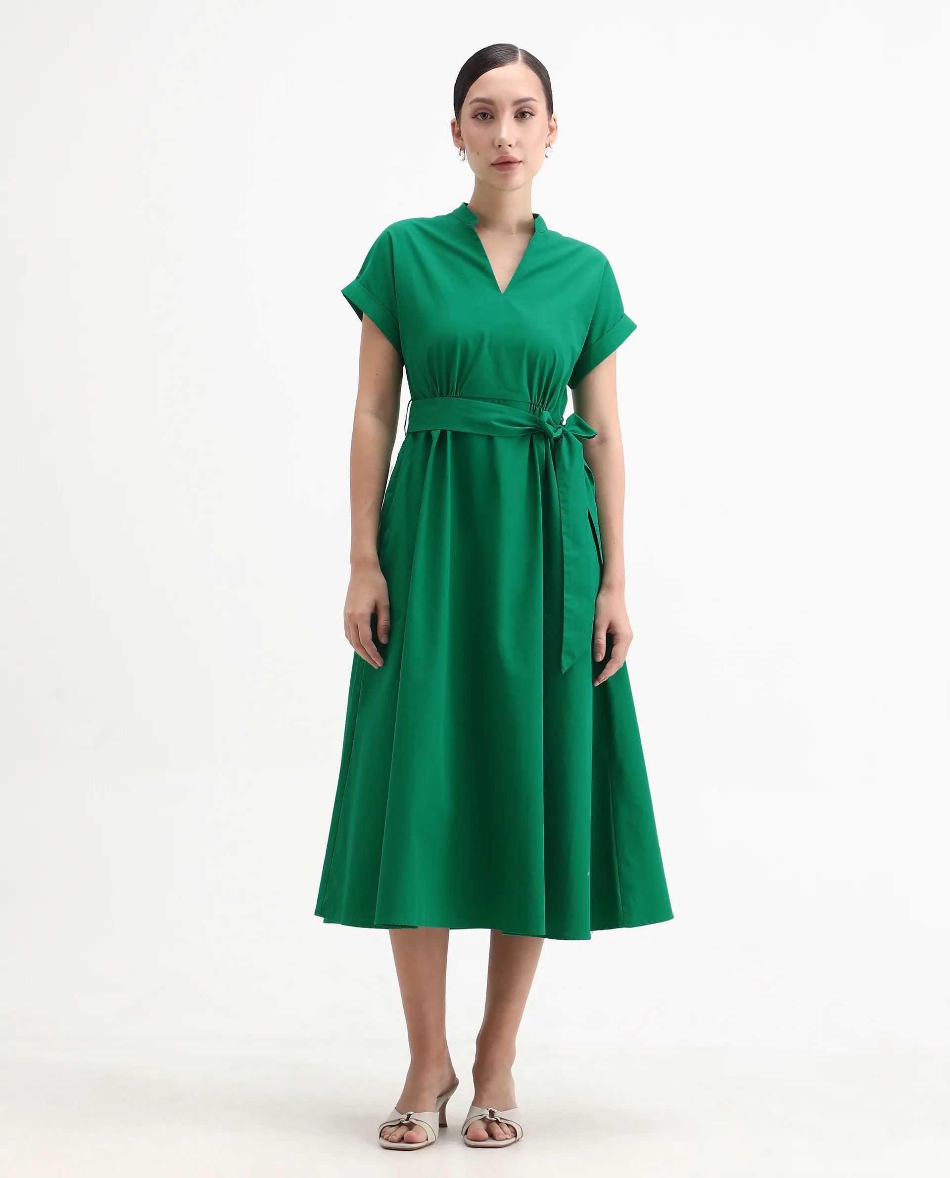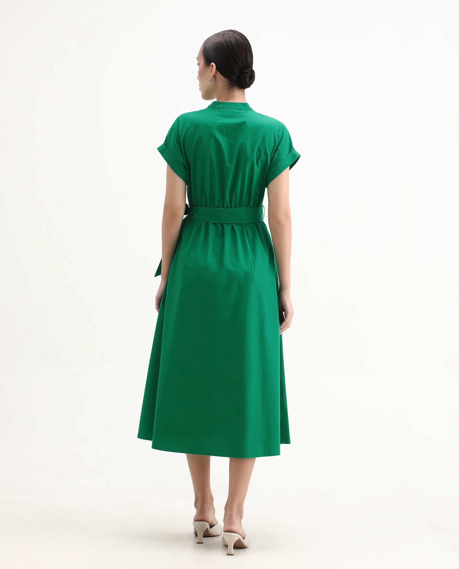 Elevate your wardrobe with the Rareism Women Eleri Green Dress, featuring extended sleeves and a sophisticated mandarin collar. Its A-line midi silhouette offers a flattering fit, while the plain green fabric ensures versatile styling options. Perfect for both formal and casual occasions, this dress combines comfort with timeless elegance.