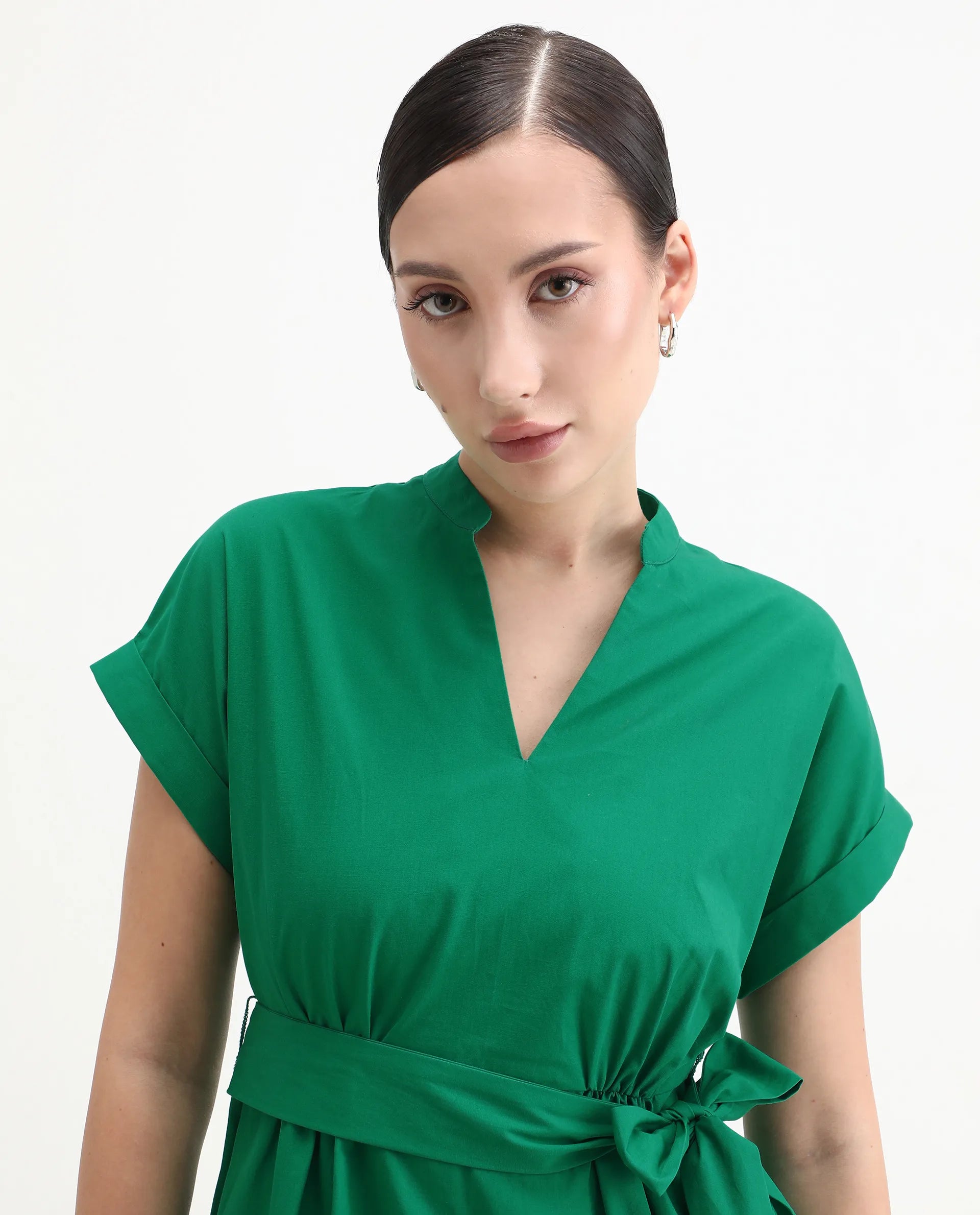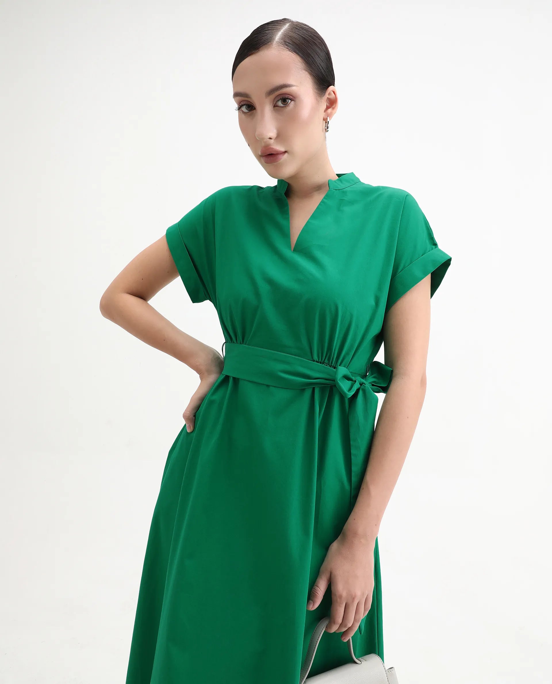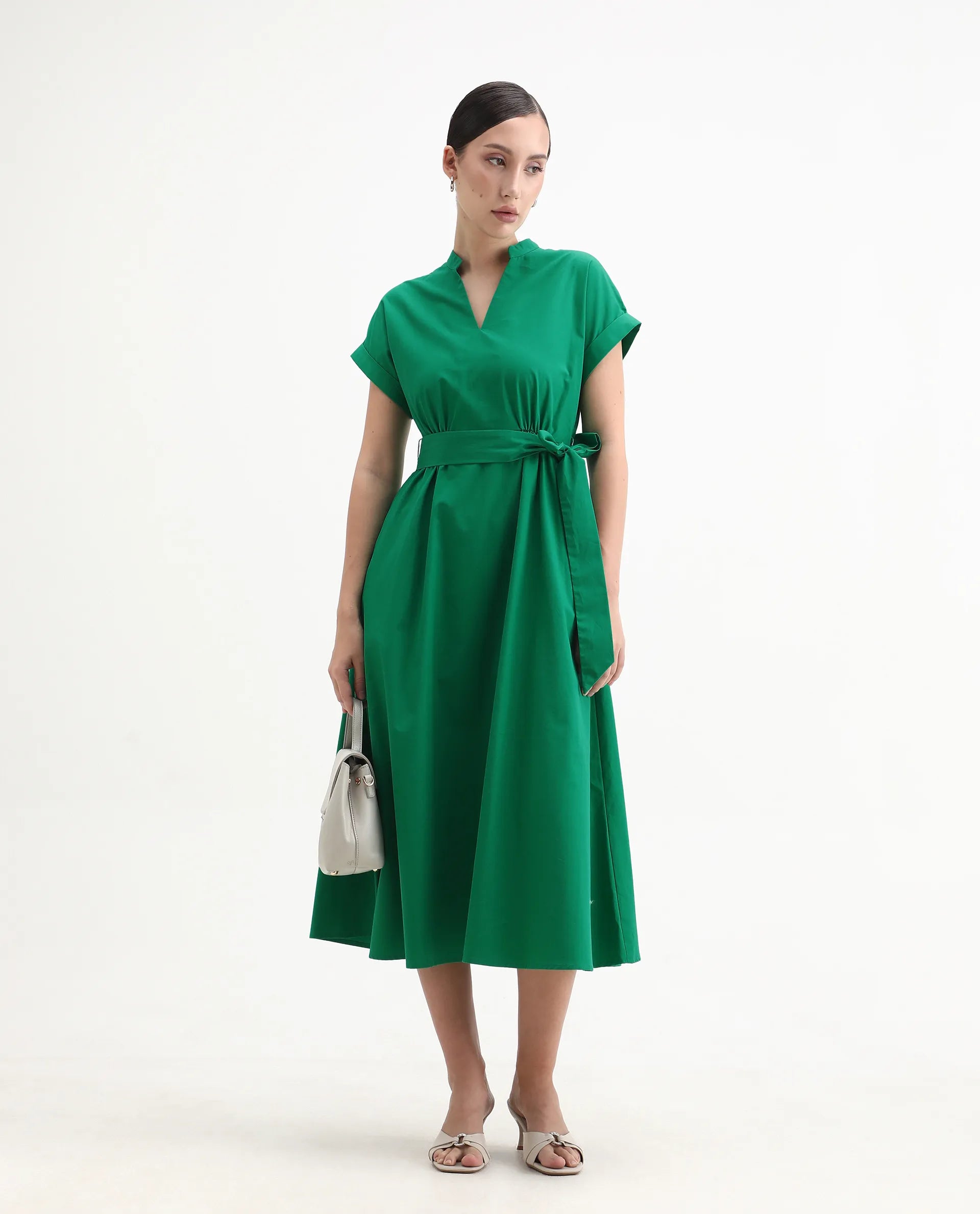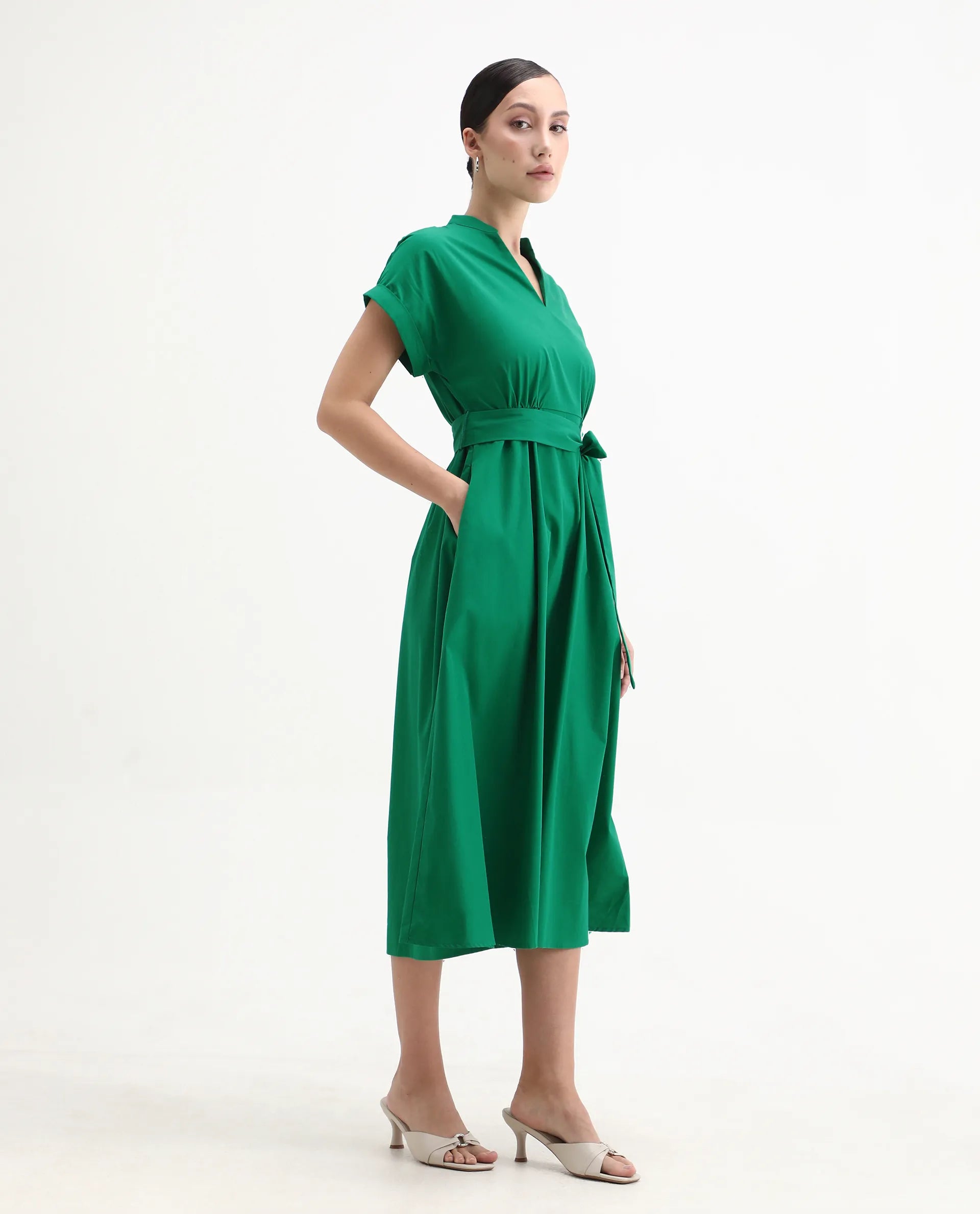 Elevate your wardrobe with the Rareism Women Eleri Green Dress, featuring extended sleeves and a sophisticated mandarin collar. Its A-line midi silhouette offers a flattering fit, while the plain green fabric ensures versatile styling options. Perfect for both formal and casual occasions, this dress combines comfort with timeless elegance.