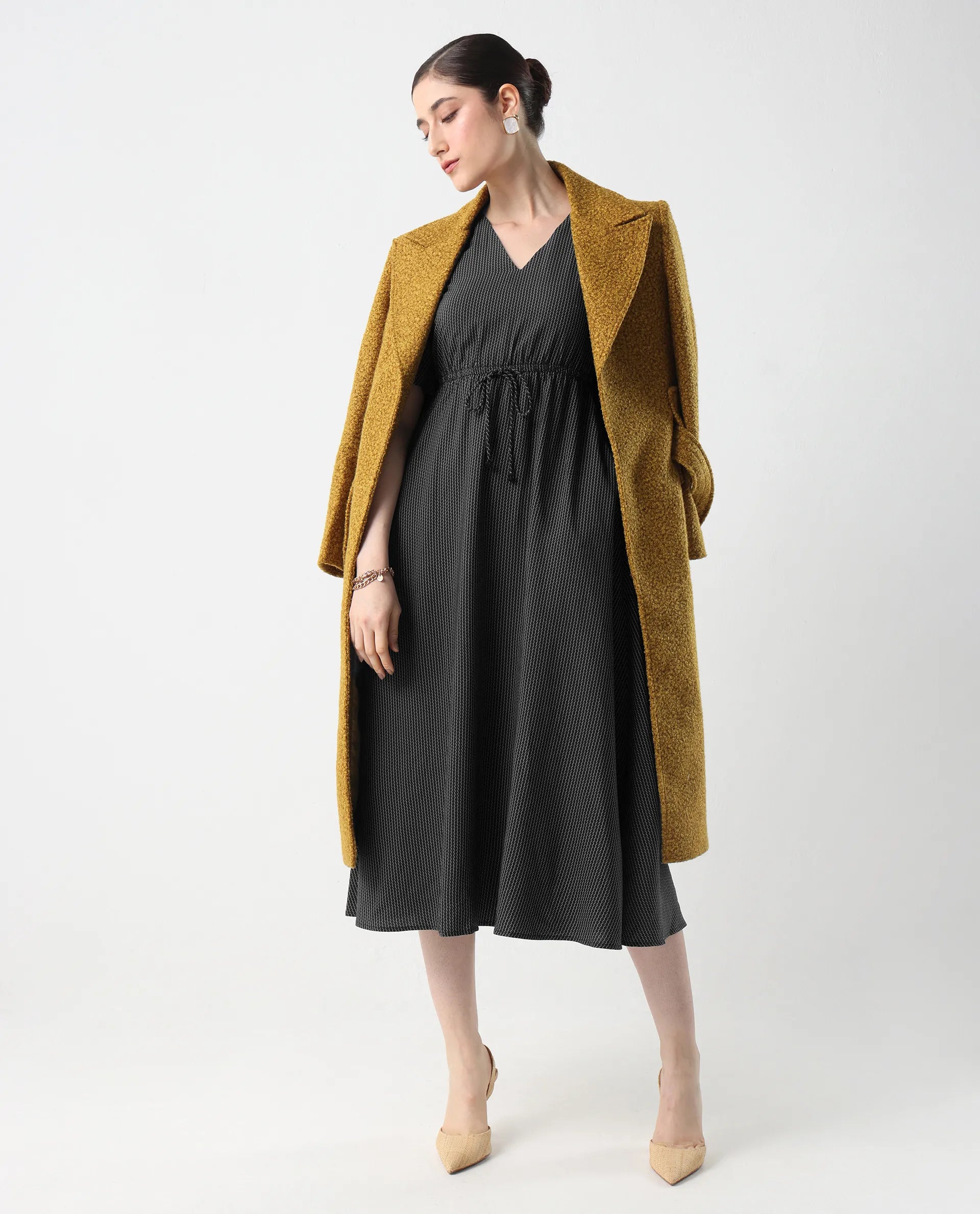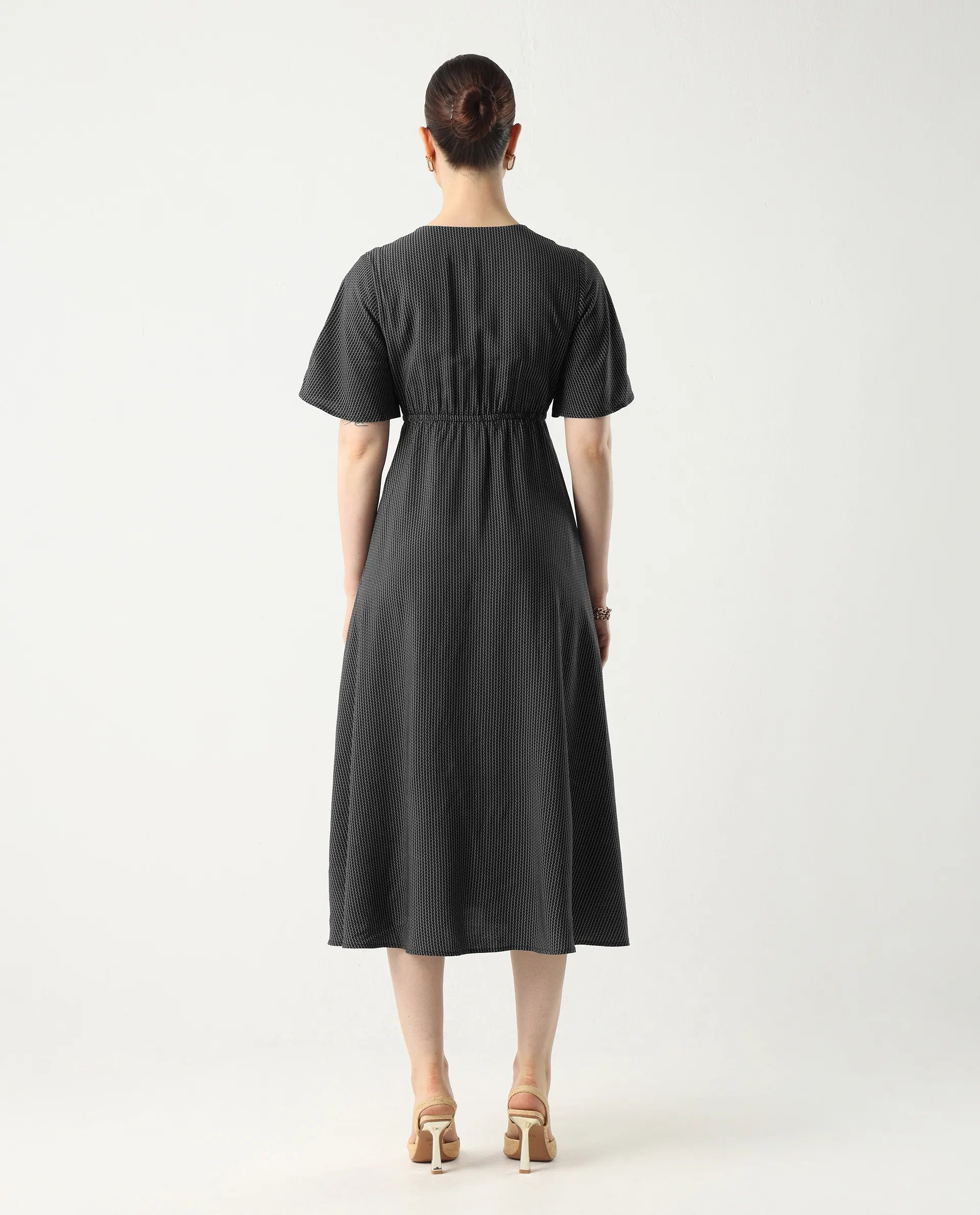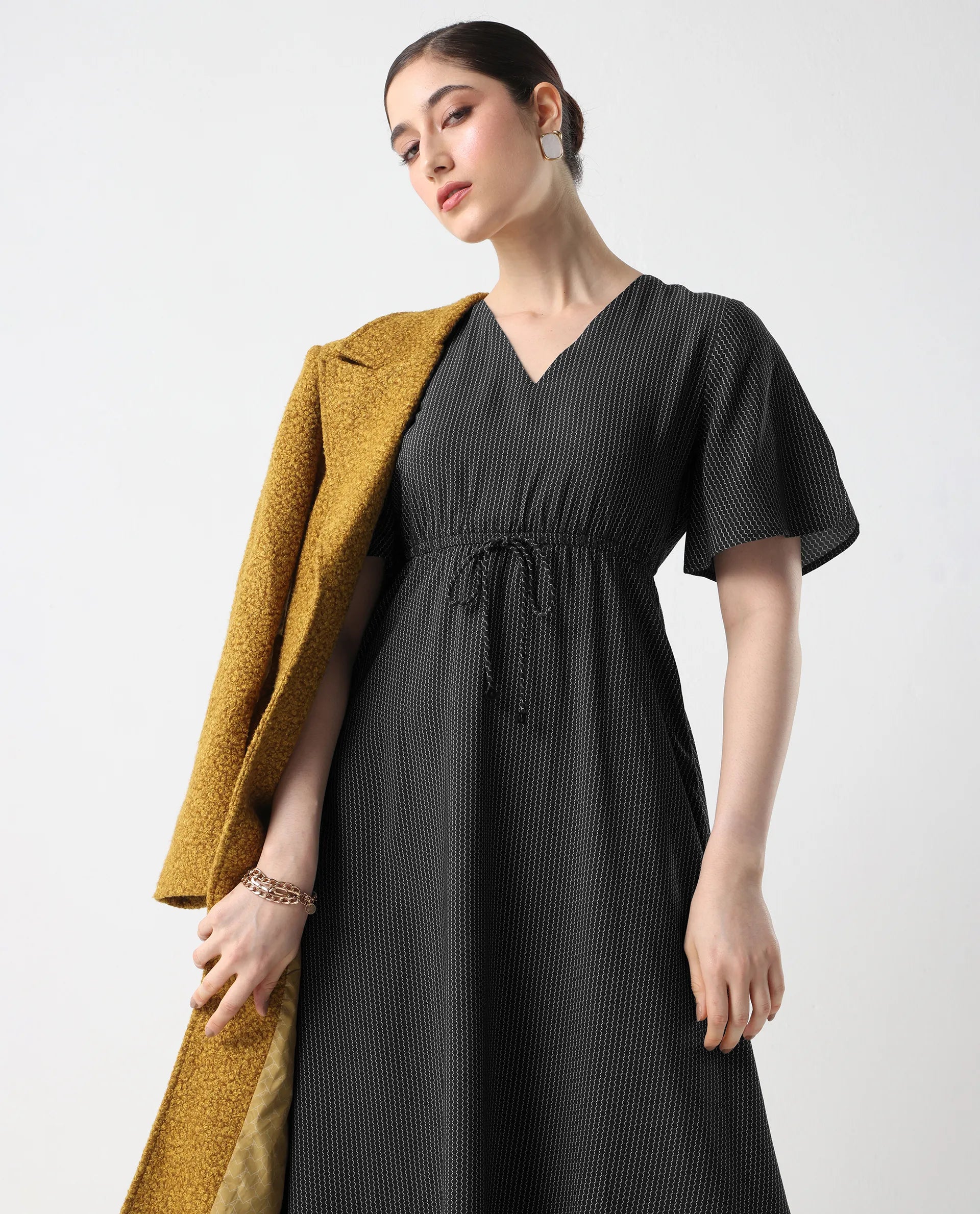 This Rareism Women Eloys dress features a sophisticated flared fit with elegant flared sleeves and a flattering V-neckline. Crafted in a midi length, its printed fabric adds a refined touch to your wardrobe. Ideal for both casual and semi-formal occasions, this dress combines comfort with style, making it a versatile choice for the modern woman.