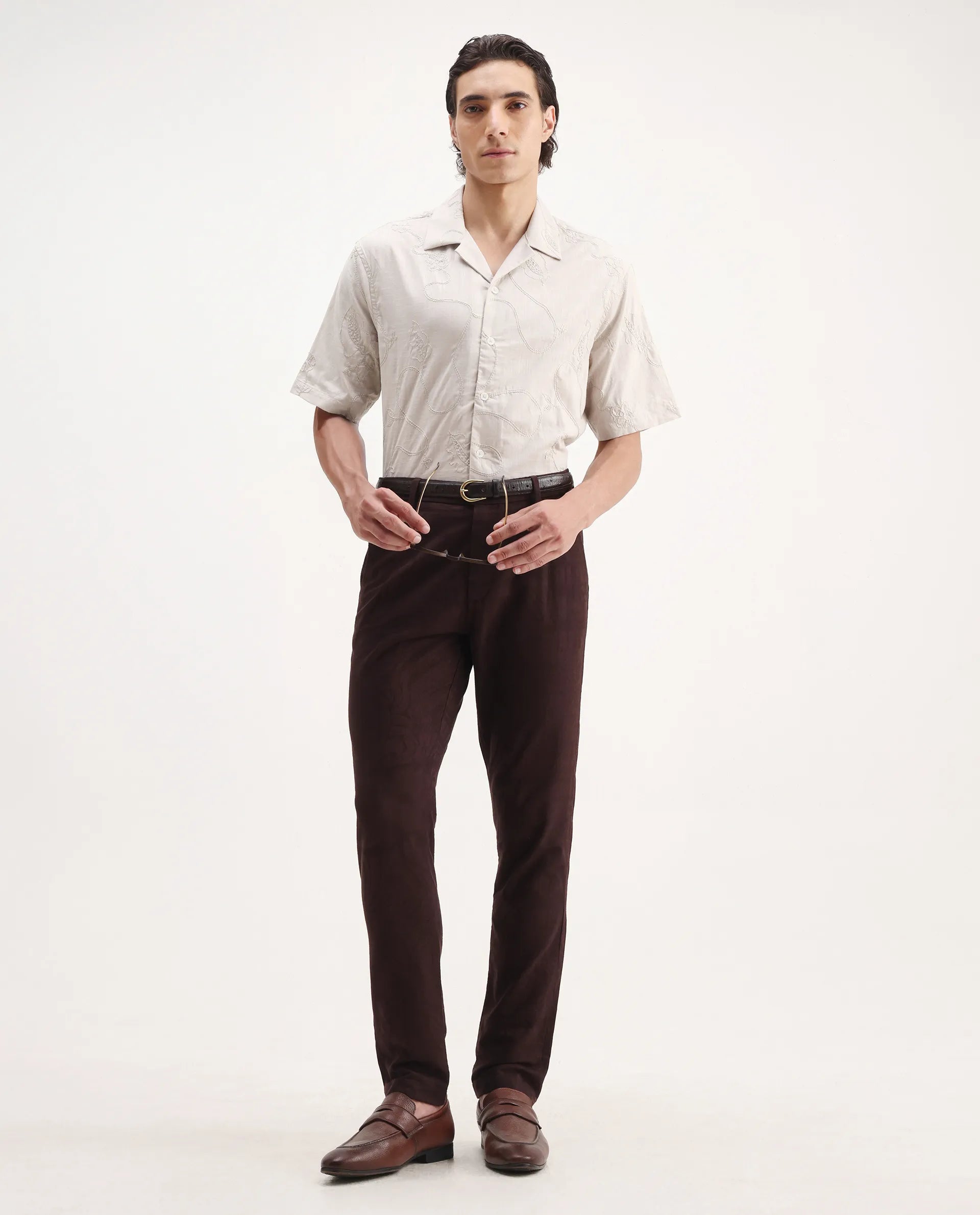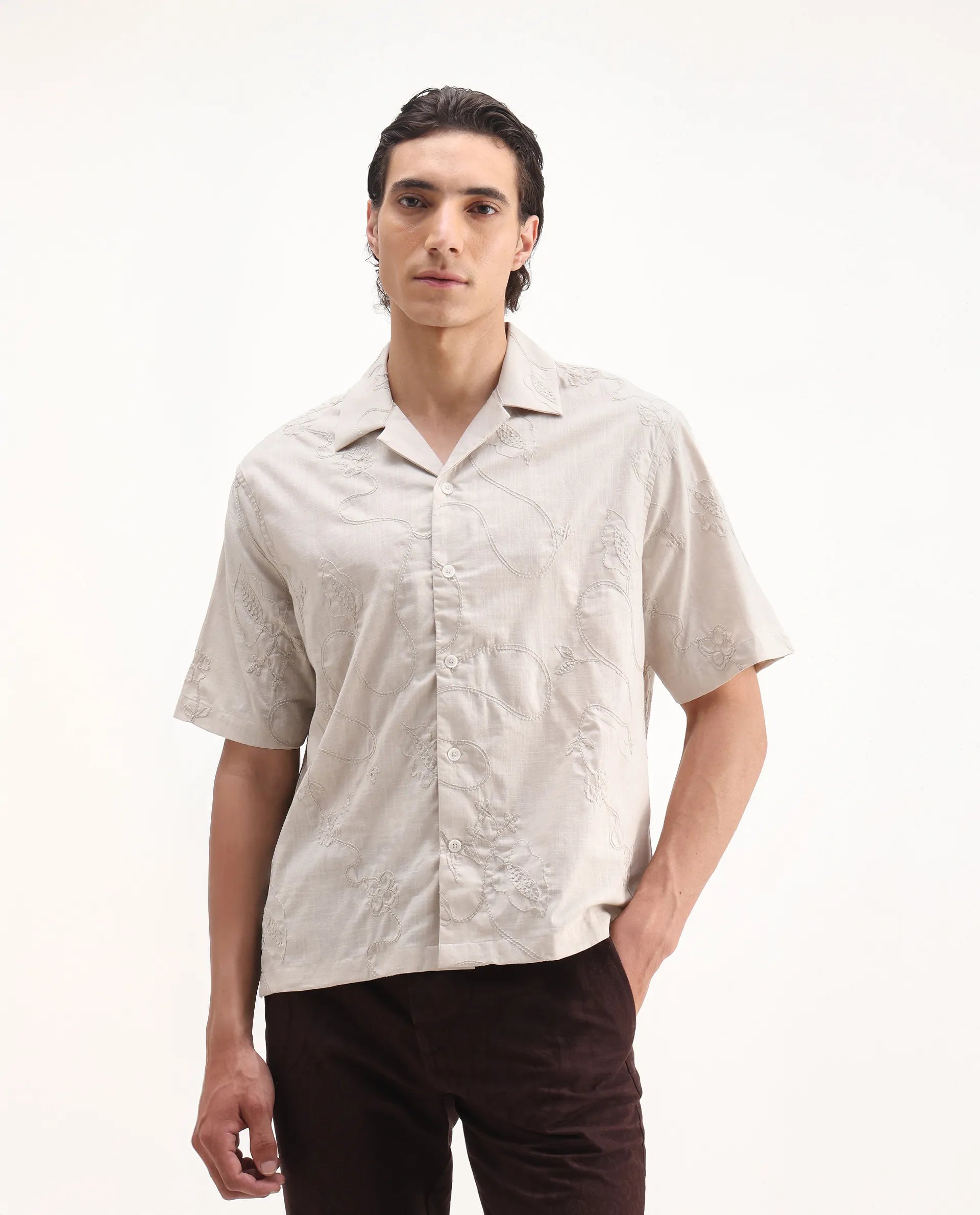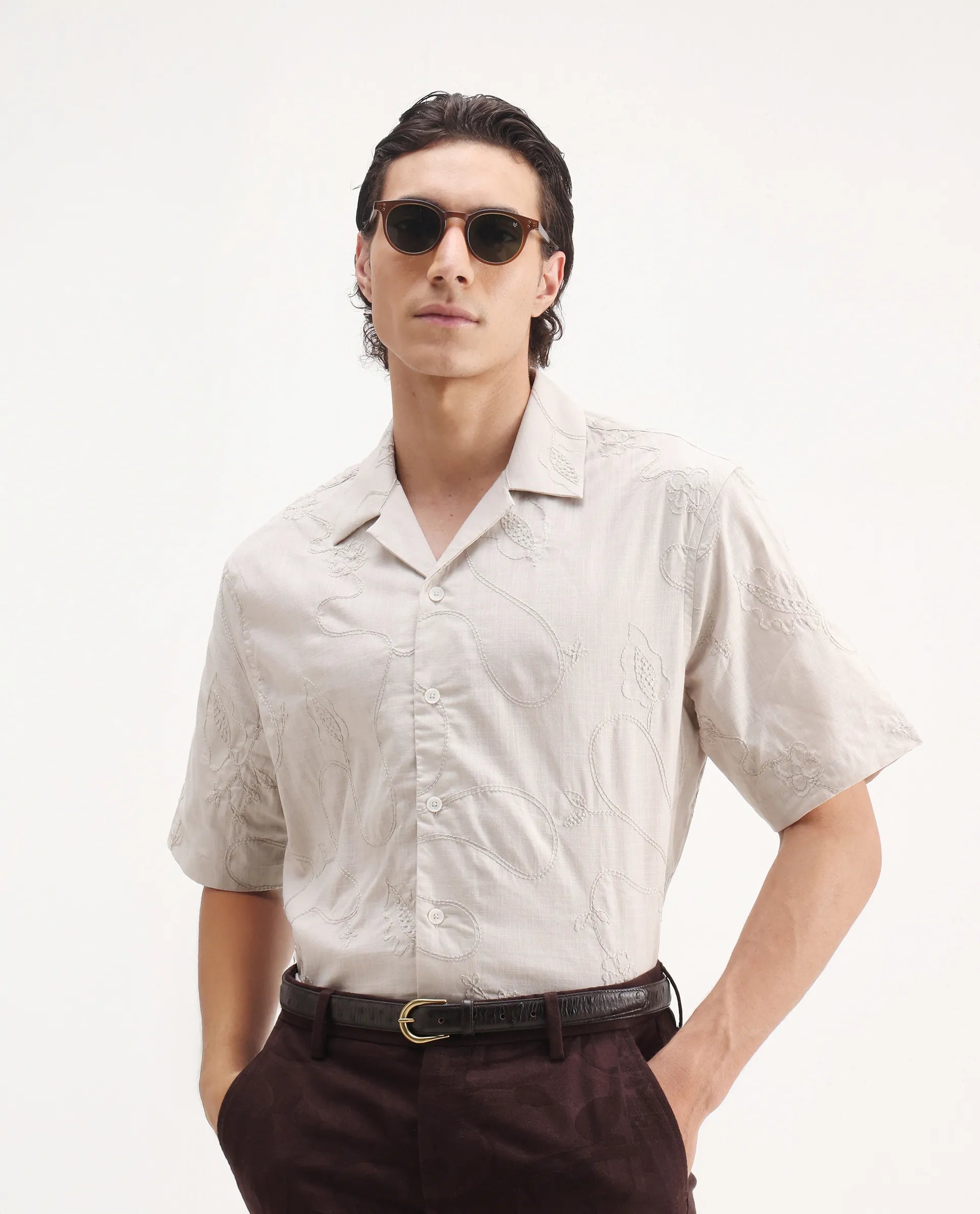 This mens shirt from RARE RABBIT carries a contemporary and minimal charm. Its neat styling keeps the outfit looking fresh and composed. A reliable pick for someone who prefers a soft, modern aesthetic.