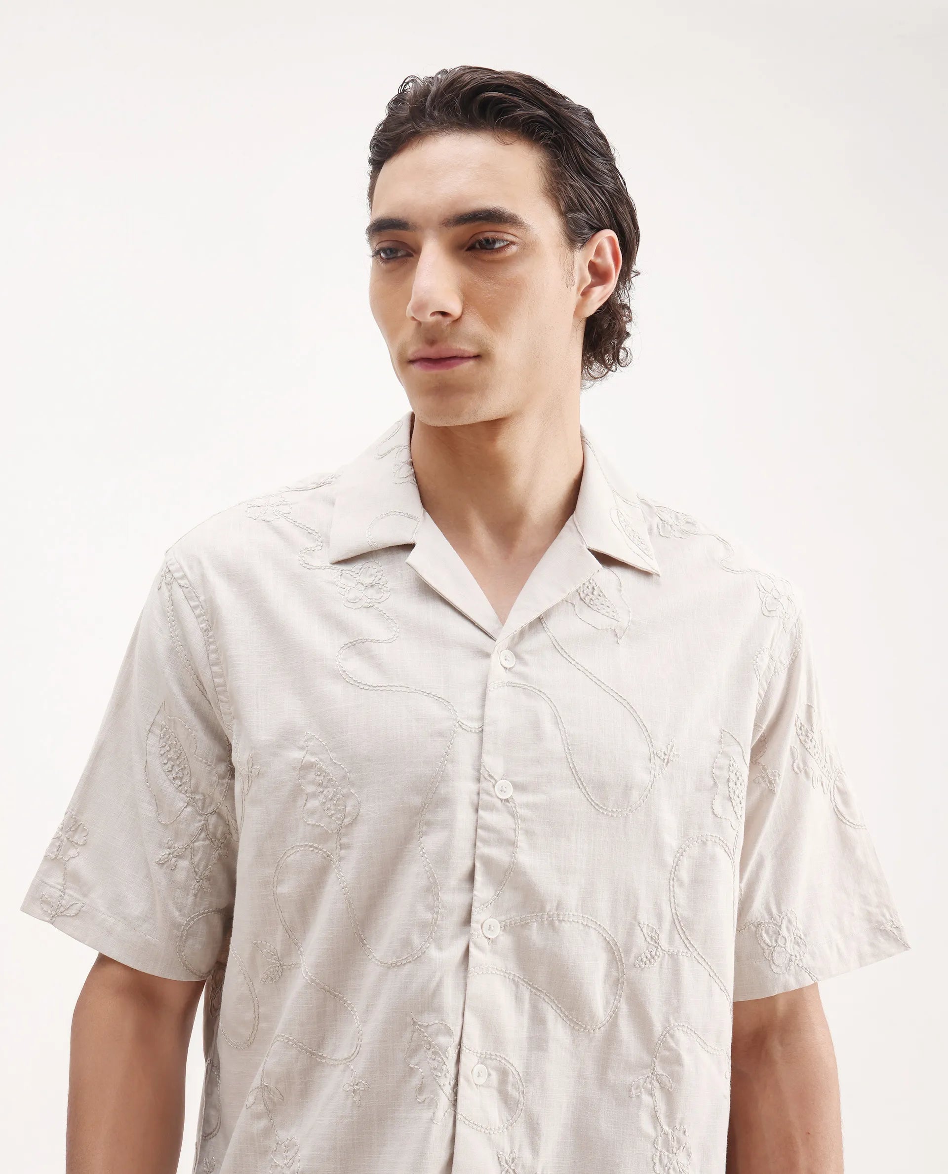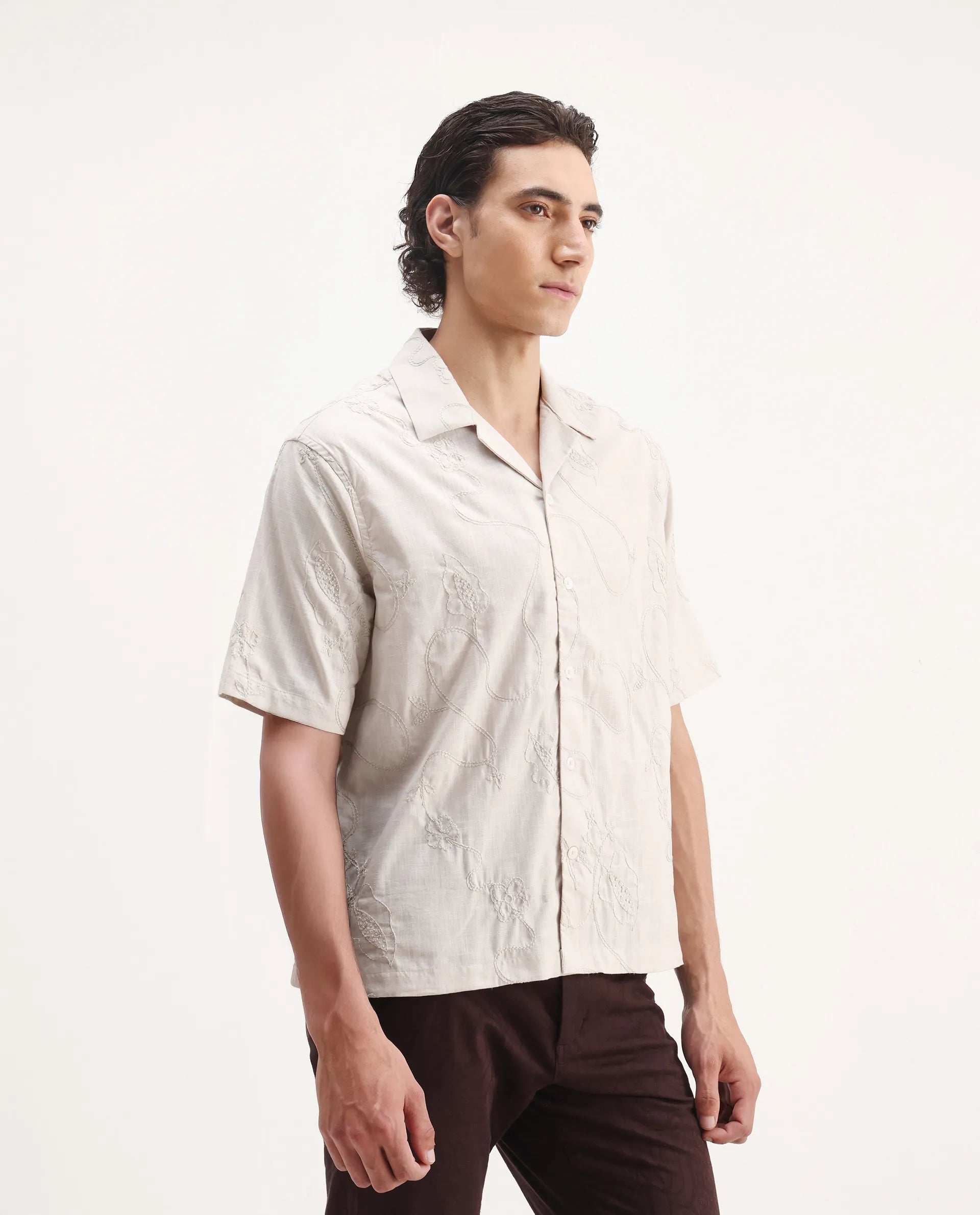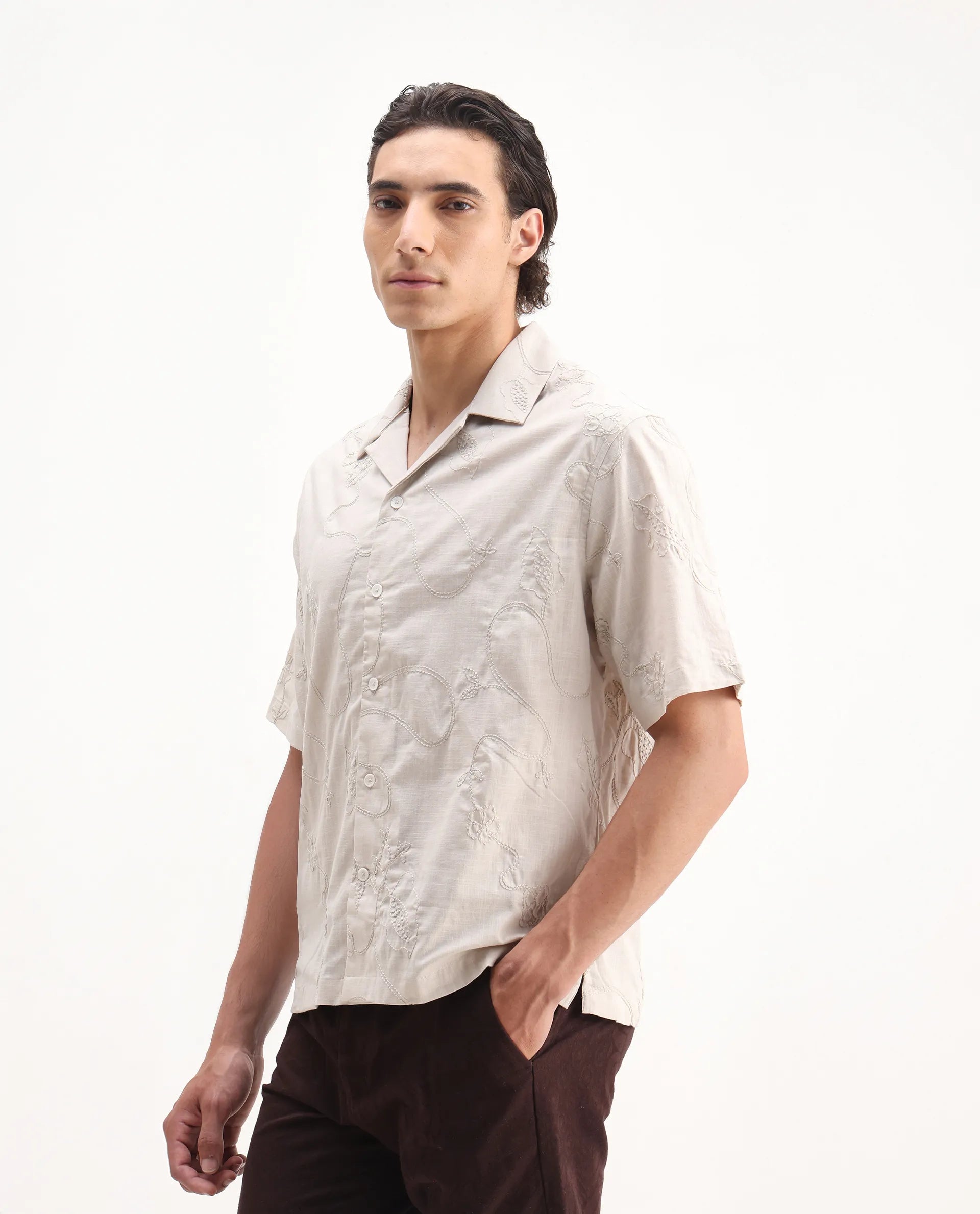 This mens shirt from RARE RABBIT carries a contemporary and minimal charm. Its neat styling keeps the outfit looking fresh and composed. A reliable pick for someone who prefers a soft, modern aesthetic.