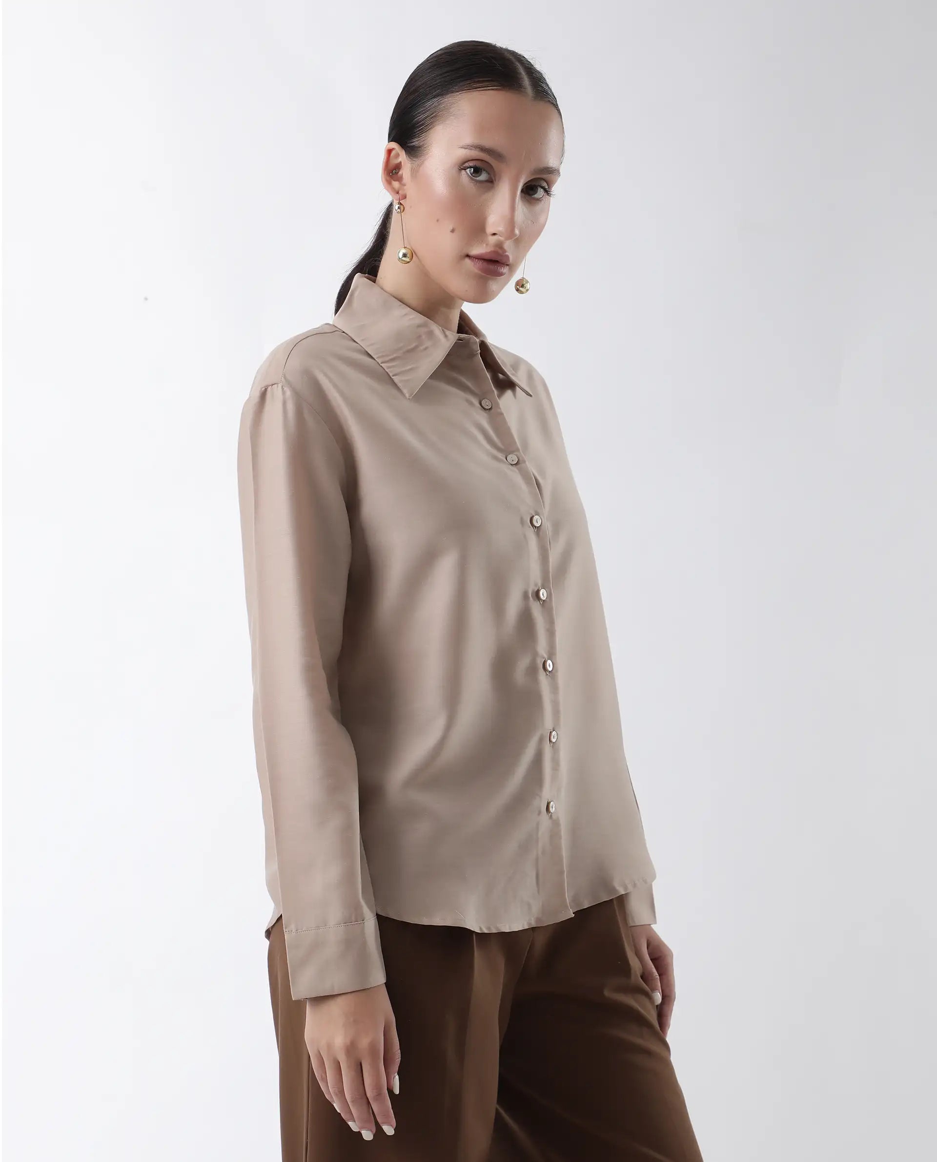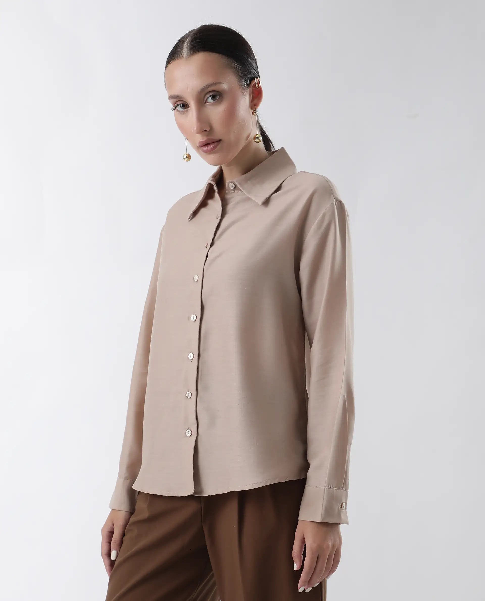 This Rareism Women Epets Beige Shirt features a convenient button closure and is made of durable and comfortable polyester material. Enjoy a regular, flattering fit for everyday wear. Elevate your wardrobe with this versatile and stylish shirt.