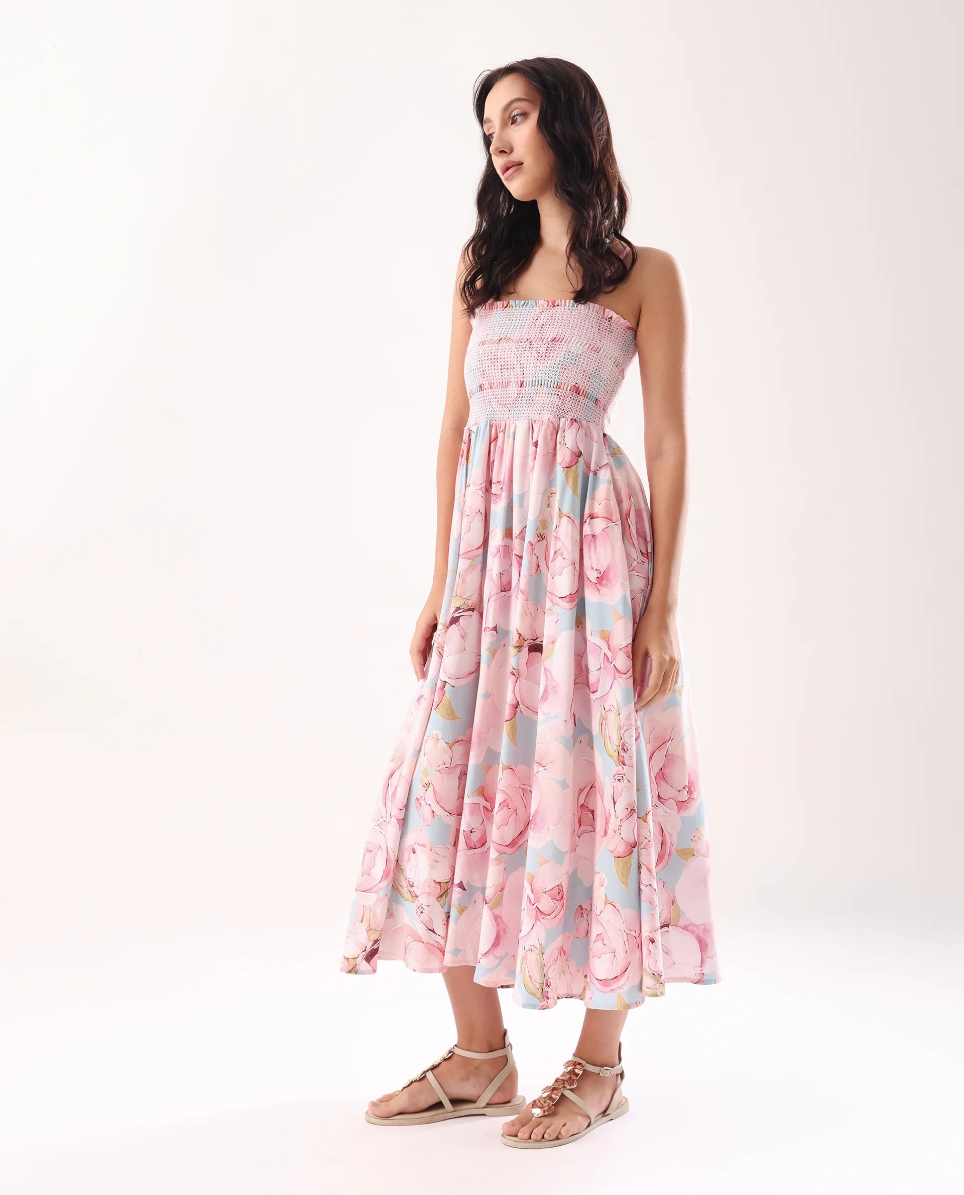 Elevate your wardrobe with this sophisticated multi-colored tube neck midi dress. The elastic closure ensures a perfect fit, while the fit and flare silhouette creates a flattering feminine profile. The carefully curated print adds visual interest to this versatile piece, suitable for both casual outings and semi-formal occasions.