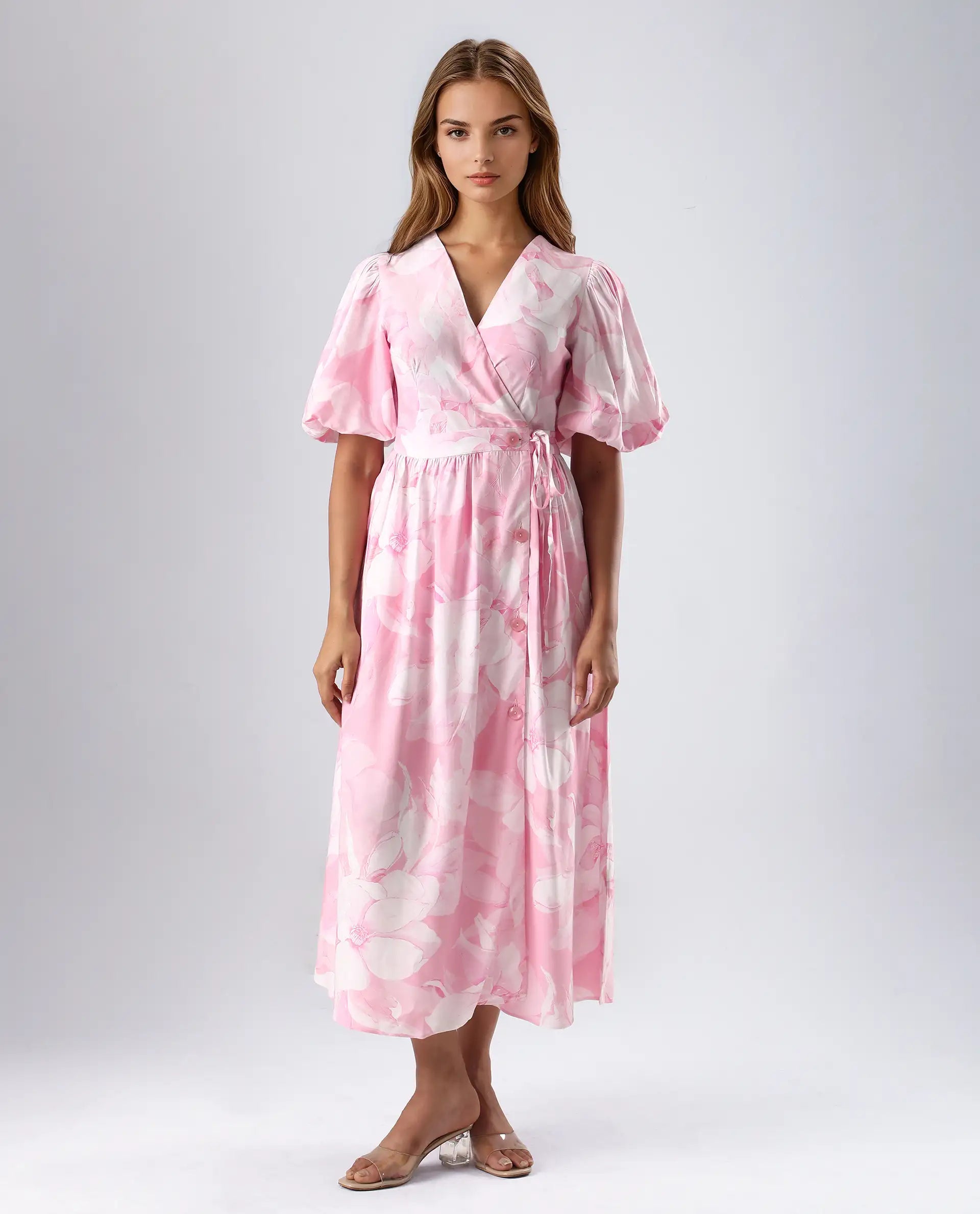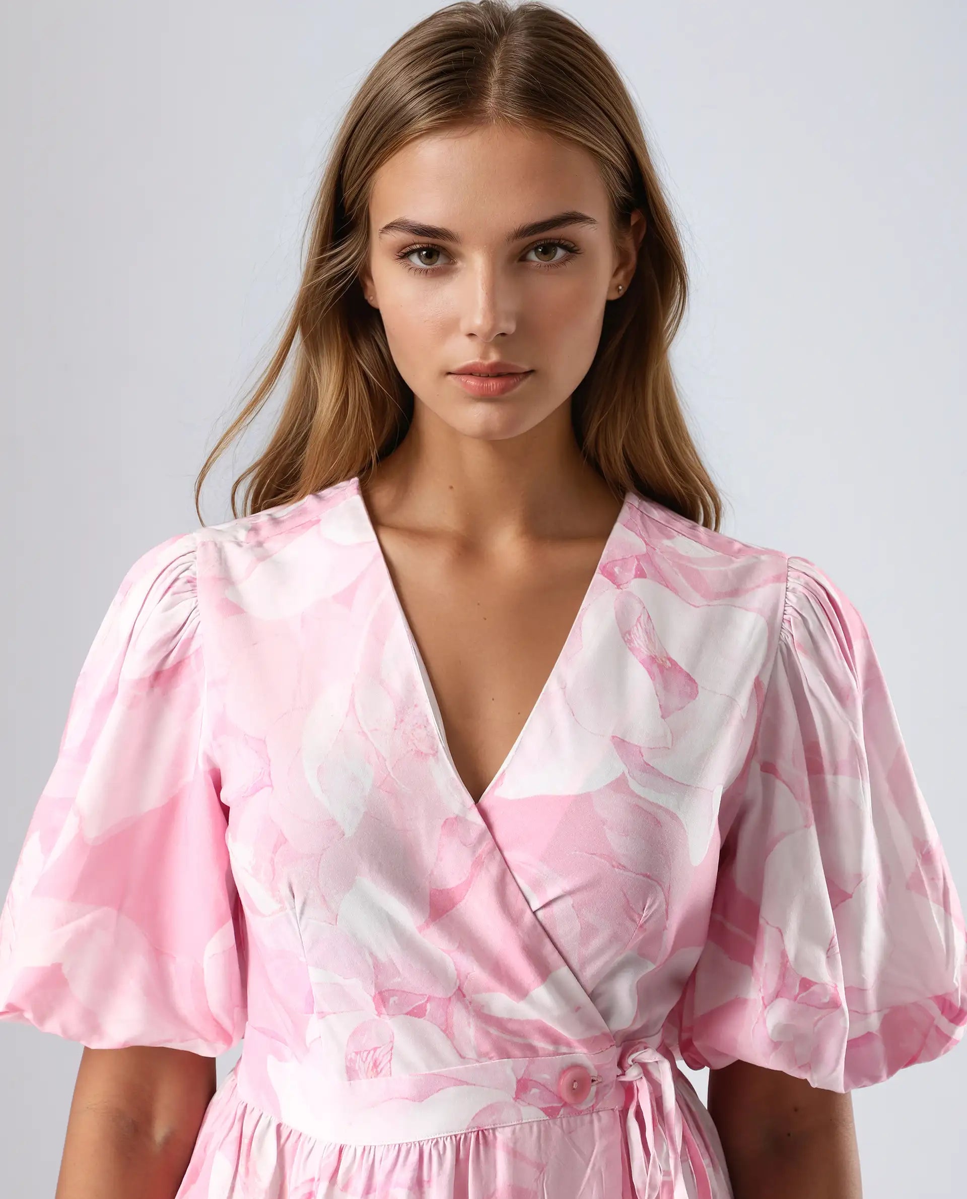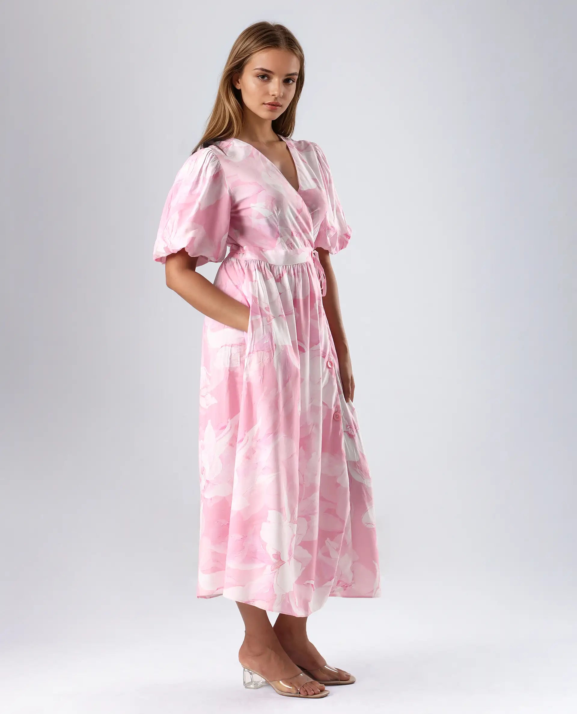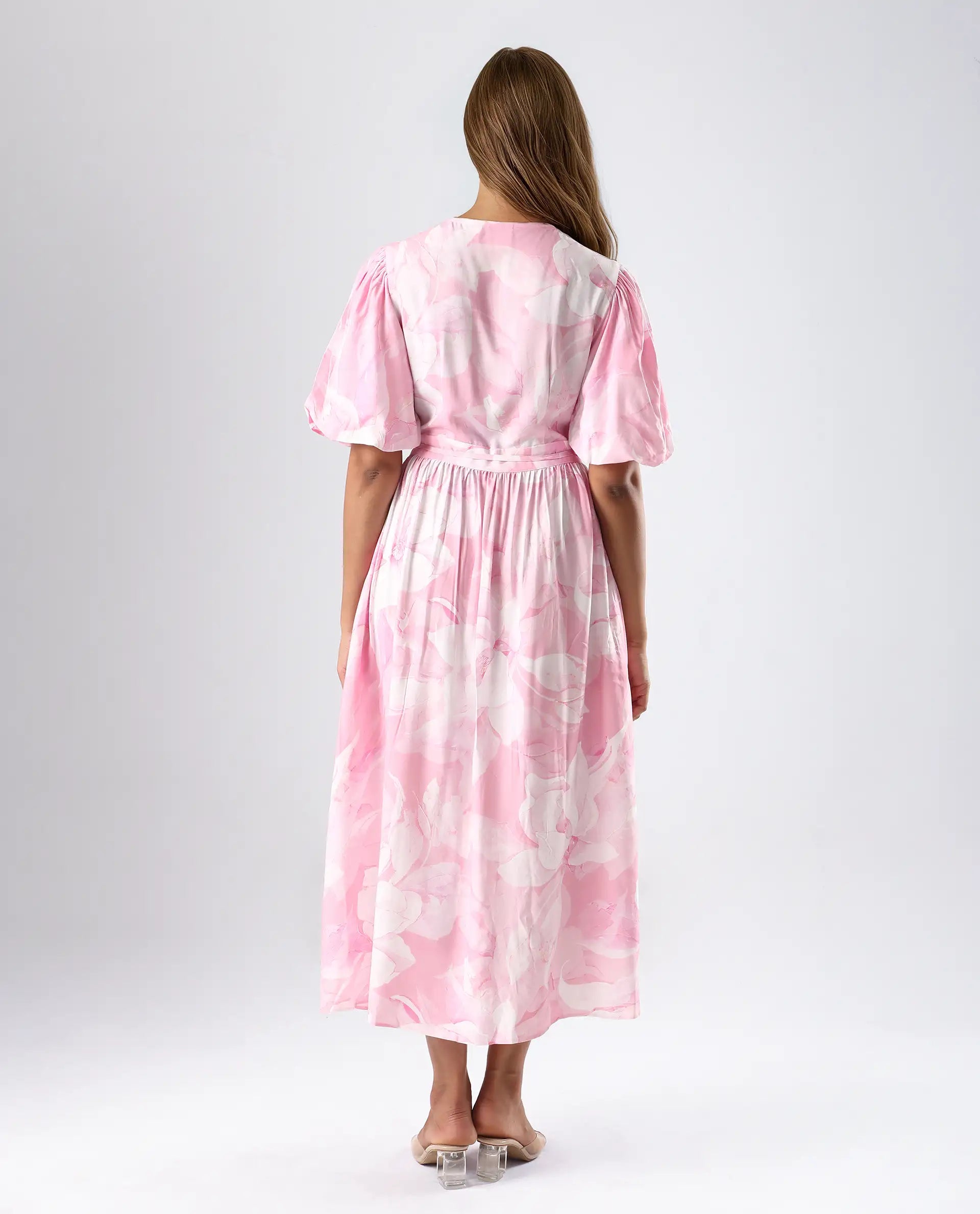 This Rareism dress features a flattering v-neckline and a button closure for secure yet stylish wear. The A-line silhouette and midi length offer timeless elegance, while the intricate print adds a touch of uniqueness. Perfect for any occasion, this dress will elevate your wardrobe.
