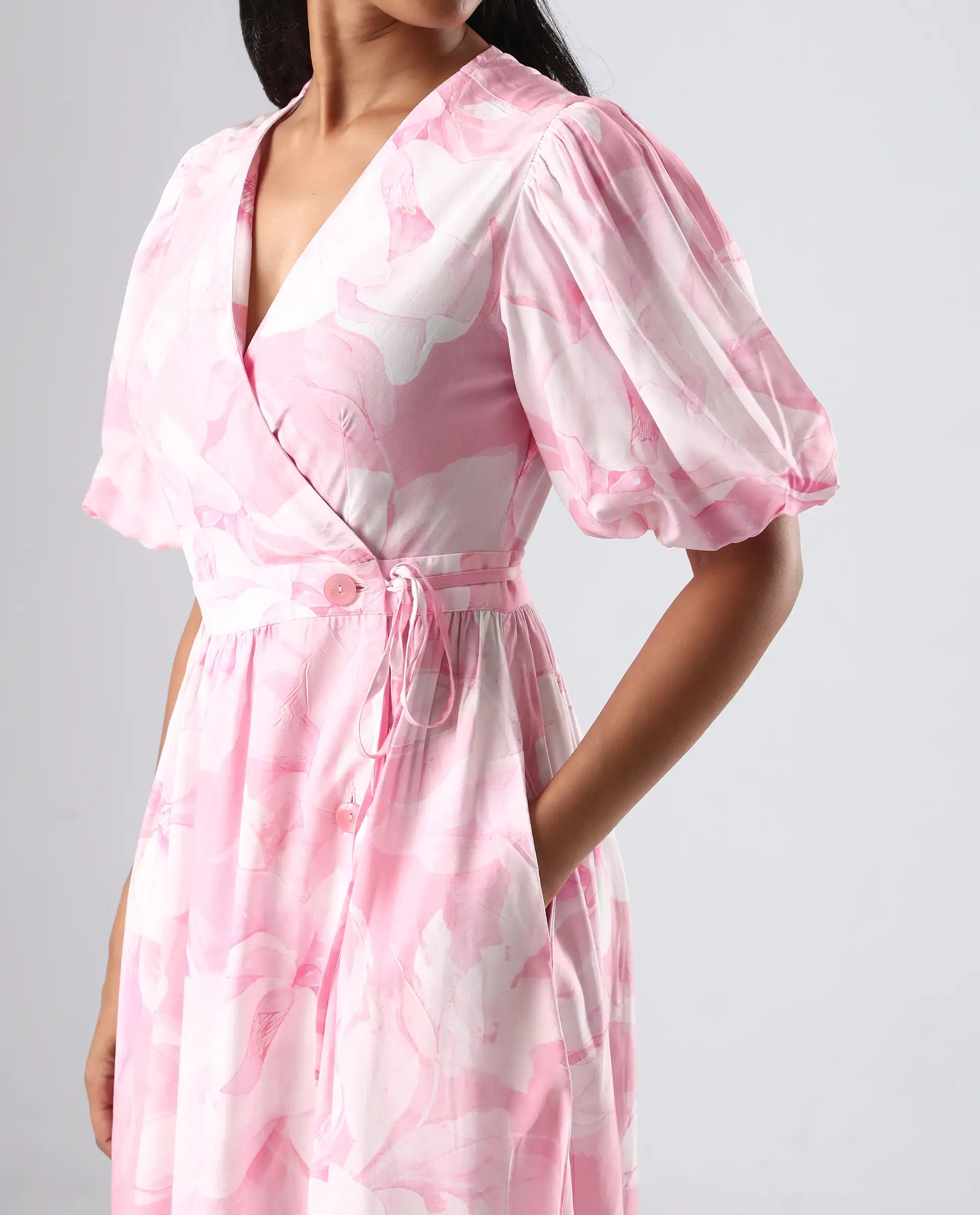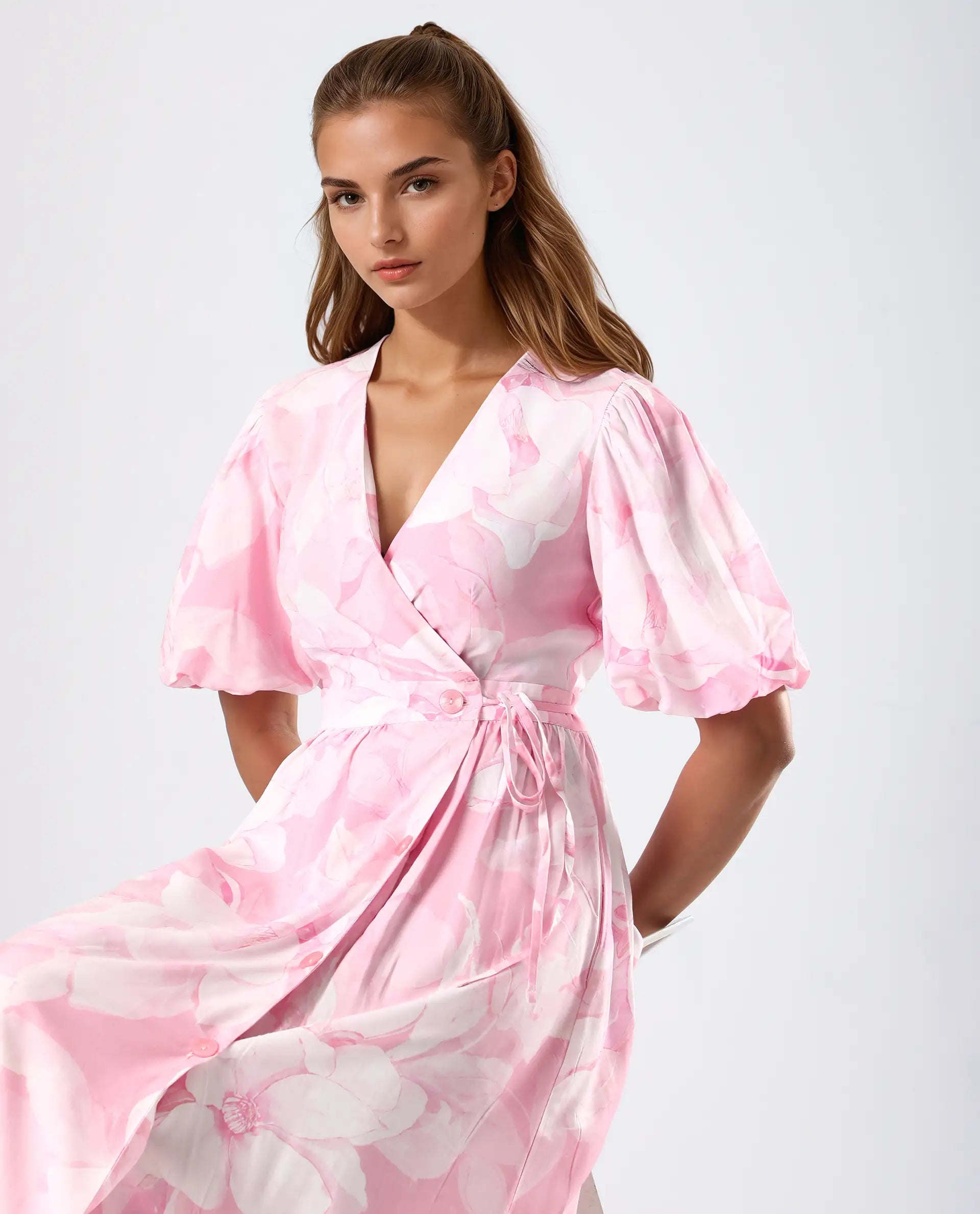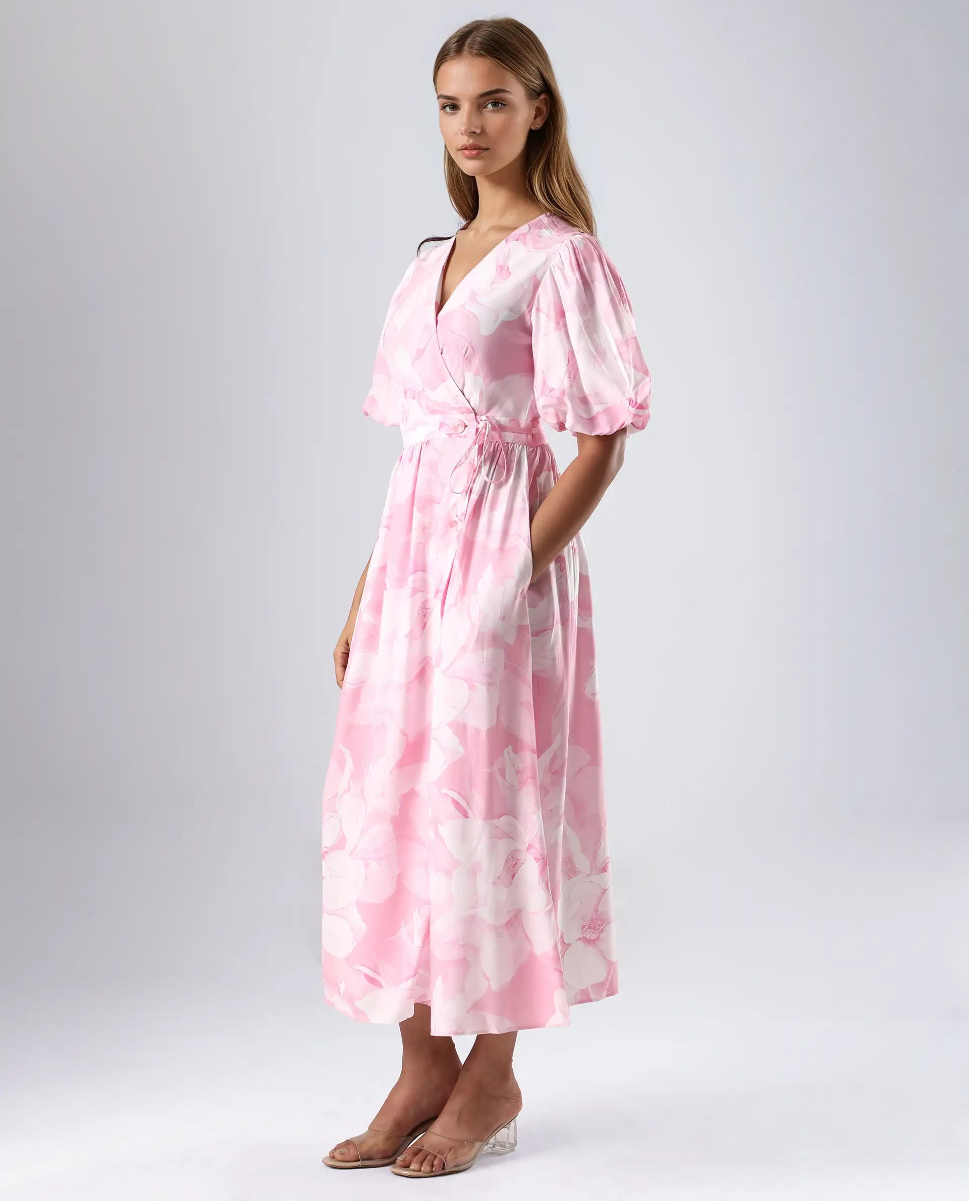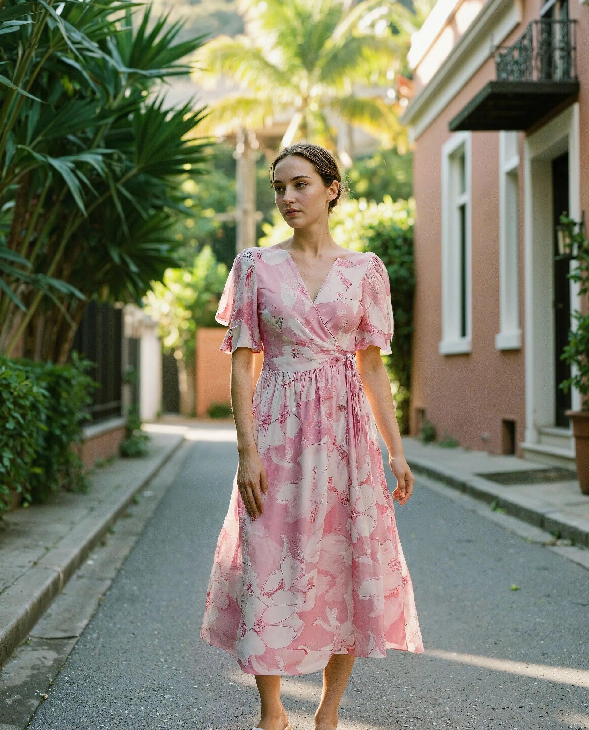 This Rareism dress features a flattering v-neckline and a button closure for secure yet stylish wear. The A-line silhouette and midi length offer timeless elegance, while the intricate print adds a touch of uniqueness. Perfect for any occasion, this dress will elevate your wardrobe.