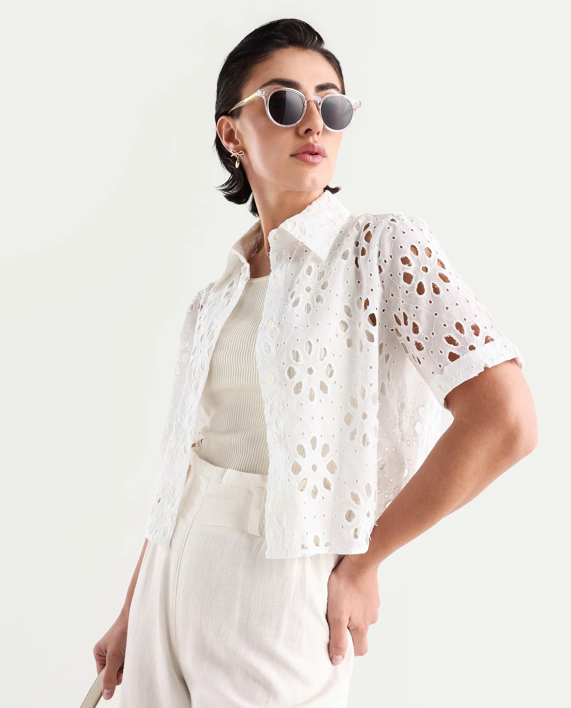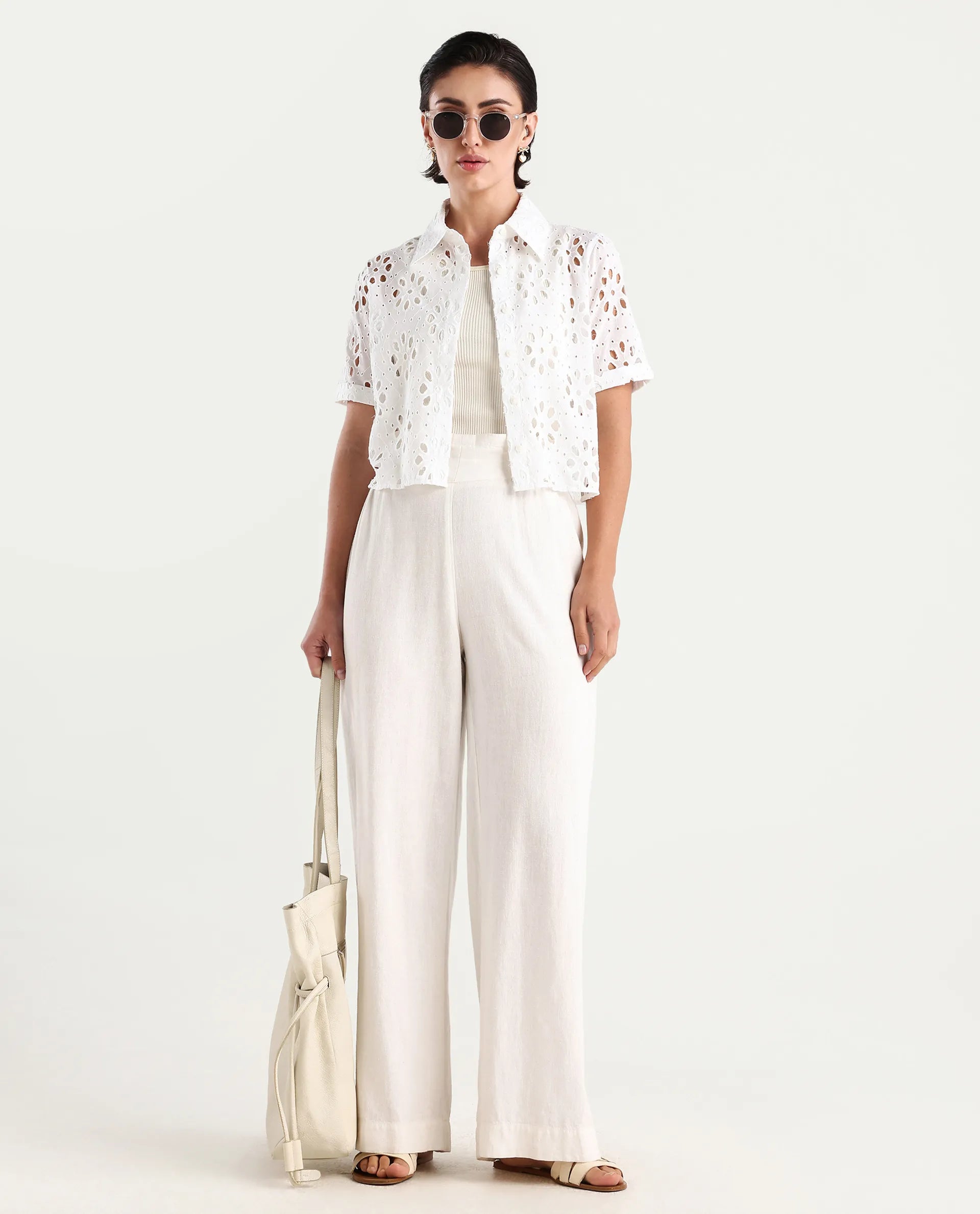 This Rareism Women Epoch White Button Closure Cotton Regular Crop Shirt combines classic style with breathable comfort. Crafted from high-quality cotton, it ensures softness and durability for everyday wear. The button closure offers easy fastening, while the regular fit and cropped length provide a modern silhouette suitable for versatile styling. Ideal for those seeking a refined yet casual wardrobe staple.