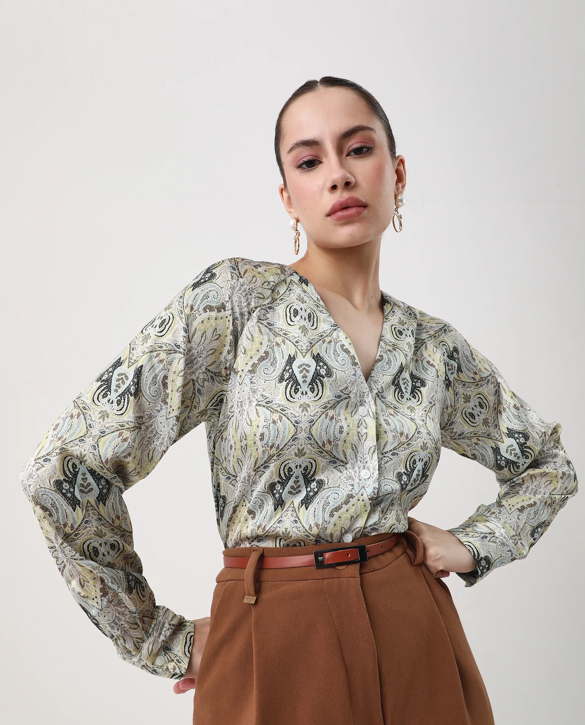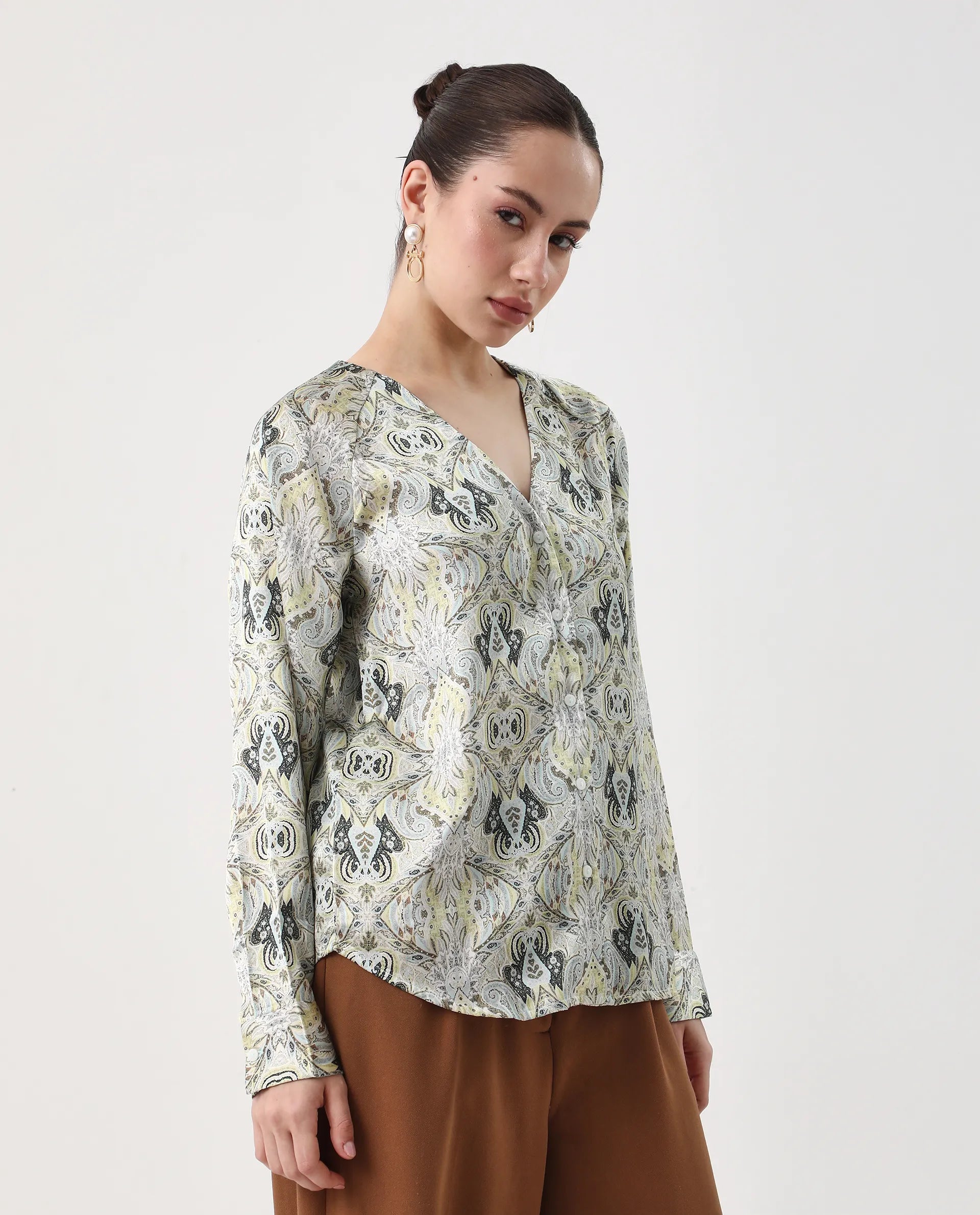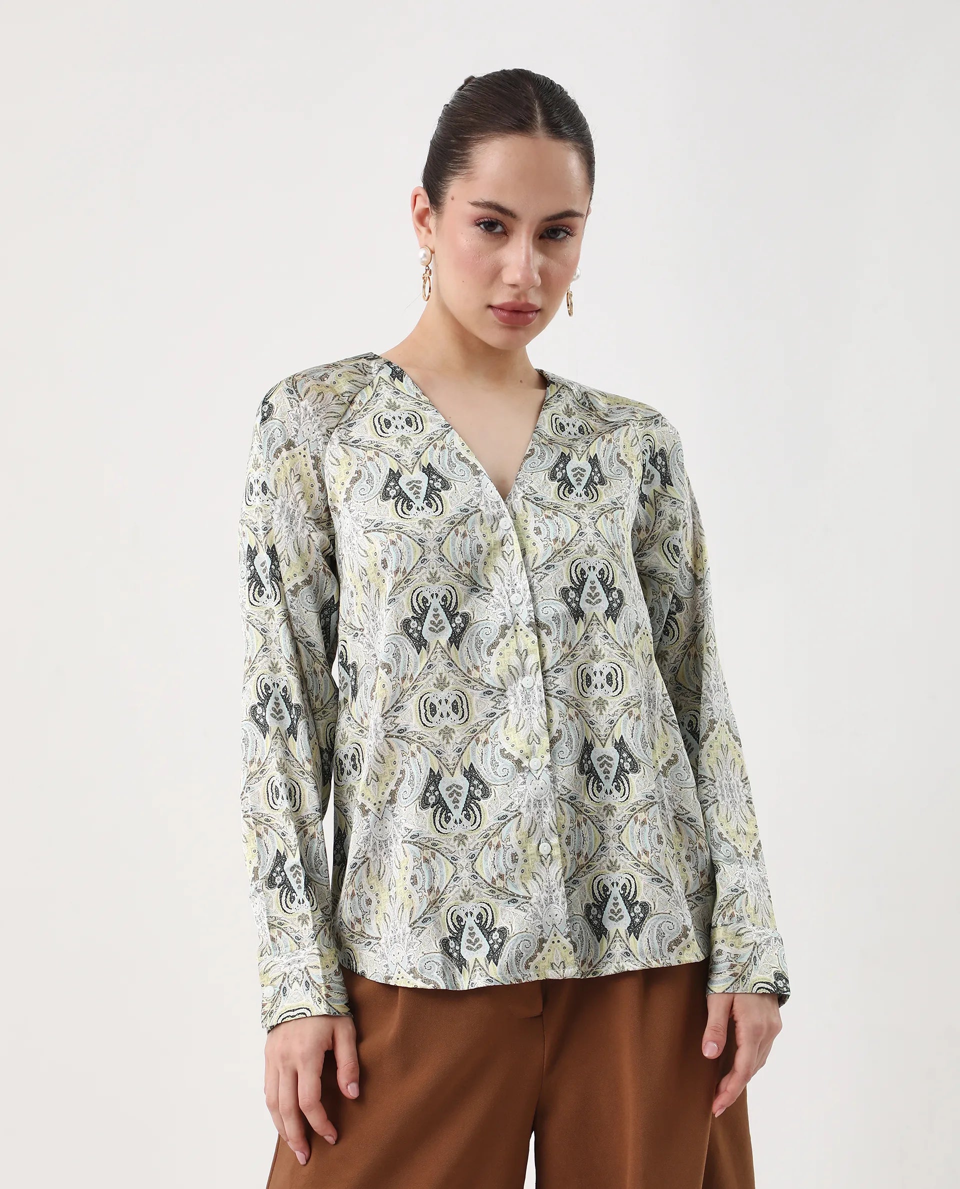 Introducing the Rareism Women Epoll Multi Button Closure Satin Relaxed Regular Abstract Top. Made with a button closure and satin fabric, this top offers a relaxed and regular fit with an abstract design. Perfect for any occasion, this top is the epitome of style and comfort.