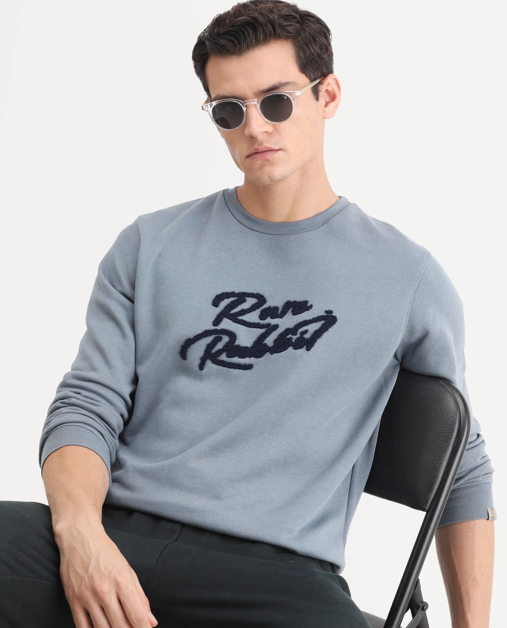 -An acid wash towel embroidered sweatshirt in full sleeves with branding.
