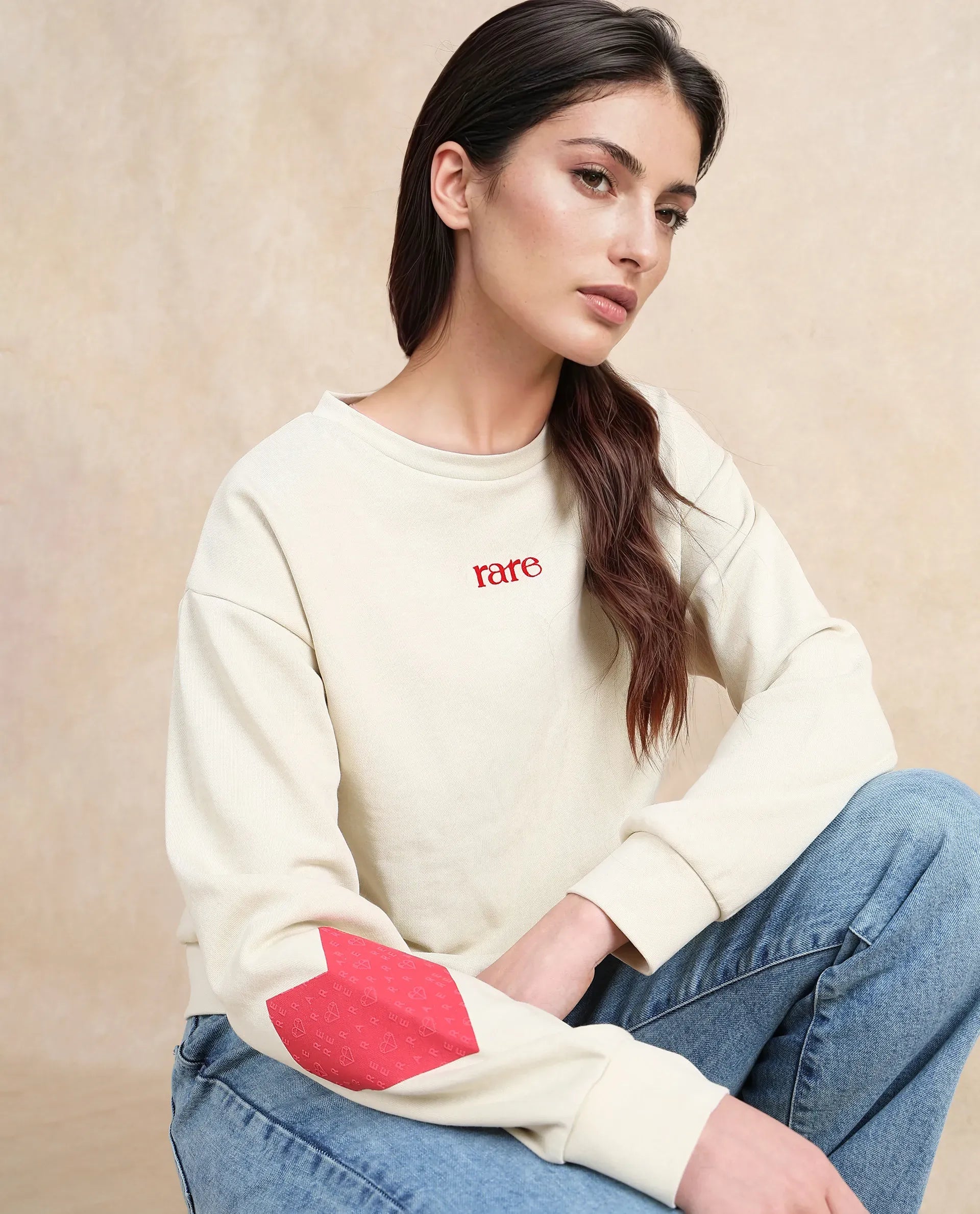 Elevate your casual wardrobe with this stylish women's light beige sweatshirt, perfect for any relaxed outing. Crafted from a premium cotton blend fabric, this crew neck sweatshirt offers a comfortable and relaxed fit. The standout feature is the heart on sleeve graphic print, adding a unique touch to your ensemble. Ideal for everyday wear, this full-sleeve, knitted sweatshirt combines fashion and comfort effortlessly. Embrace the latest trend in women's casual wear with this versatile piece, designed to keep you cozy and chic. Discover the perfect blend of style and comfort with this must-have graphic print sweatshirt.