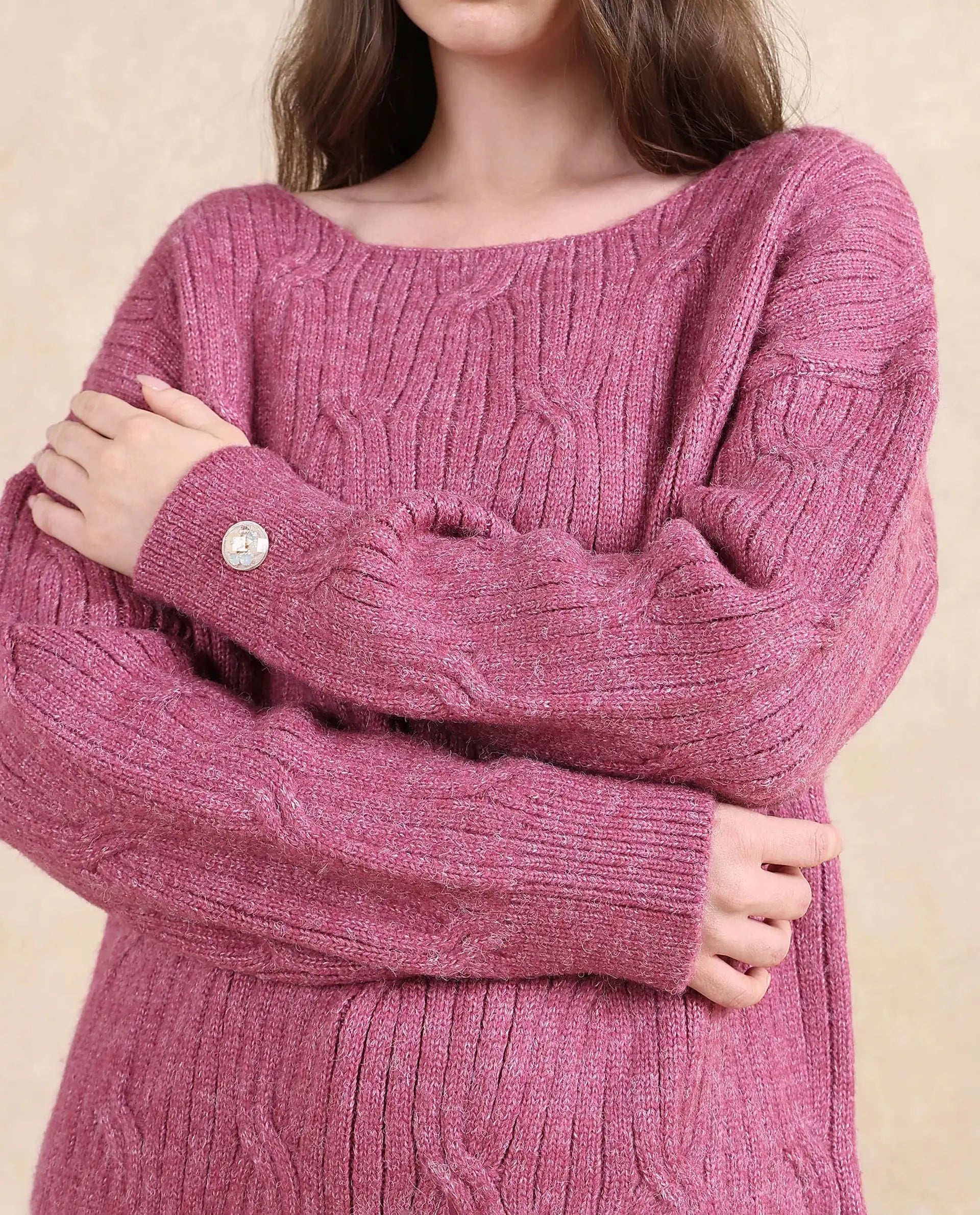 Rareism Women's Floran Pink Cotton Crew Neck Plain Relaxed Fit Sweater