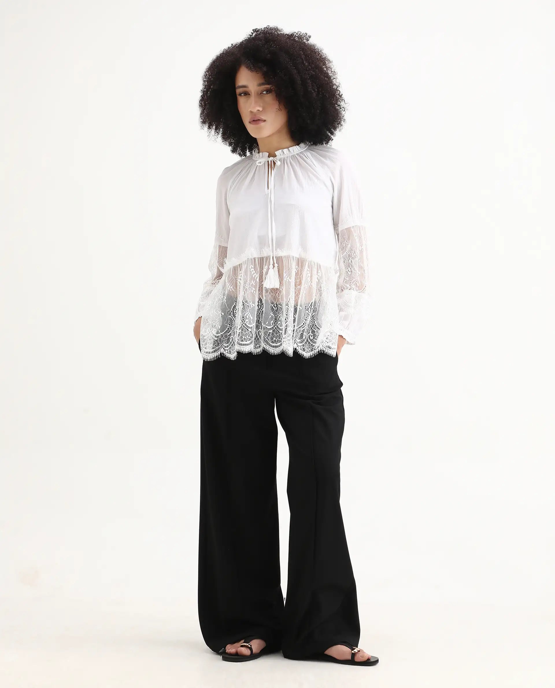 2. Ruffled neck detail adds a touch of elegance and sophistication.