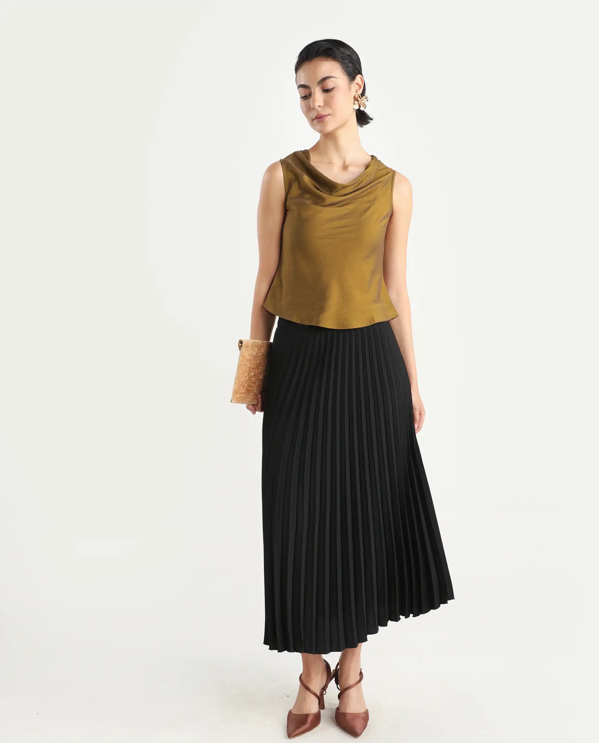 3. Cowl neck adds an elegant, flowing detail to the top.