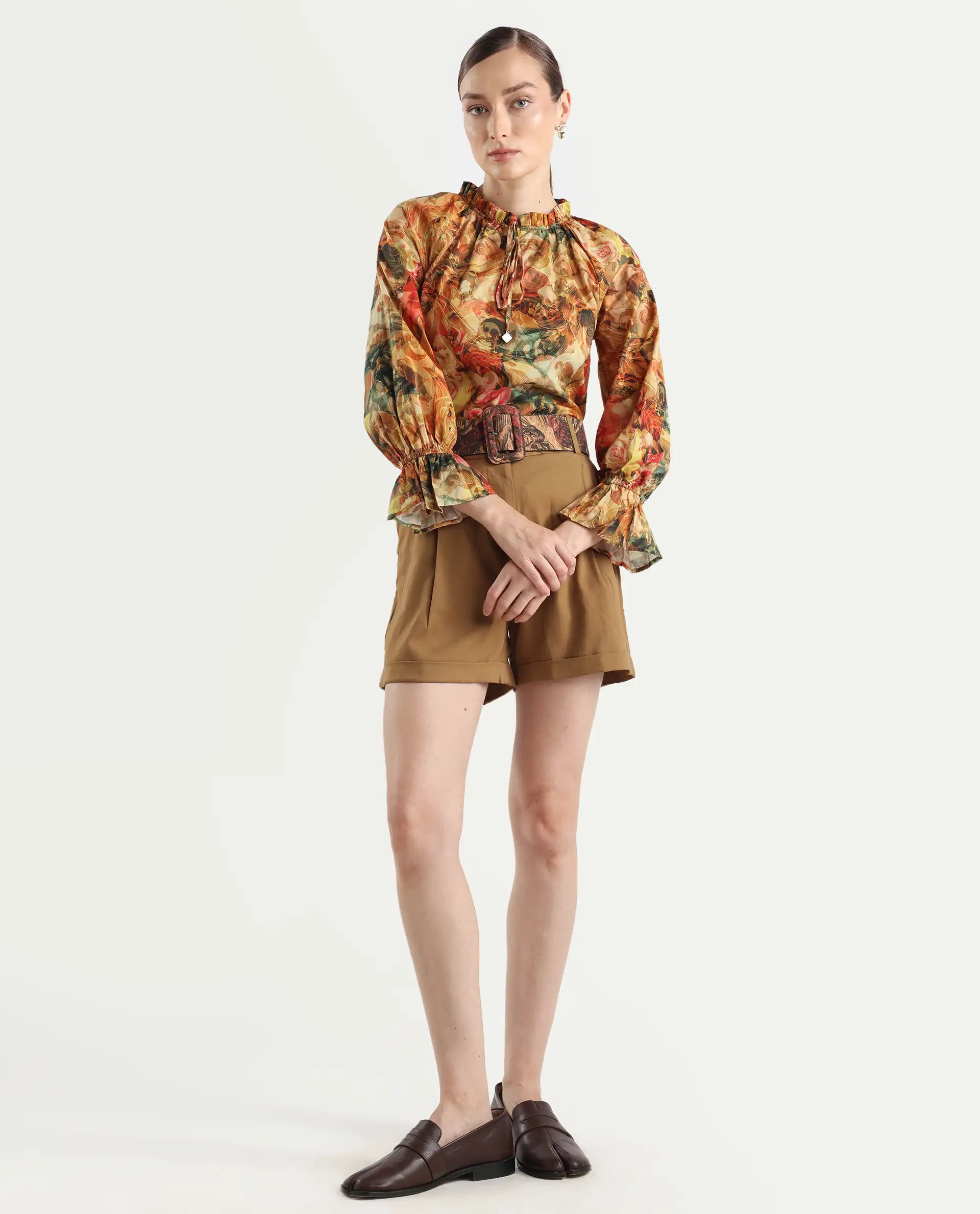 4. Sophisticated Collared Neck: Featuring a collared neck, this top exudes sophistication and refinement, suitable for both casual and formal occasions.