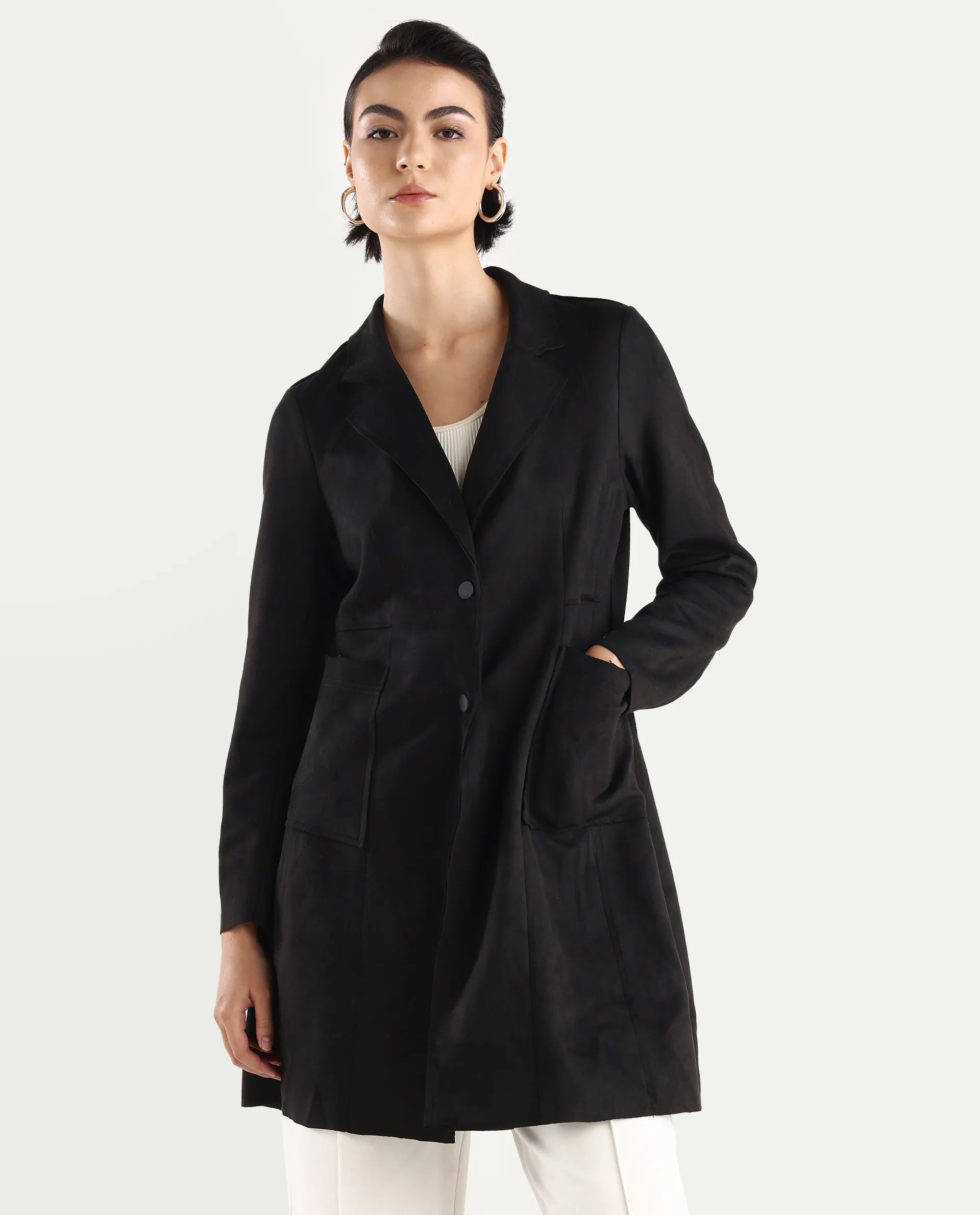3. Button closure: Provides a secure fit while adding a polished, classic detail to the jacket.