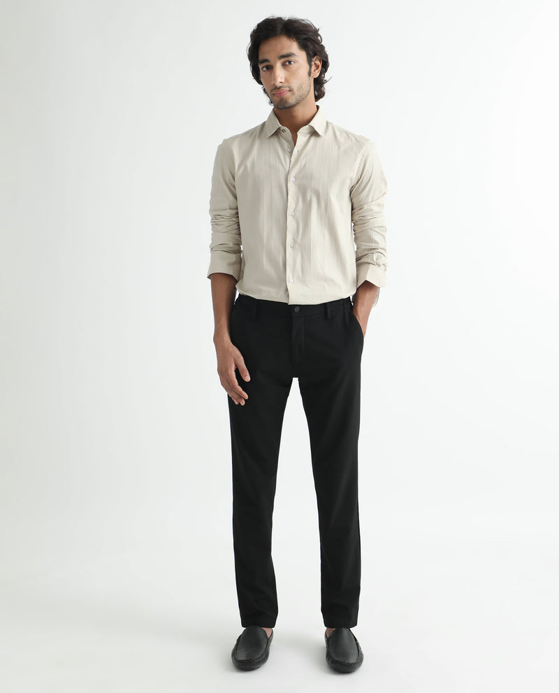 This mens shirt from RARE RABBIT carries a contemporary and minimal charm. Its neat styling keeps the outfit looking fresh and composed. A reliable pick for someone who prefers a soft, modern aesthetic.