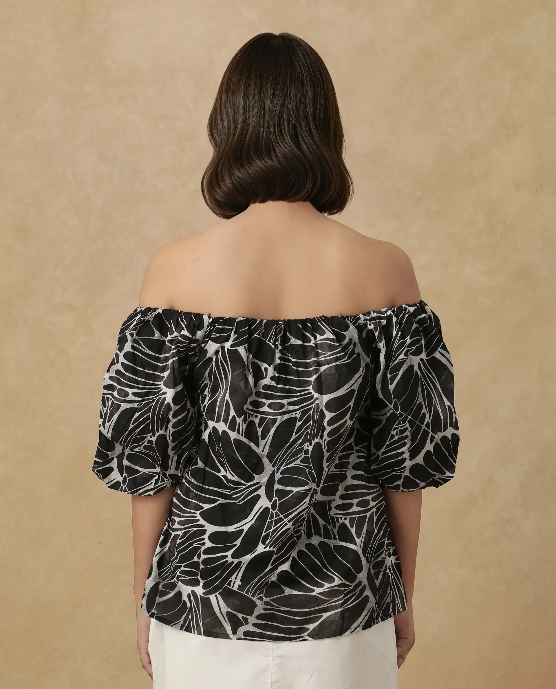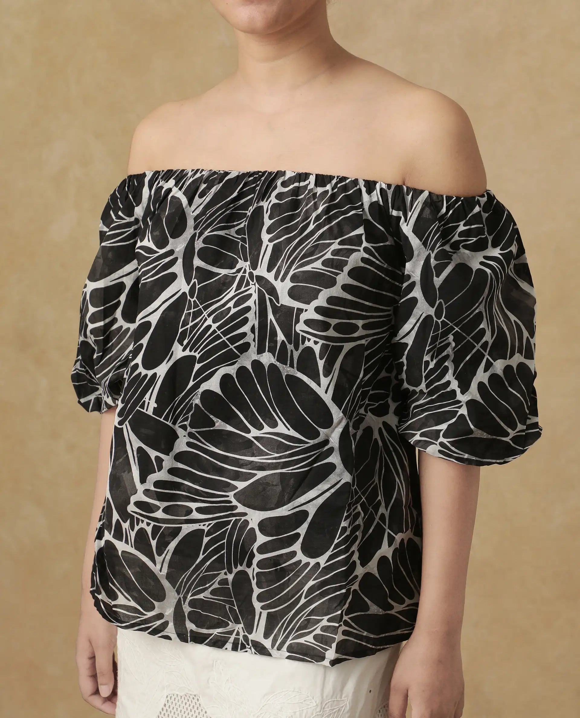 ABSTRACT PRINT BALLOON SLEEVE TOP