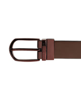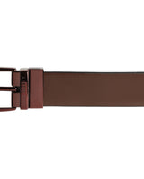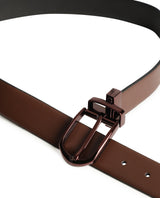 - Team up with this textured and plain leather options reversible belt in a coffee colour finish buckle