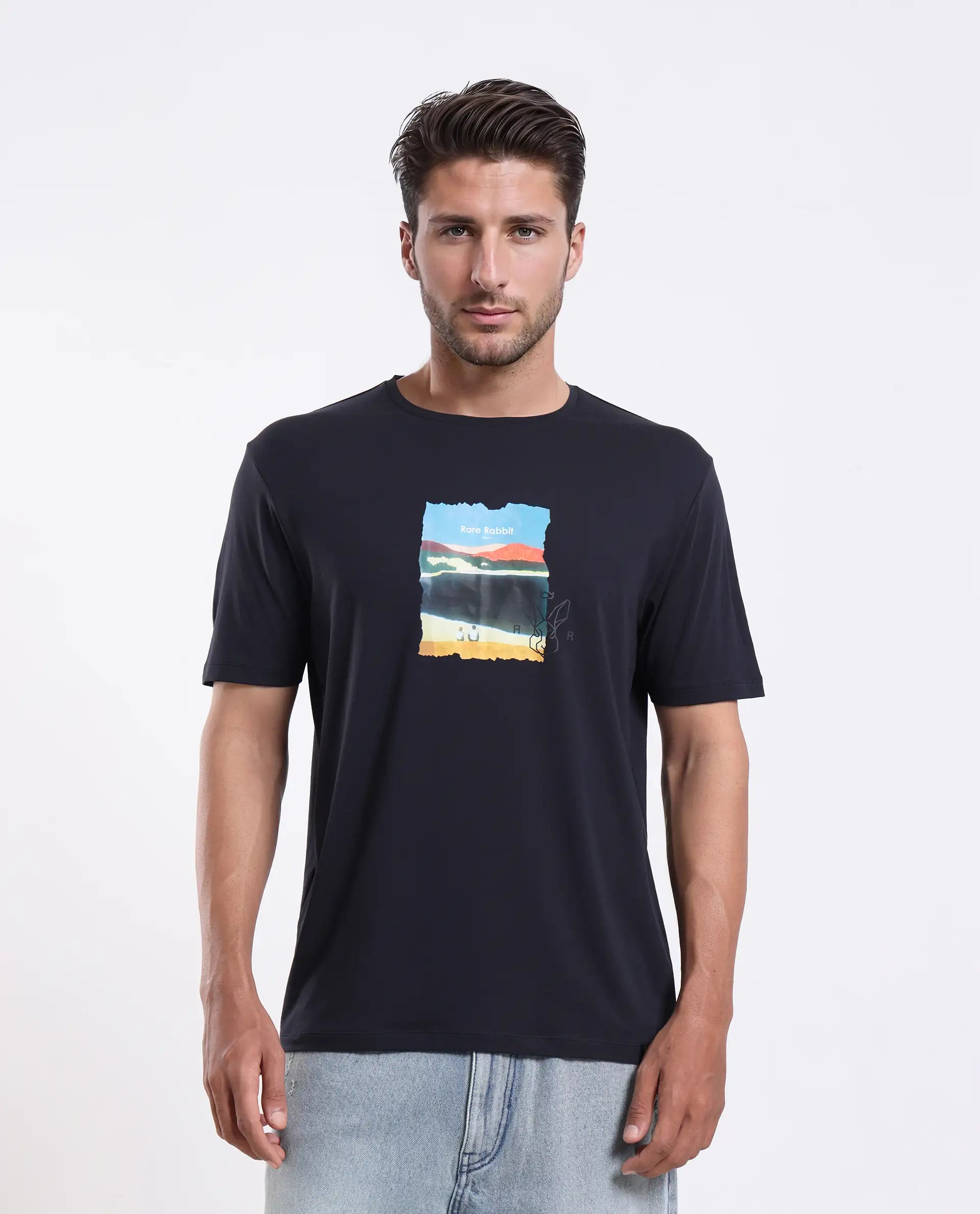 This mens t-shirt from RARE RABBIT carries a contemporary and minimal charm. Its neat styling keeps the outfit looking fresh and composed. A reliable pick for someone who prefers a soft, modern aesthetic.