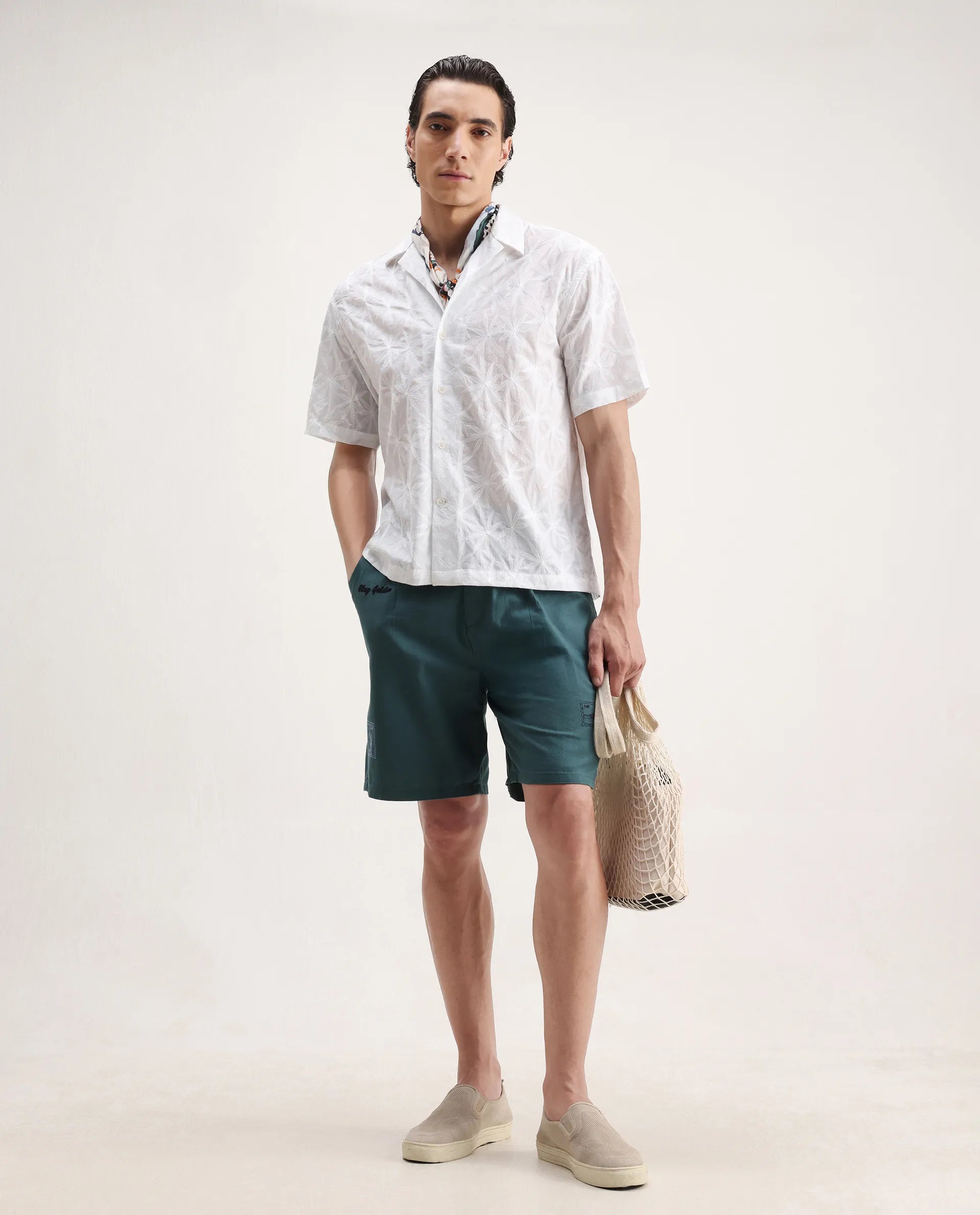 This mens shirt from RARE RABBIT carries a contemporary and minimal charm. Its neat styling keeps the outfit looking fresh and composed. A reliable pick for someone who prefers a soft, modern aesthetic.