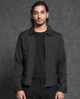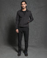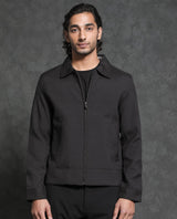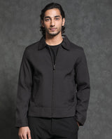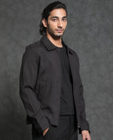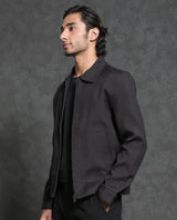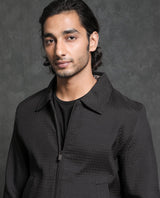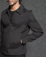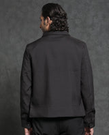 Rare Rabbit Men's Harbin Black Polyester Jacquard Regular Fit Full Sleeve Spread Collar Jacket