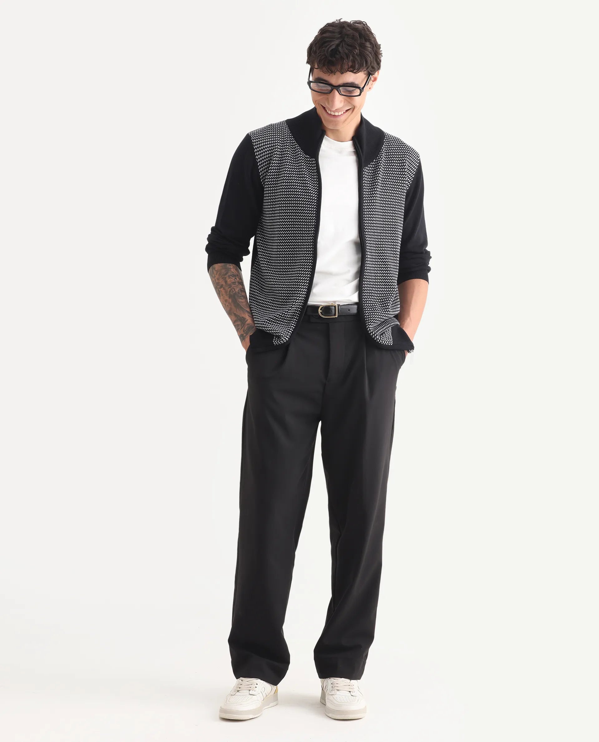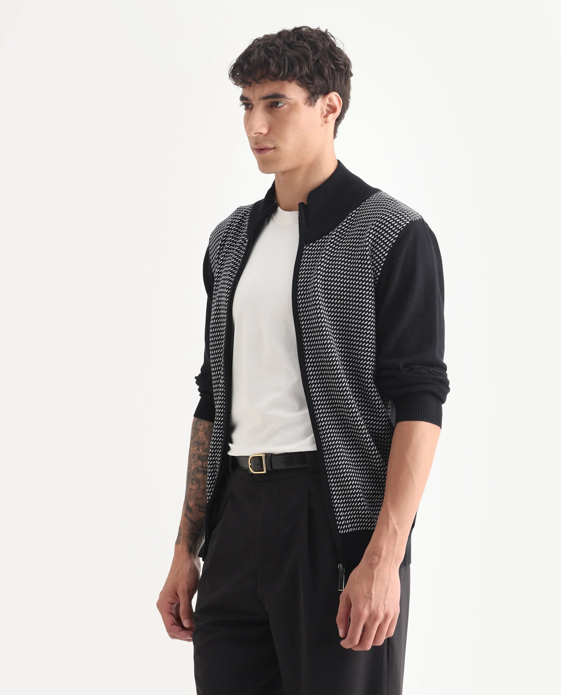 HERITAGE - BLACK REGULAR FIT JACQUARD SWEATER