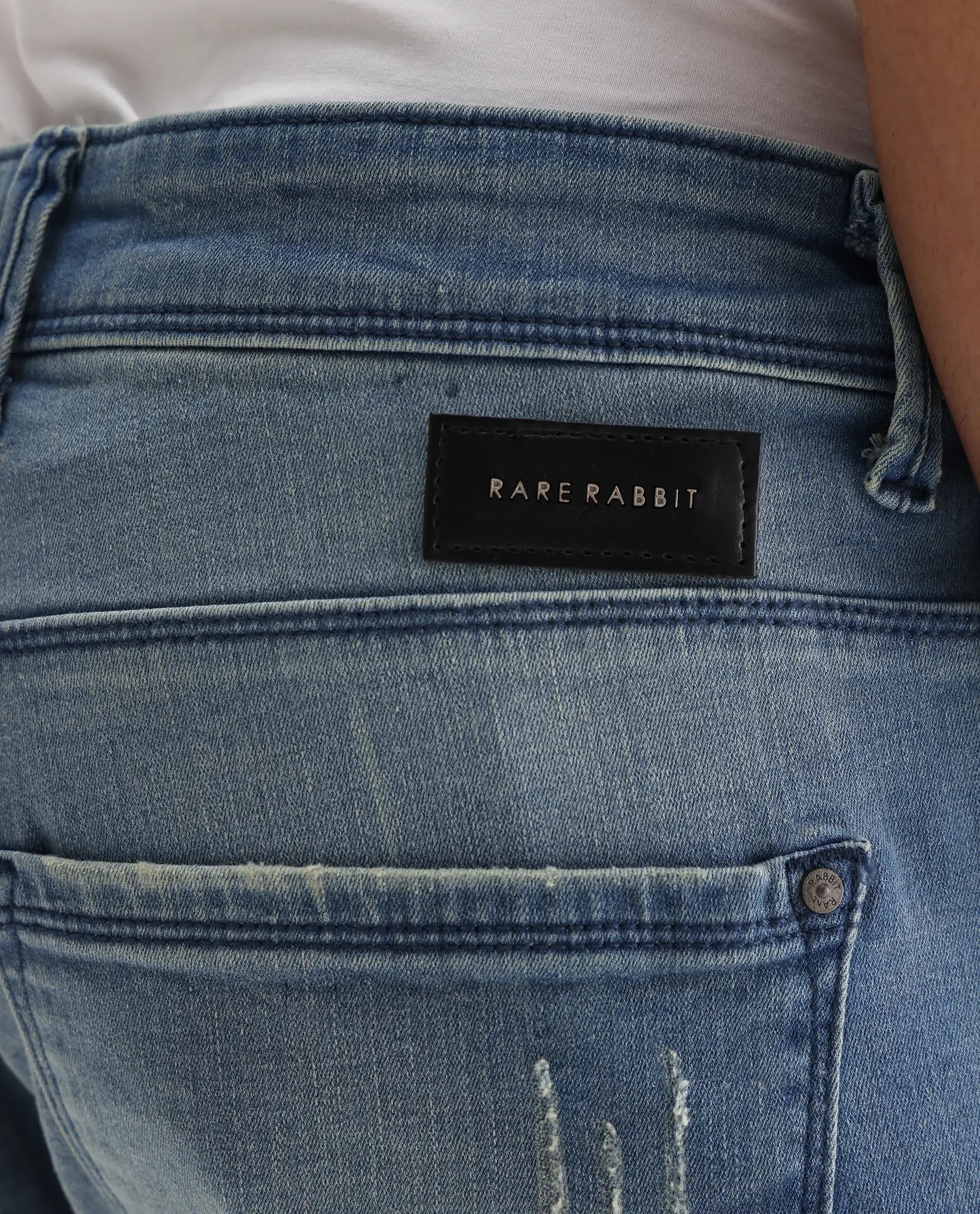 Rare Rabbit Men's Indus Blue Cotton Plain Hawk Slim Fit Jeans