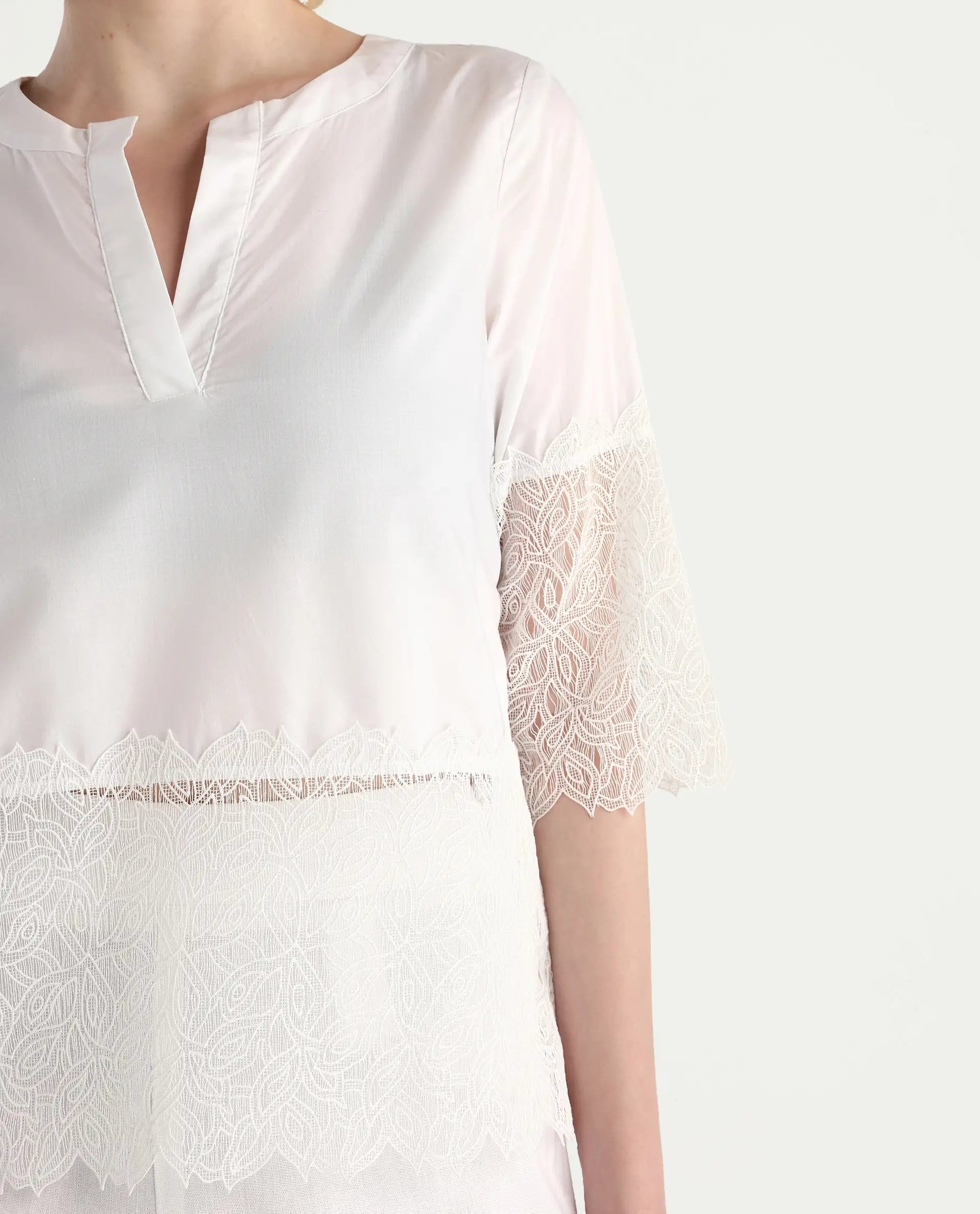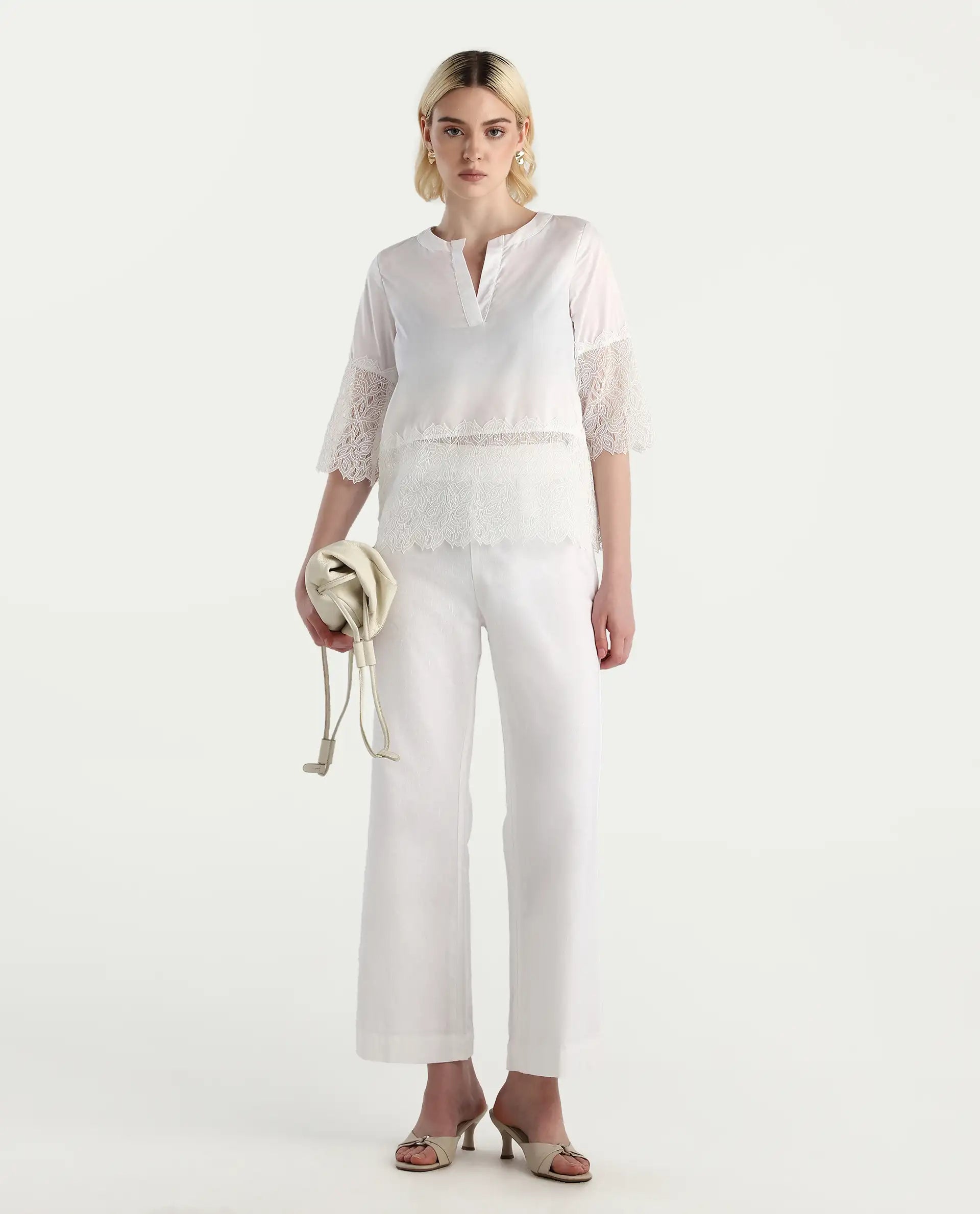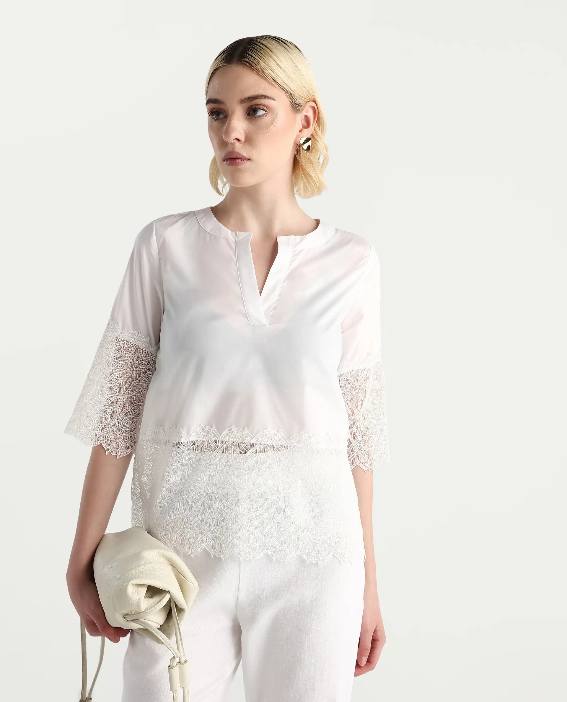 This solid embellished top from Rareism is a must-have addition to any wardrobe. With its short sleeves and white color, it's perfect for any occasion. The intricate details add a touch of elegance, making you stand out in style. Complete your look with this versatile top and feel confident all day long.