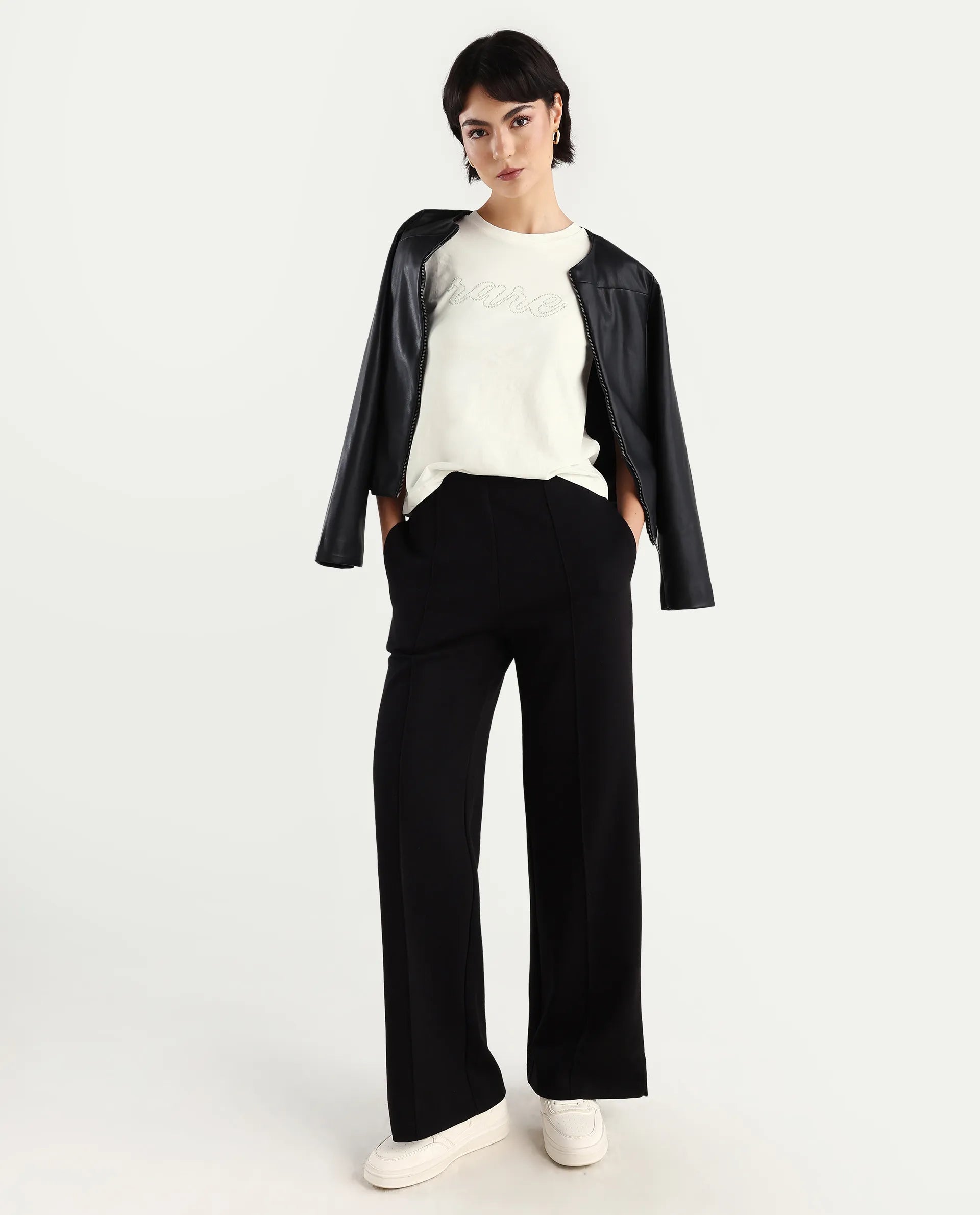 This womens t-shirt from RAREISM carries a contemporary and minimal charm. Its neat styling keeps the outfit looking fresh and composed. A reliable pick for someone who prefers a soft, modern aesthetic.