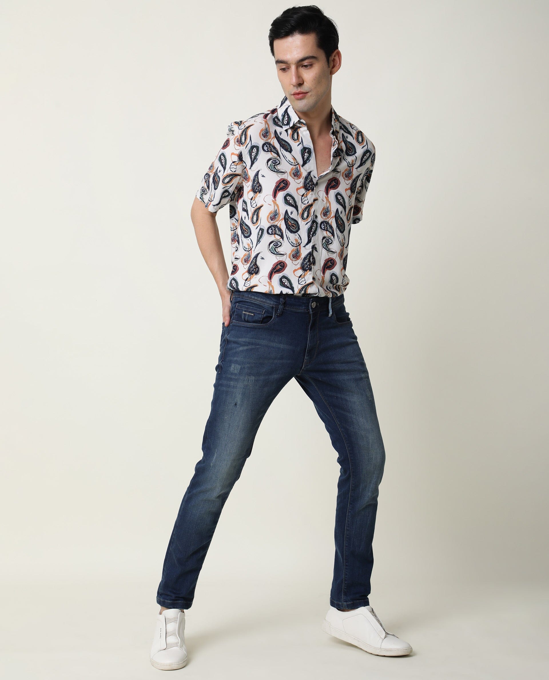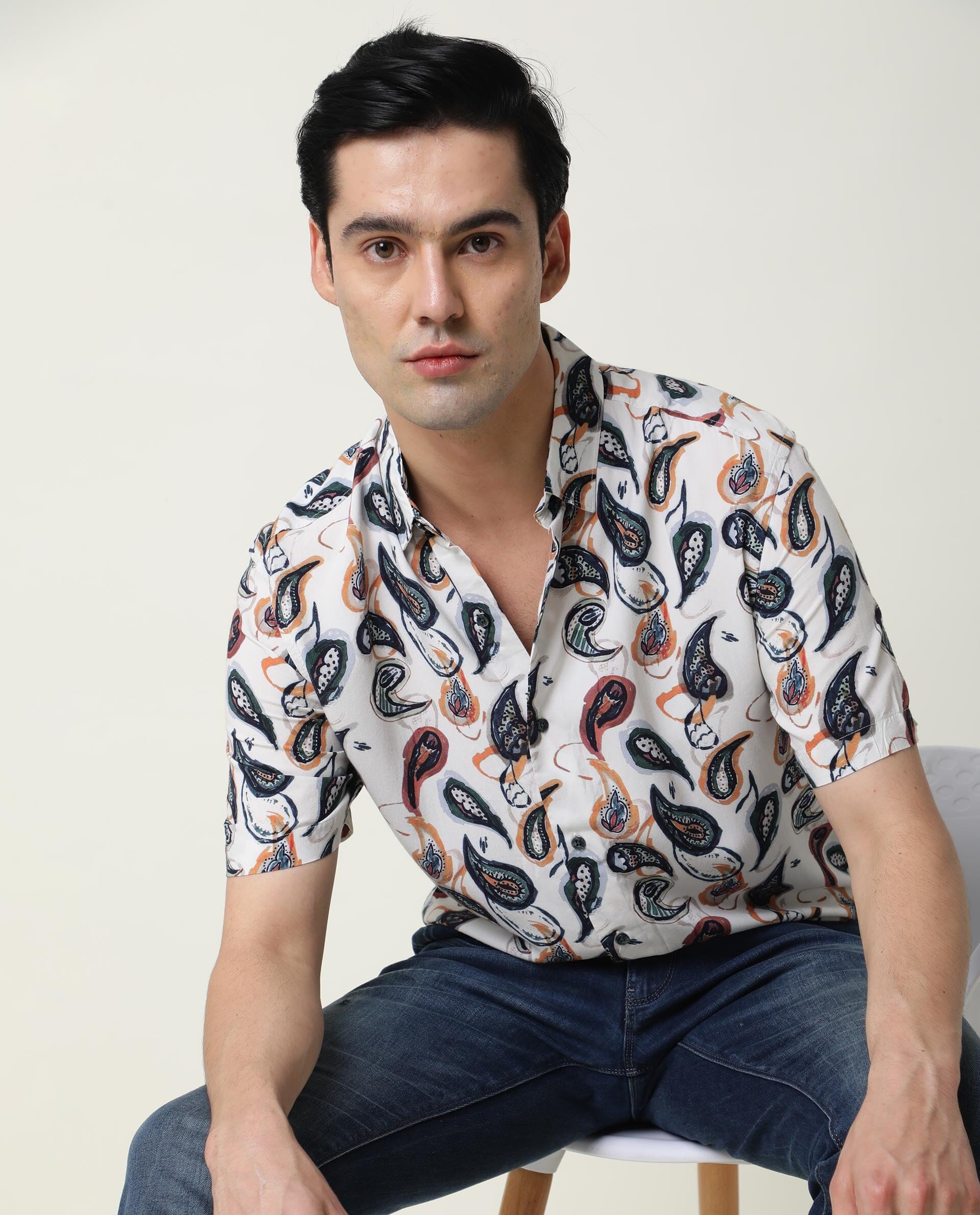 This mens shirt from RARE RABBIT carries a contemporary and minimal charm. Its neat styling keeps the outfit looking fresh and composed. A reliable pick for someone who prefers a soft, modern aesthetic.