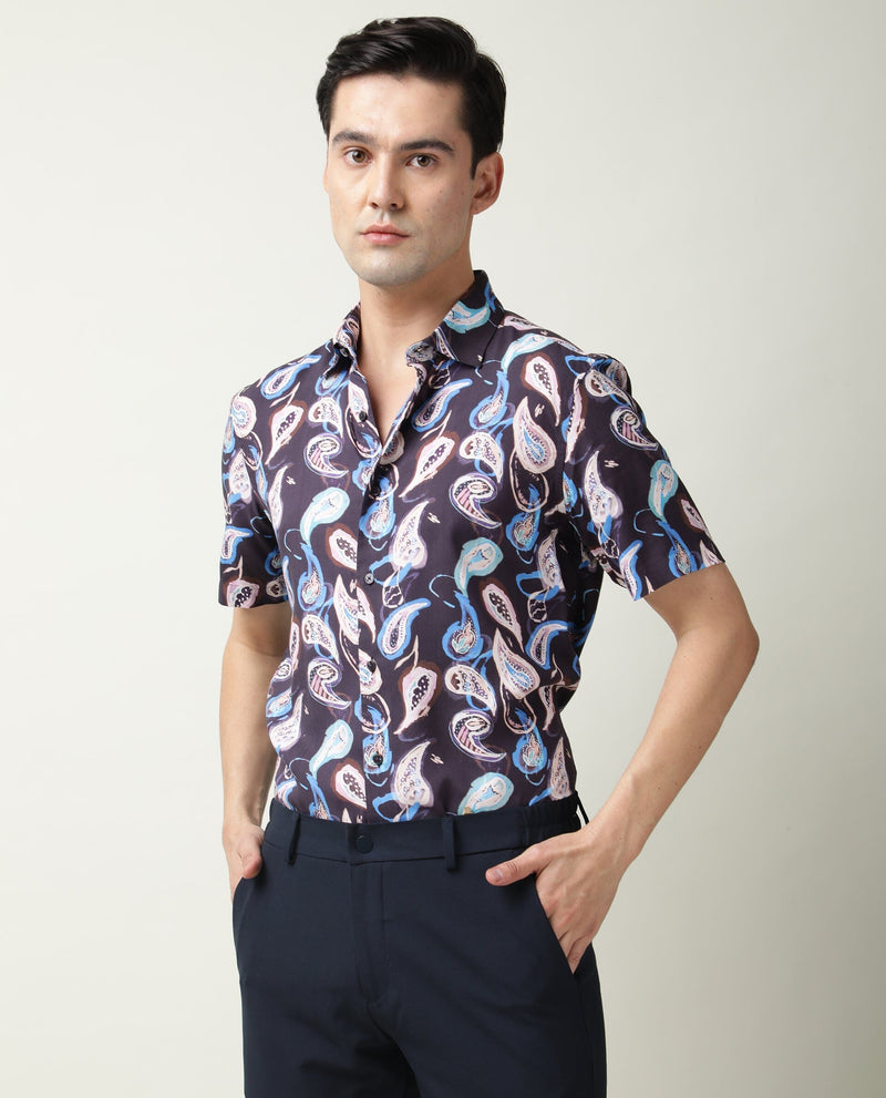 This mens shirt from RARE RABBIT carries a contemporary and minimal charm. Its neat styling keeps the outfit looking fresh and composed. A reliable pick for someone who prefers a soft, modern aesthetic.