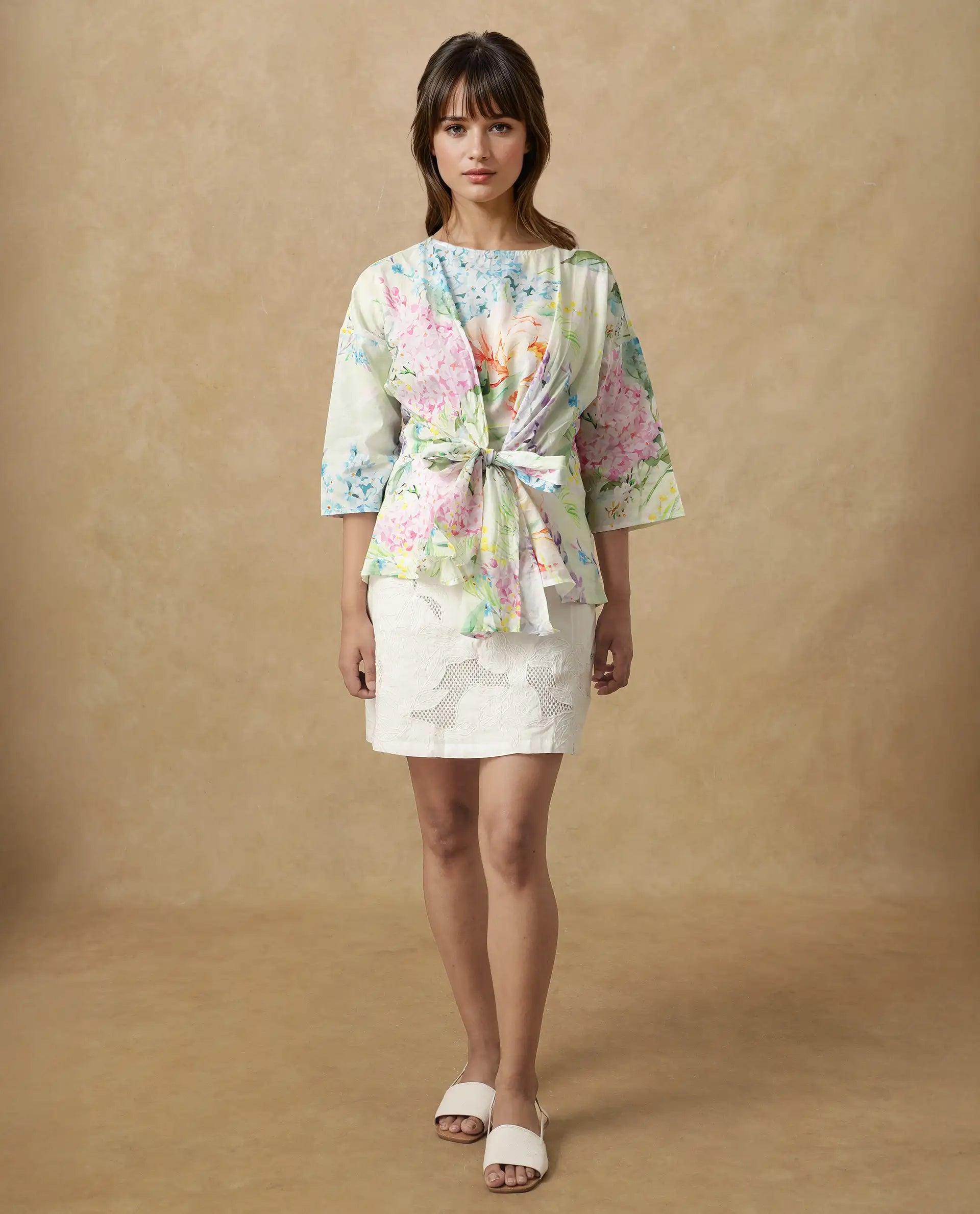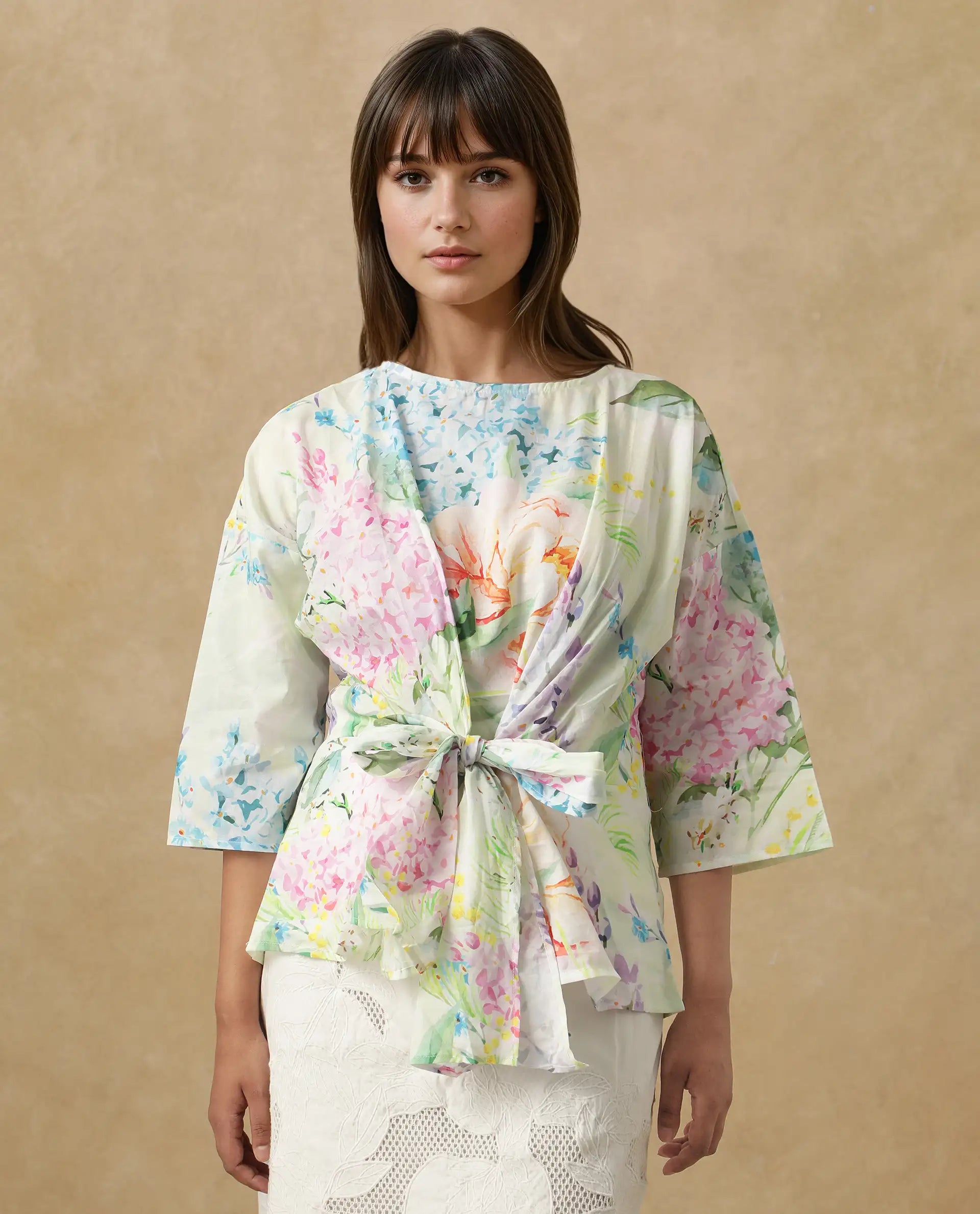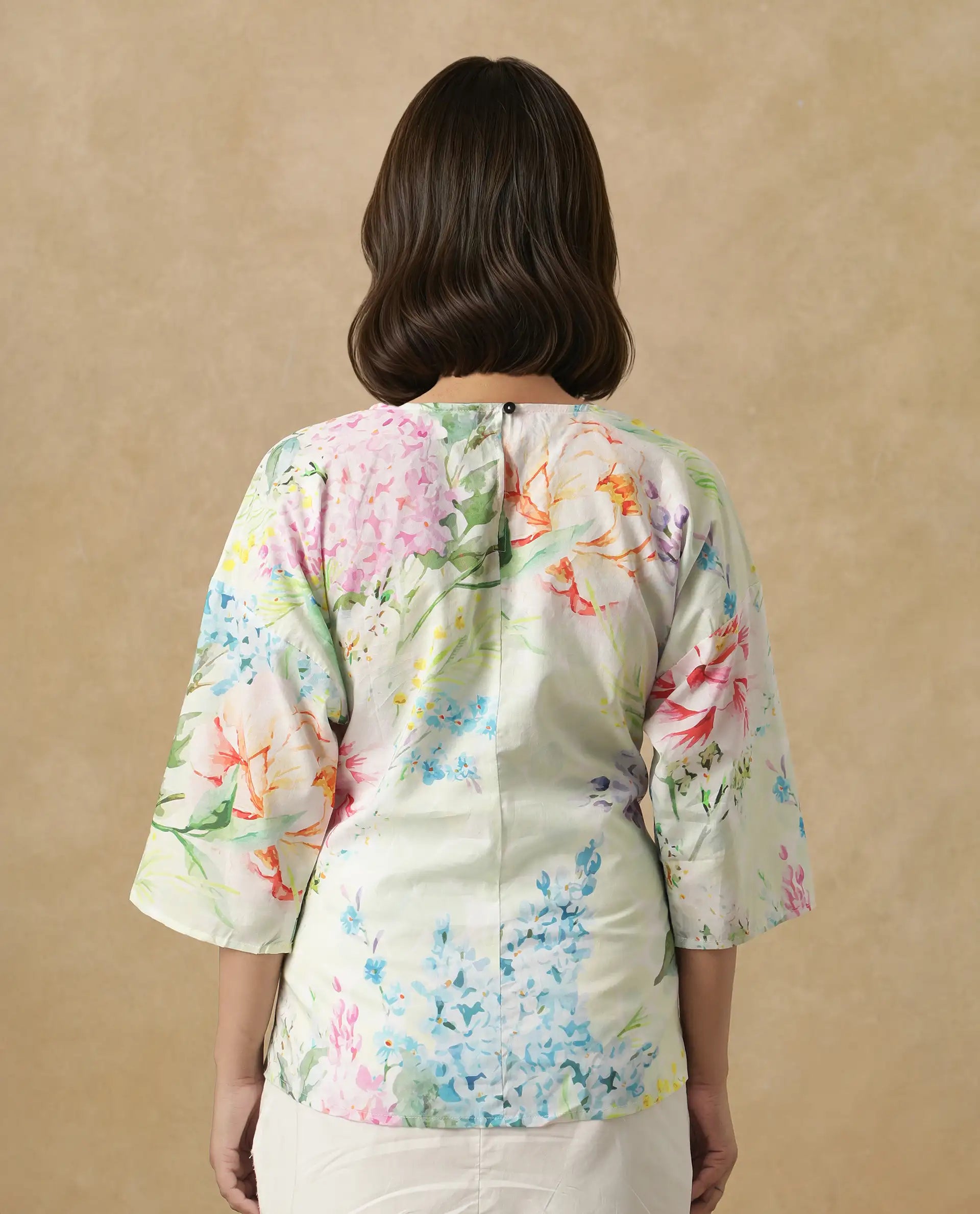 FLORAL PRINT EXTENDED SLEEVES TOP