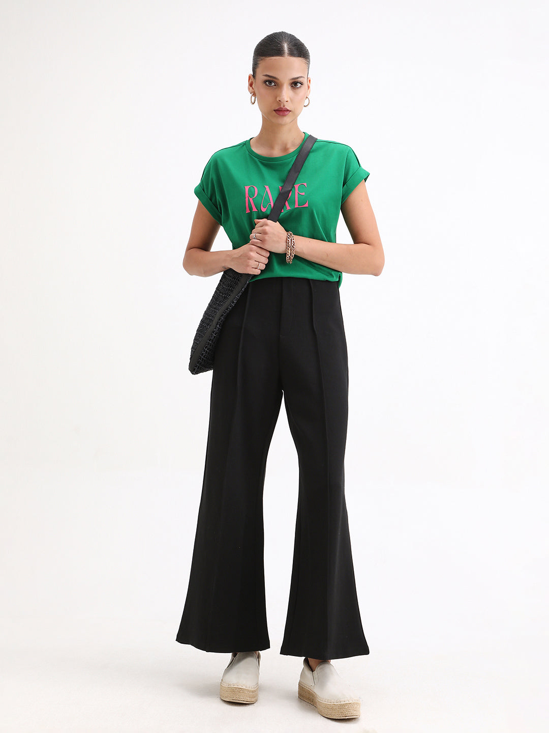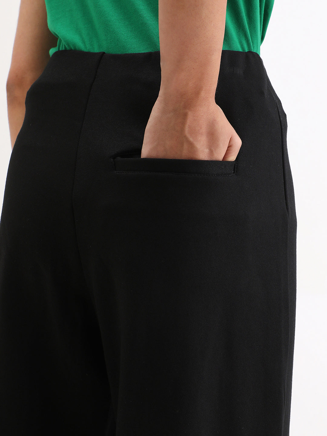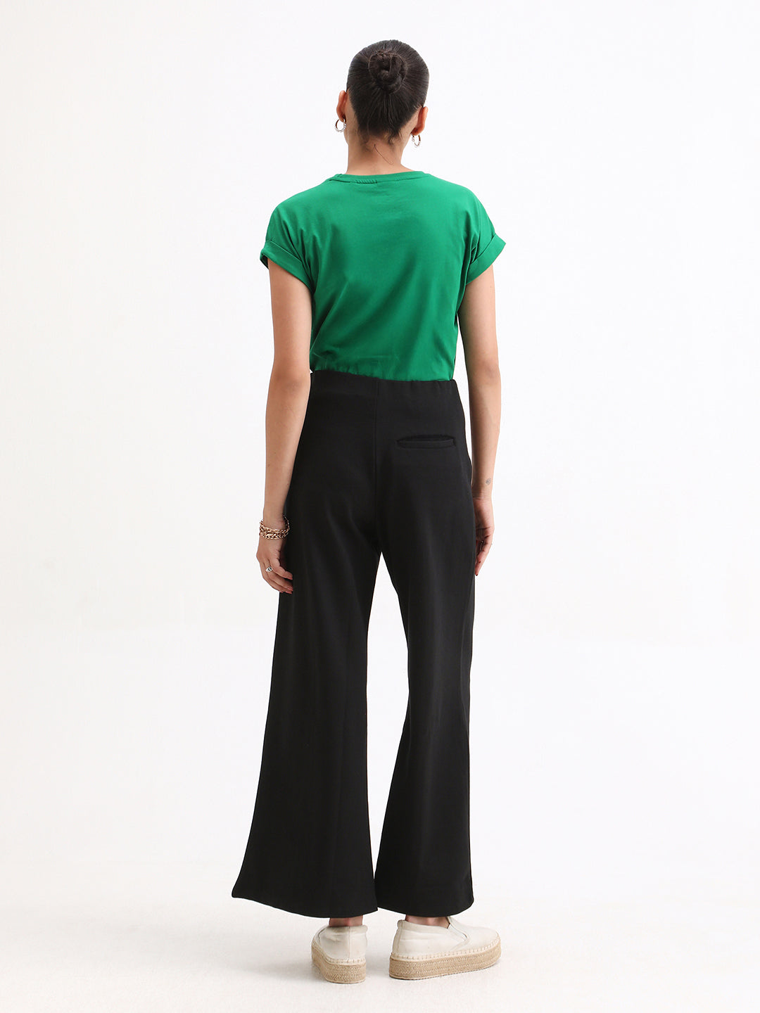 Elevate your wardrobe with these chic black bootcut trousers, perfect for any casual outing. Crafted from a premium 67%Rayon 29%Nylon 4%Spandex fabric, these women's slip-on trousers offer a comfortable and stylish fit. The solid bootcut design and ankle-length cut provide a modern twist to classic knitwear, making them a versatile addition to your collection. Ideal for pairing with your favorite tops, these plain knitted trousers are a must-have for fashion-forward individuals. Experience the perfect blend of comfort and style with these casual black trousers, designed to enhance your everyday look effortlessly.