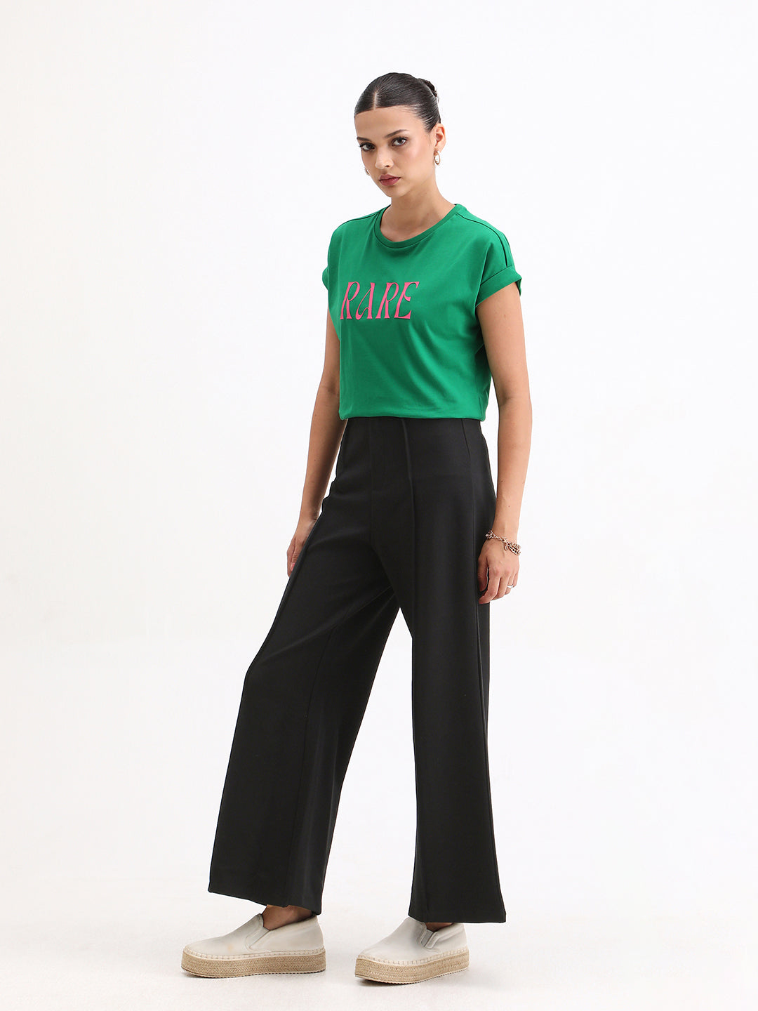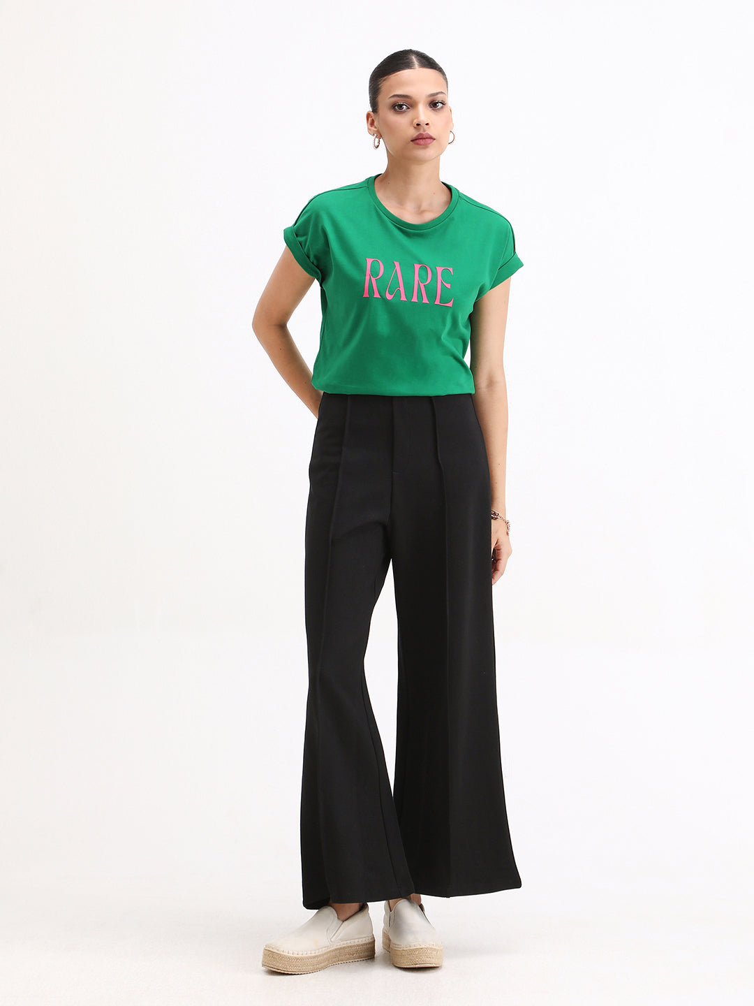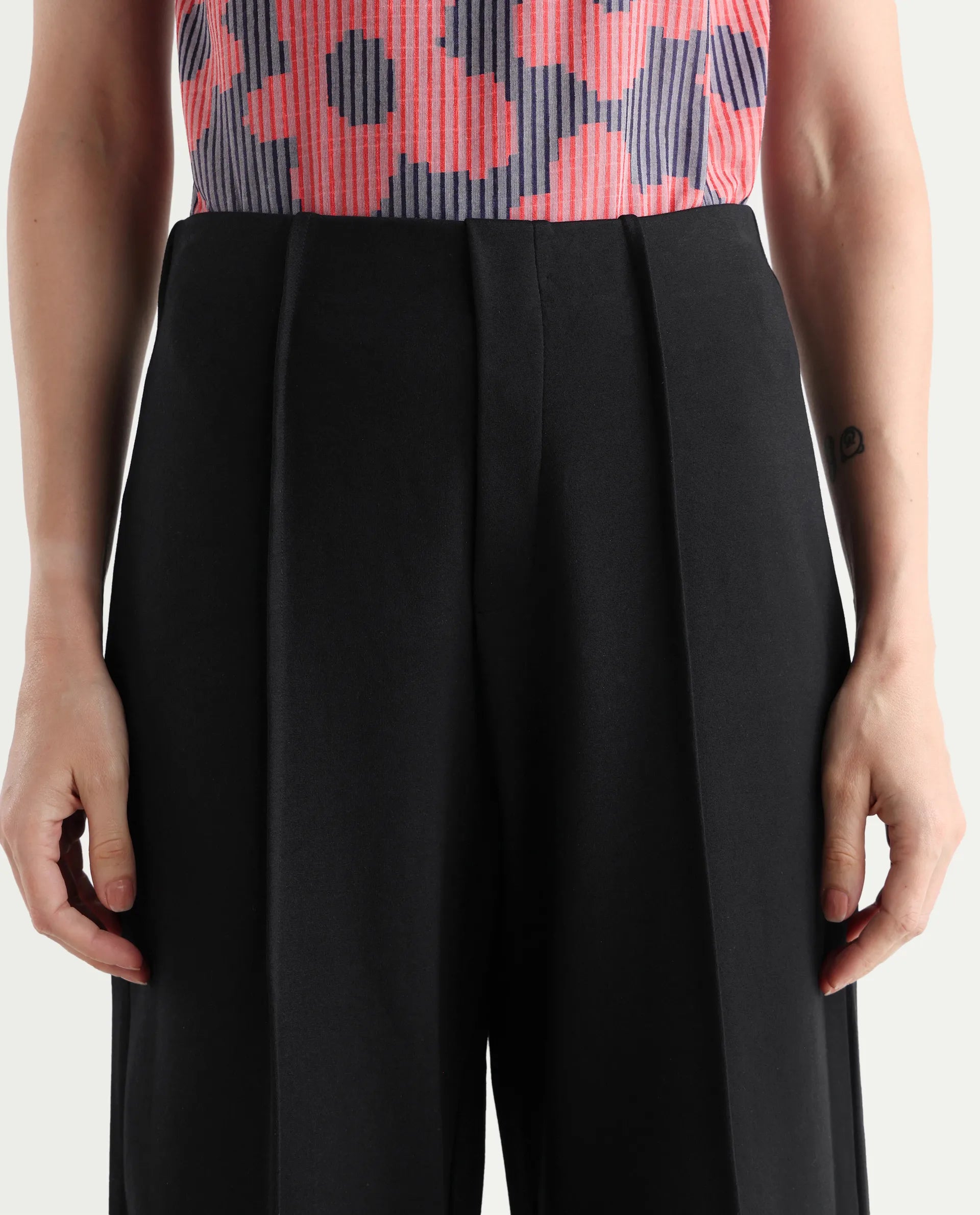 Elevate your wardrobe with these chic black bootcut trousers, perfect for any casual outing. Crafted from a premium 67%Rayon 29%Nylon 4%Spandex fabric, these women's slip-on trousers offer a comfortable and stylish fit. The solid bootcut design and ankle-length cut provide a modern twist to classic knitwear, making them a versatile addition to your collection. Ideal for pairing with your favorite tops, these plain knitted trousers are a must-have for fashion-forward individuals. Experience the perfect blend of comfort and style with these casual black trousers, designed to enhance your everyday look effortlessly.