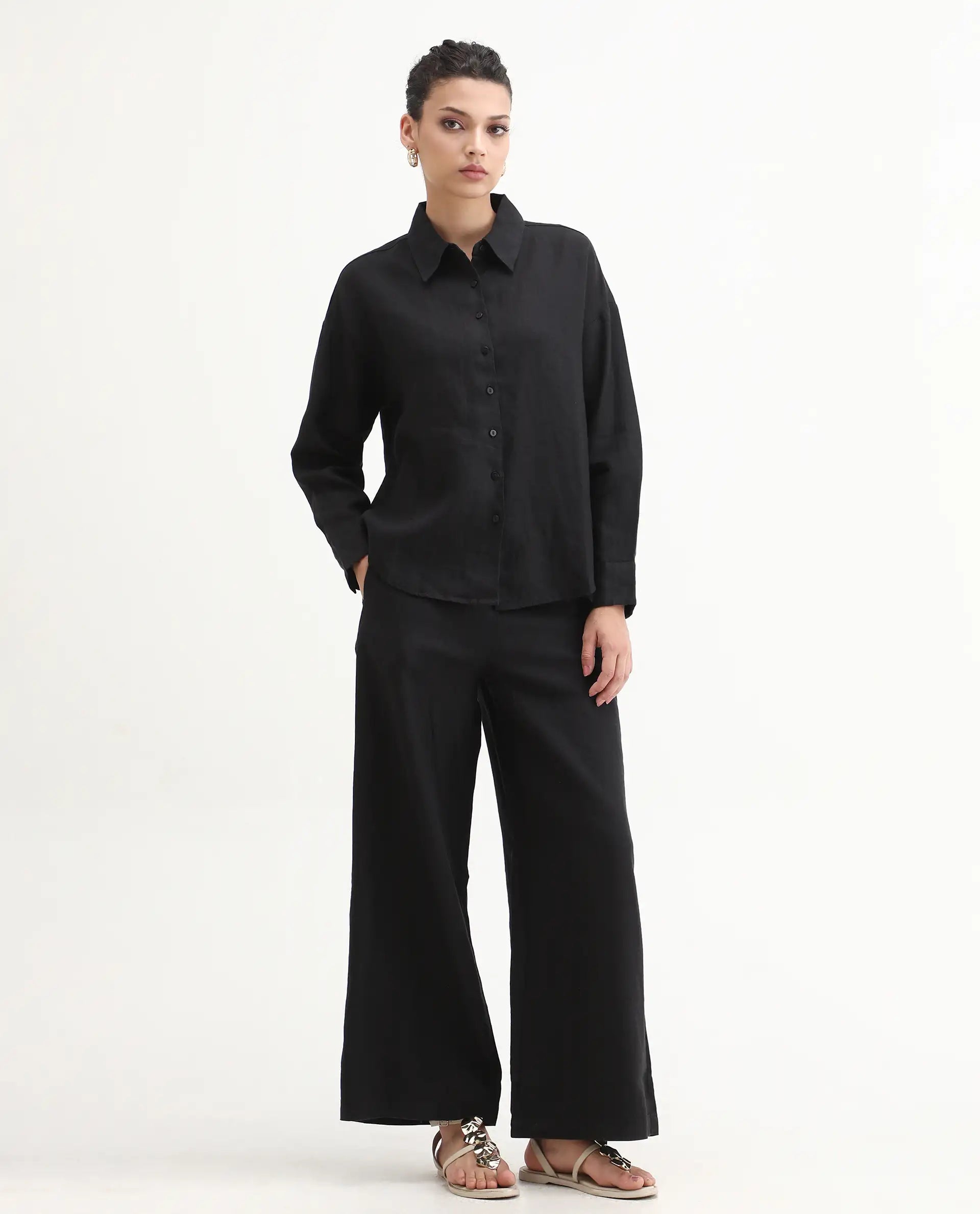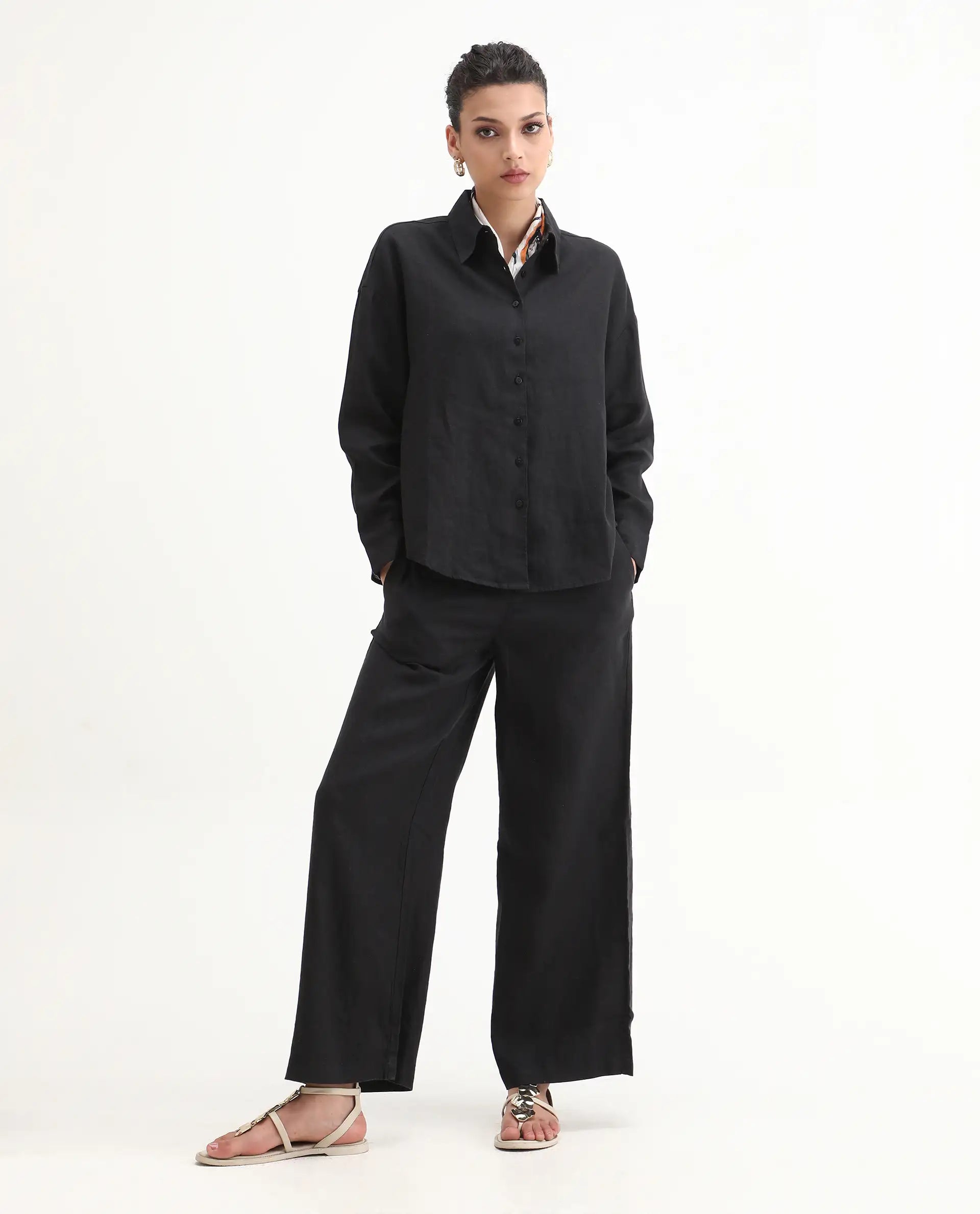 Get ready to elevate your wardrobe with our Rareism Women Janria-T Black 100% Linen Fabric Extended Sleeve Regular Fit Printed Top! Made from high-quality 100% Linen fabric, this top features extended sleeves and a regular fit for a comfortable and stylish look. The unique print adds a touch of quirkiness to any outfit.