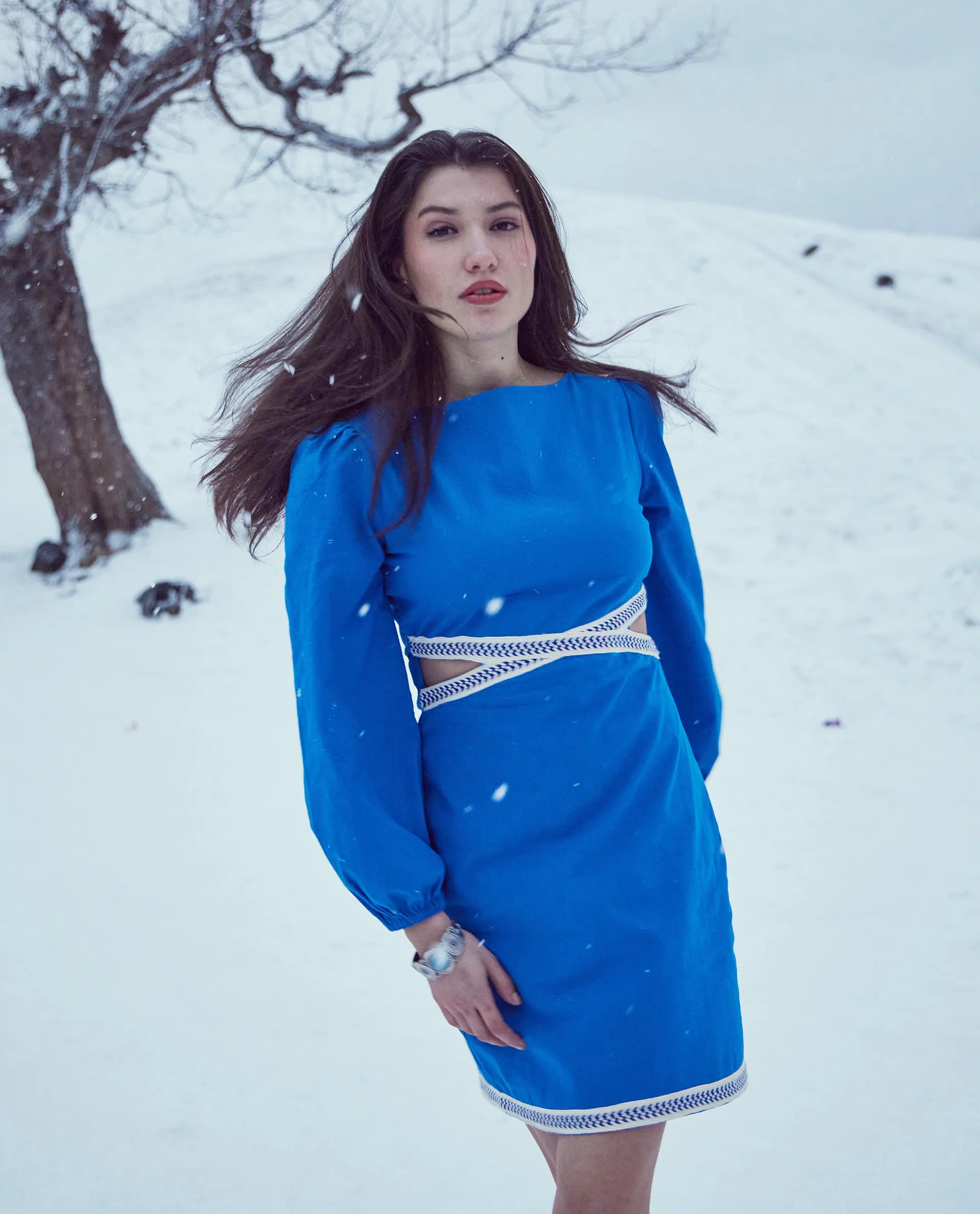 This Rareism dress is a perfect choice for trendy and comfortable style. Made from 100% cotton fabric, it features bishop sleeves, a hood, and a fitted silhouette. The mini print adds a playful touch to this versatile dress. Stay stylish and cozy in any setting with this must-have piece.
