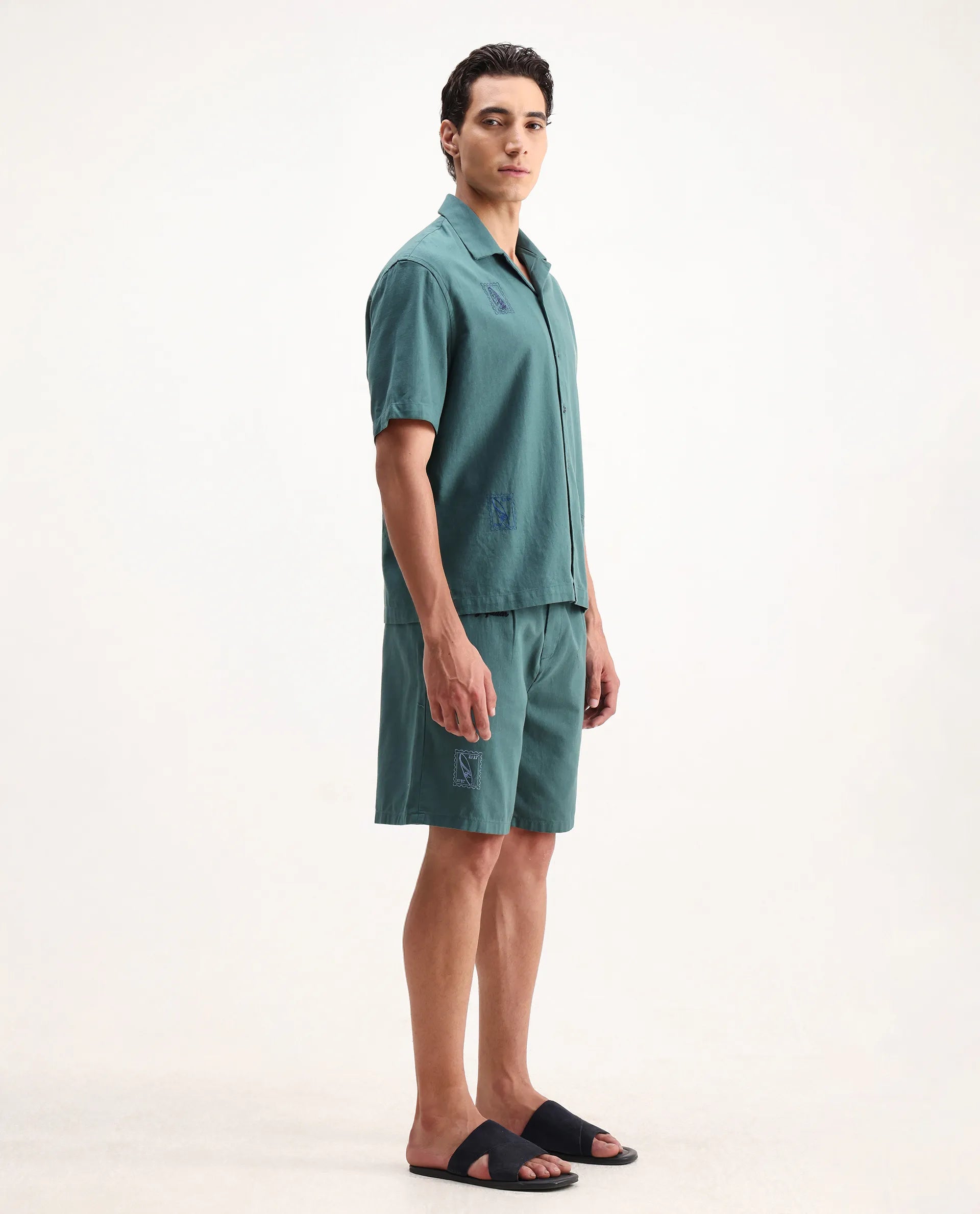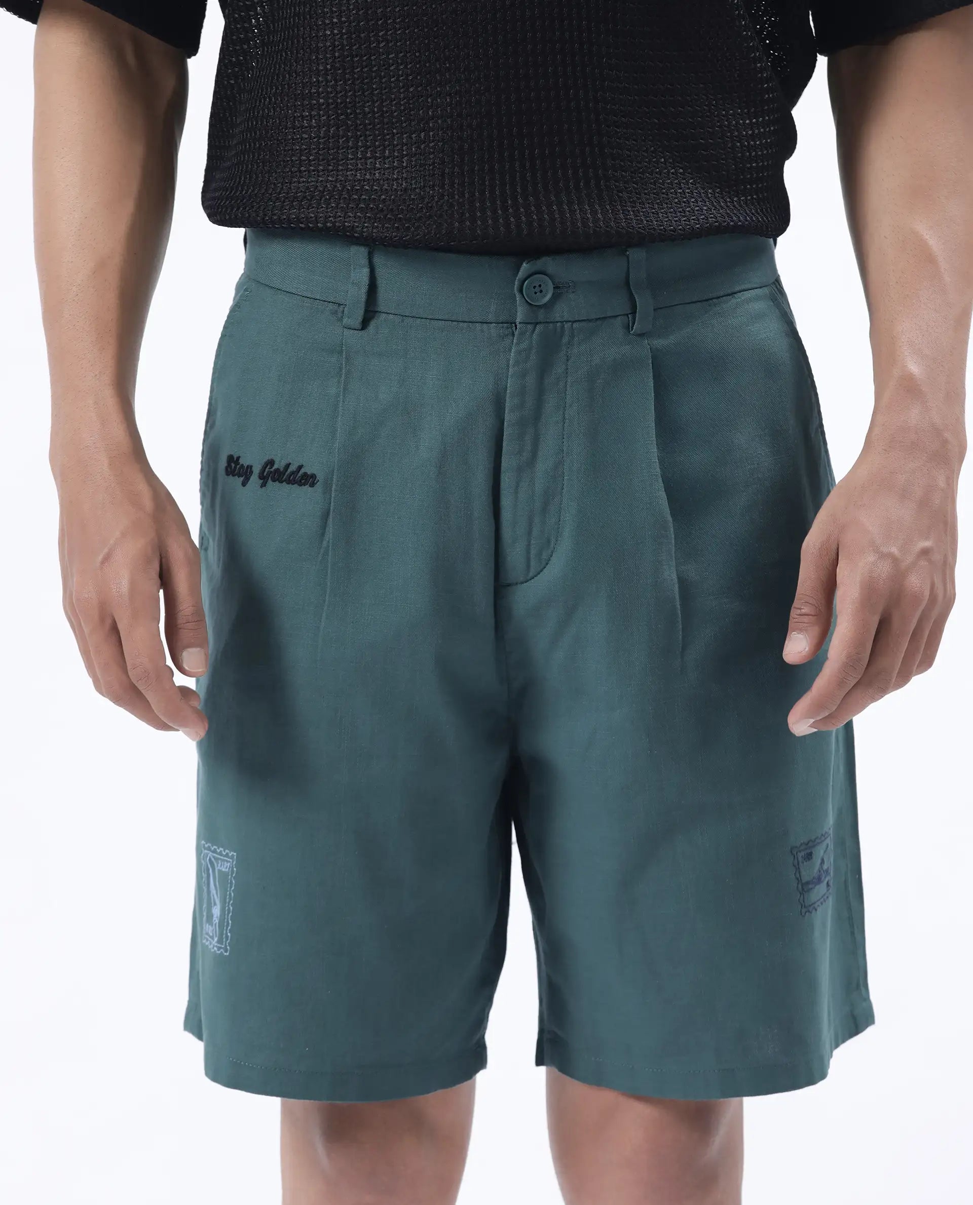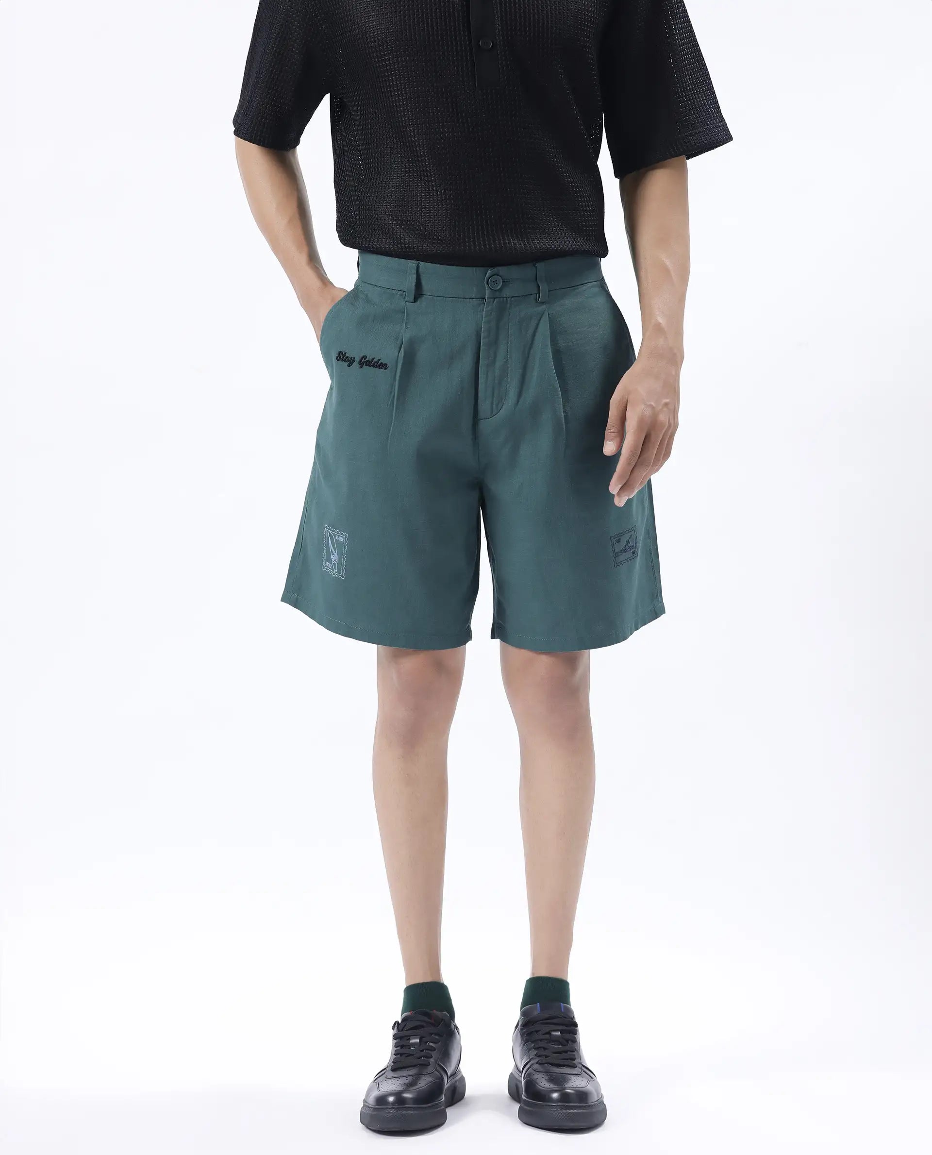REGULAR FIT EMBROIDERED SHORTS
